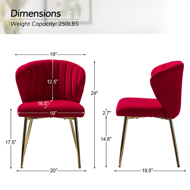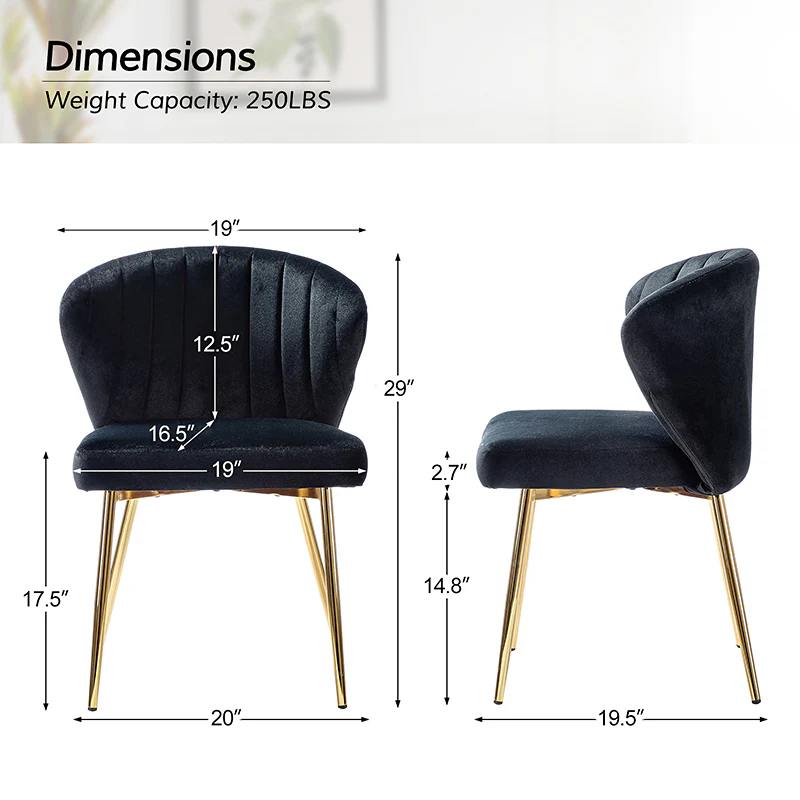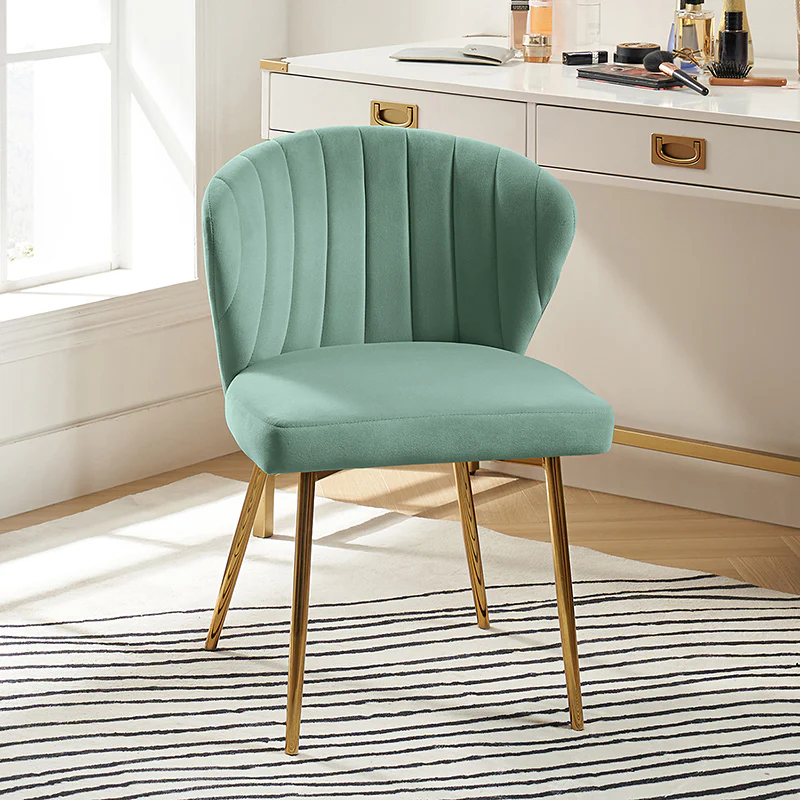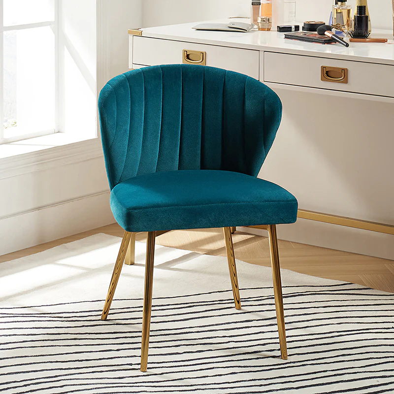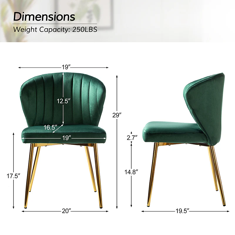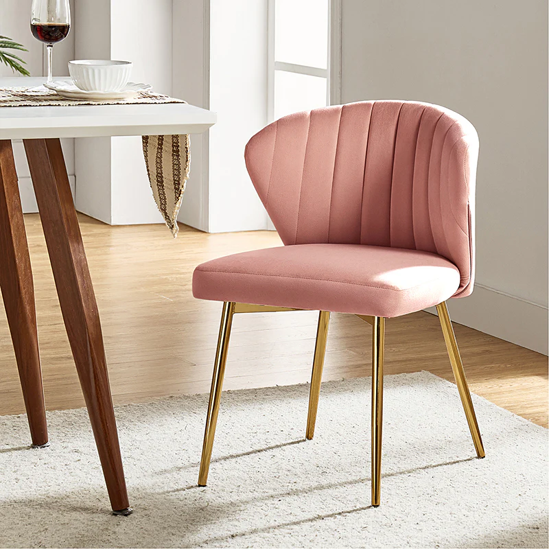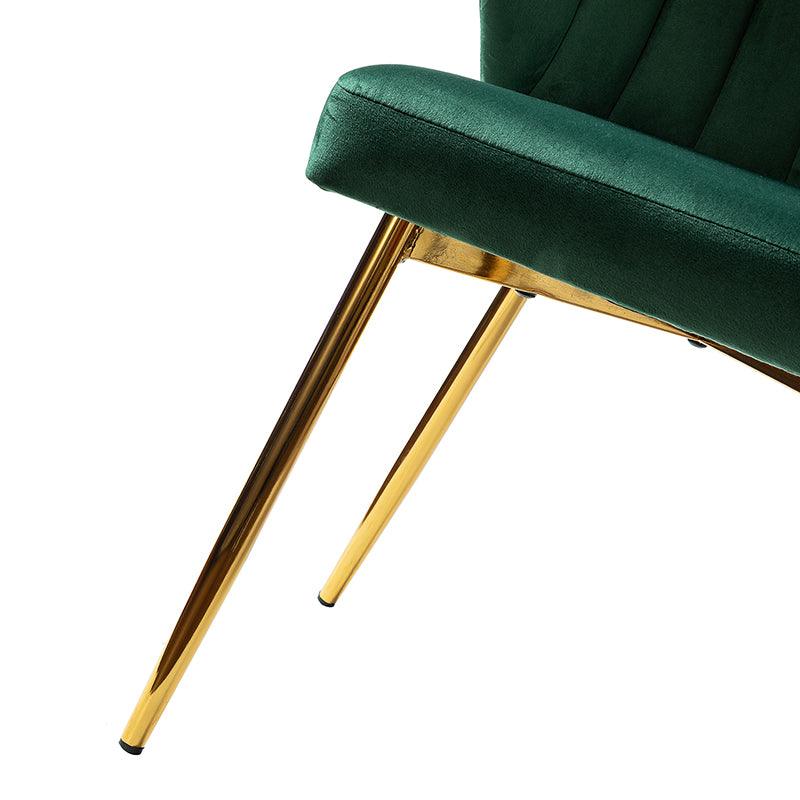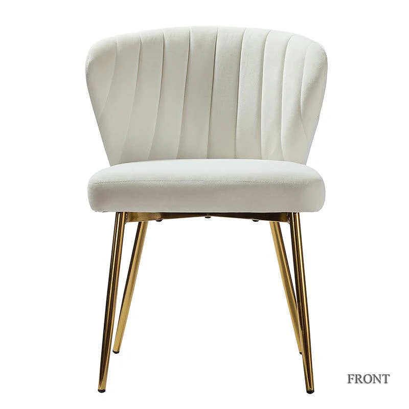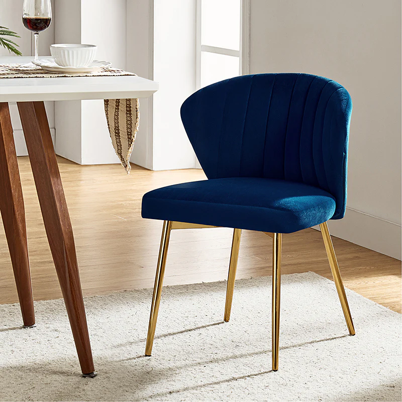 This side chair brings the perfect lines to your bedroom or living space. This stylish side chair has a channel-tufted back that wraps around a foam-filled cushion. The whole chair is upholstered in velvet which is durable and resilient to everyday use adding to the timeless and long-lasting fashion of this chair. The four metal legs with a full sense of design while not only bringing fashion and luxury to your home but also improving stability and durability. This is the best choice for your decorating a room or gifting to families and friends.
