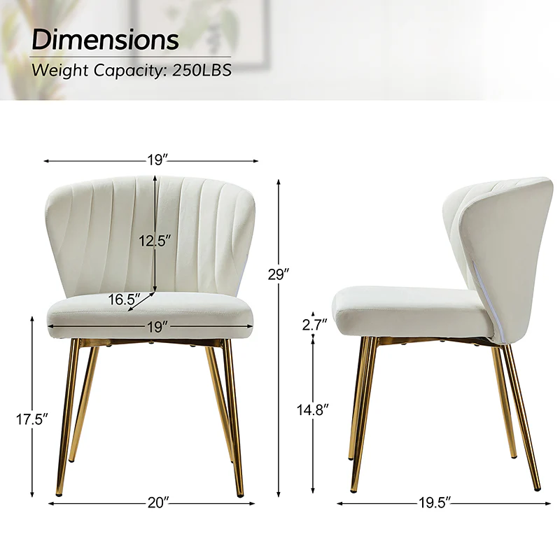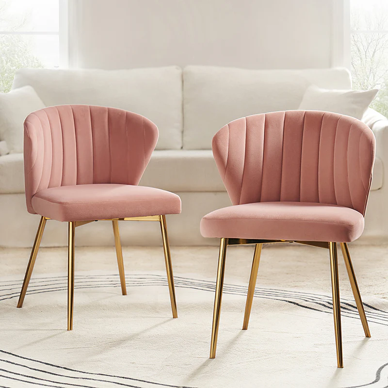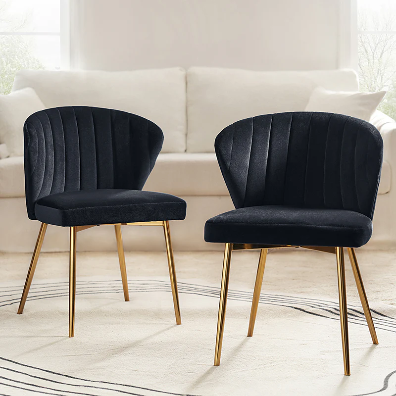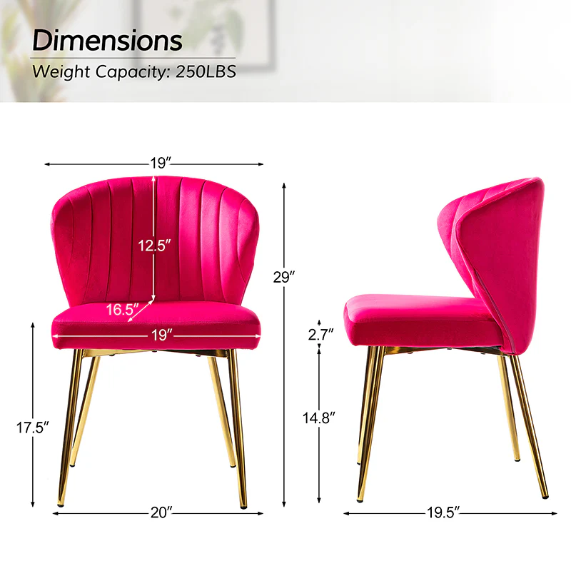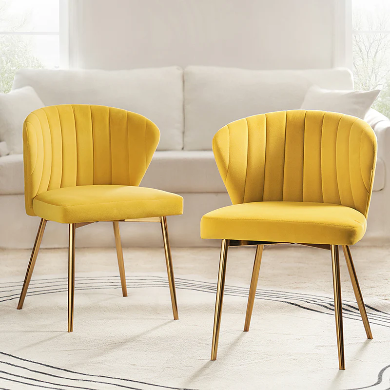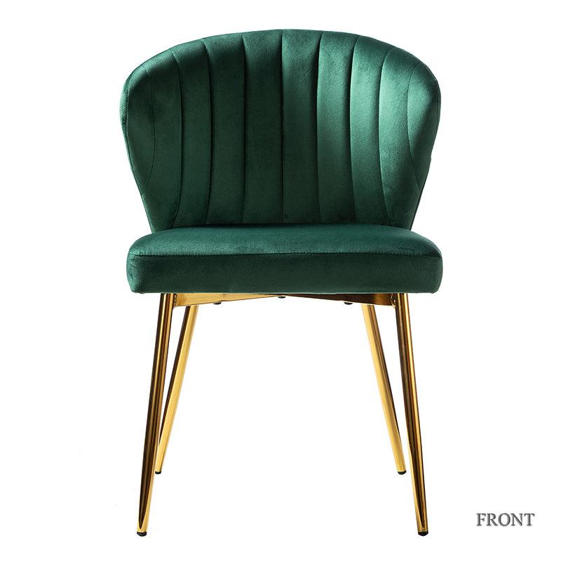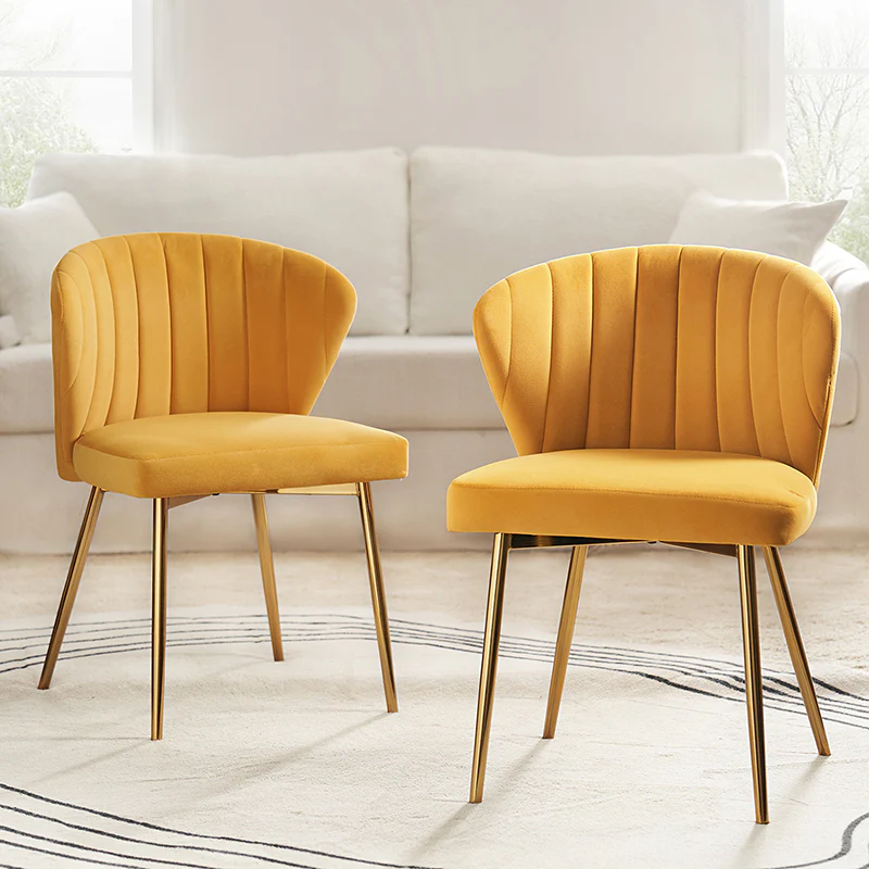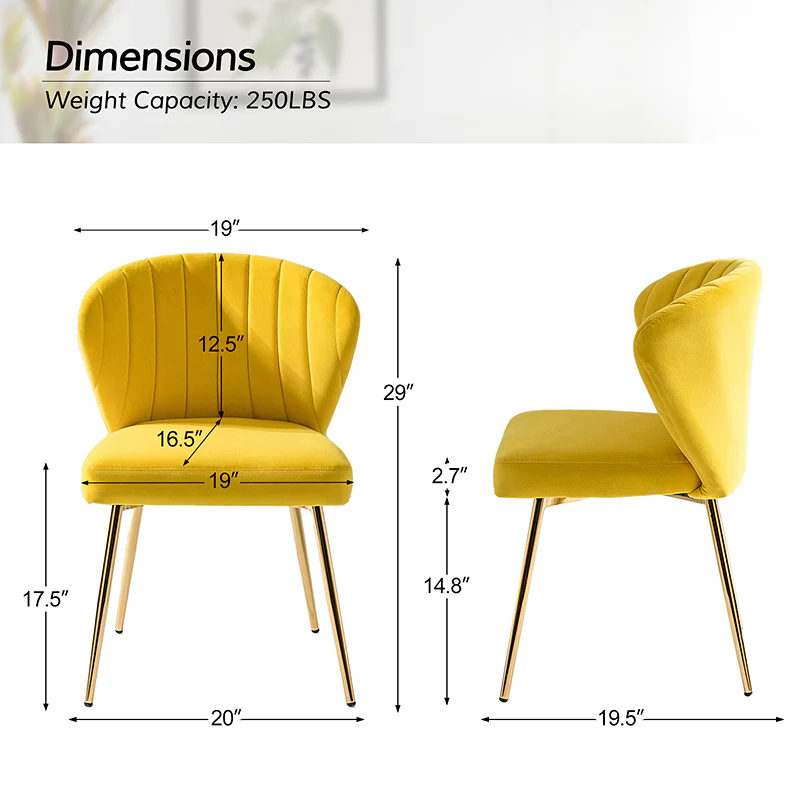 This side chair brings the perfect lines to your bedroom or living space. This stylish side chair has a channel-tufted back that wraps around a foam-filled cushion. The whole chair is upholstered in velvet which is durable and resilient to everyday use adding to the timeless and long-lasting fashion of this chair. The four metal legs with a full sense of design while not only bringing fashion and luxury to your home but also improving stability and durability. This is the best choice for your decorating a room or gifting to families and friends.