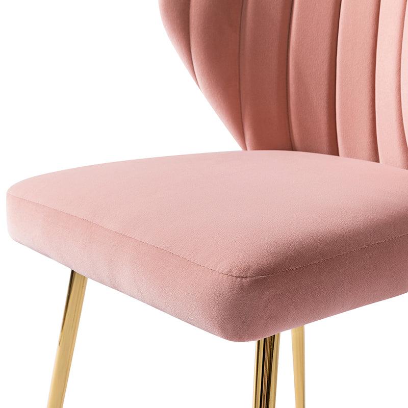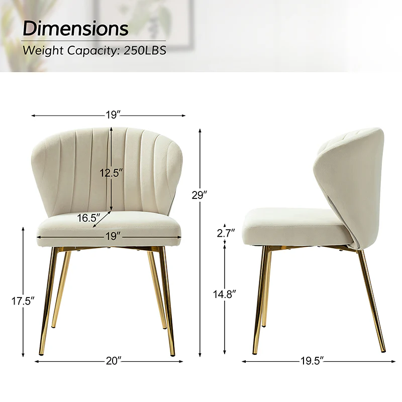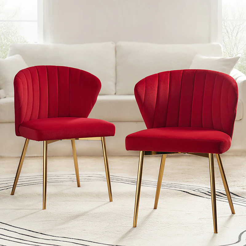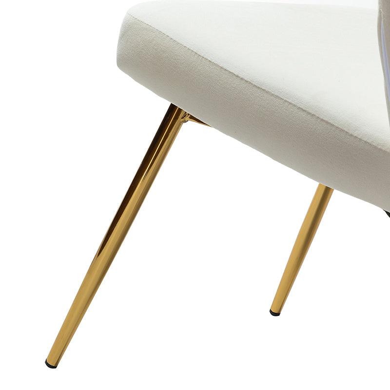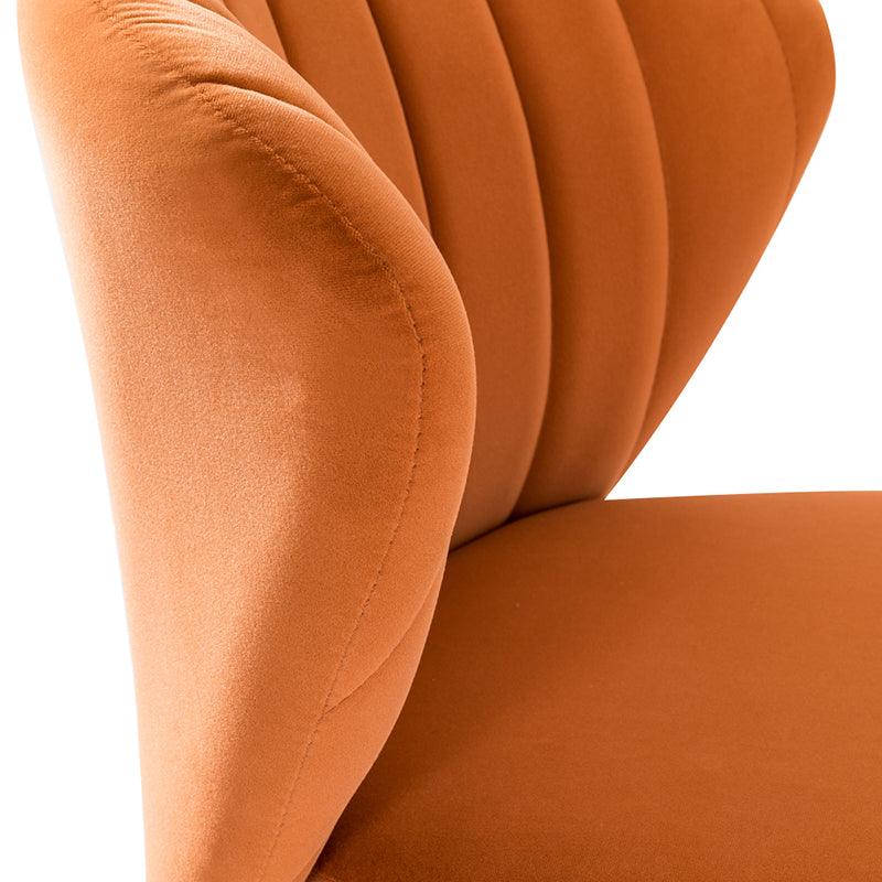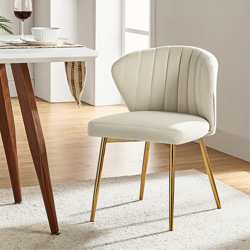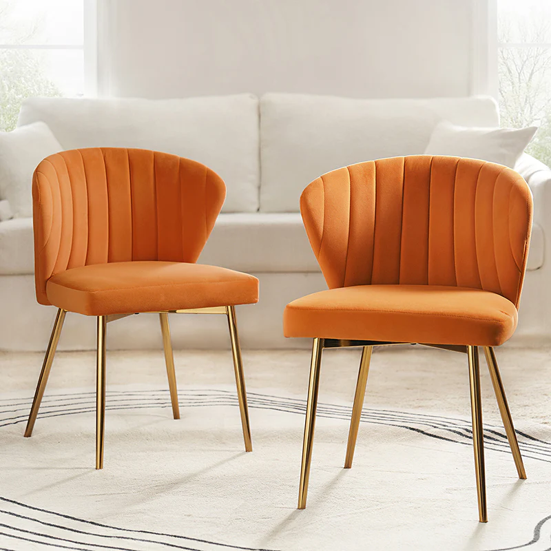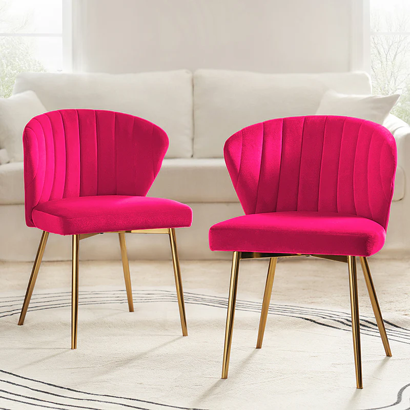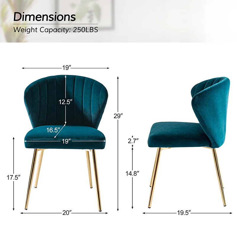 This side chair brings the perfect lines to your bedroom or living space. This stylish side chair has a channel-tufted back that wraps around a foam-filled cushion. The whole chair is upholstered in velvet which is durable and resilient to everyday use adding to the timeless and long-lasting fashion of this chair. The four metal legs with a full sense of design while not only bringing fashion and luxury to your home but also improving stability and durability. This is the best choice for your decorating a room or gifting to families and friends.