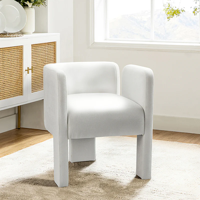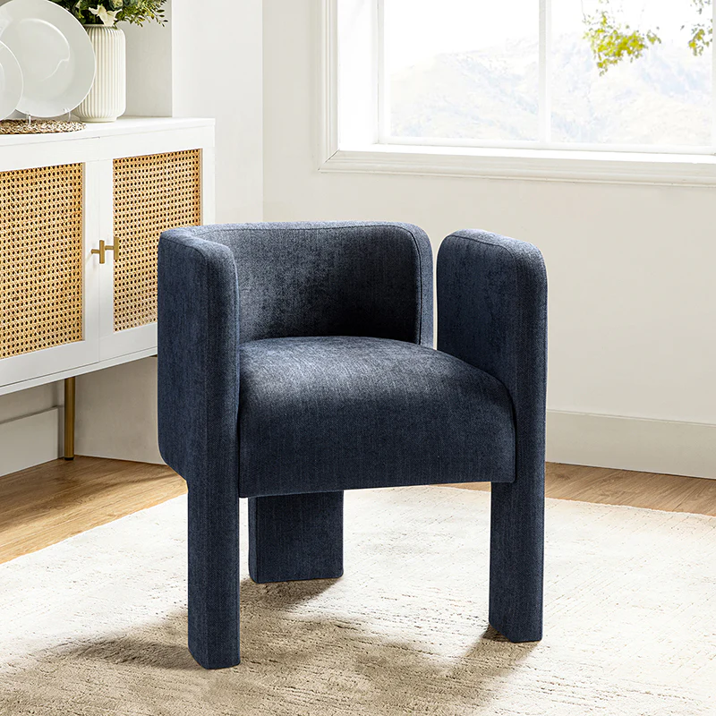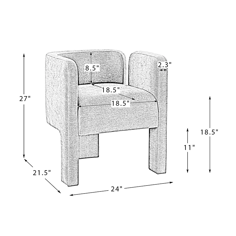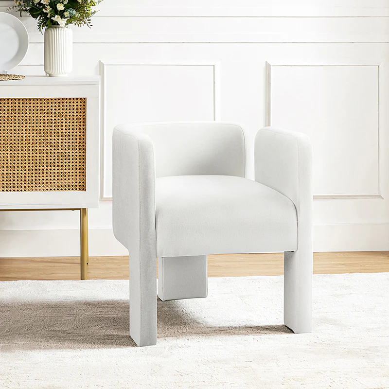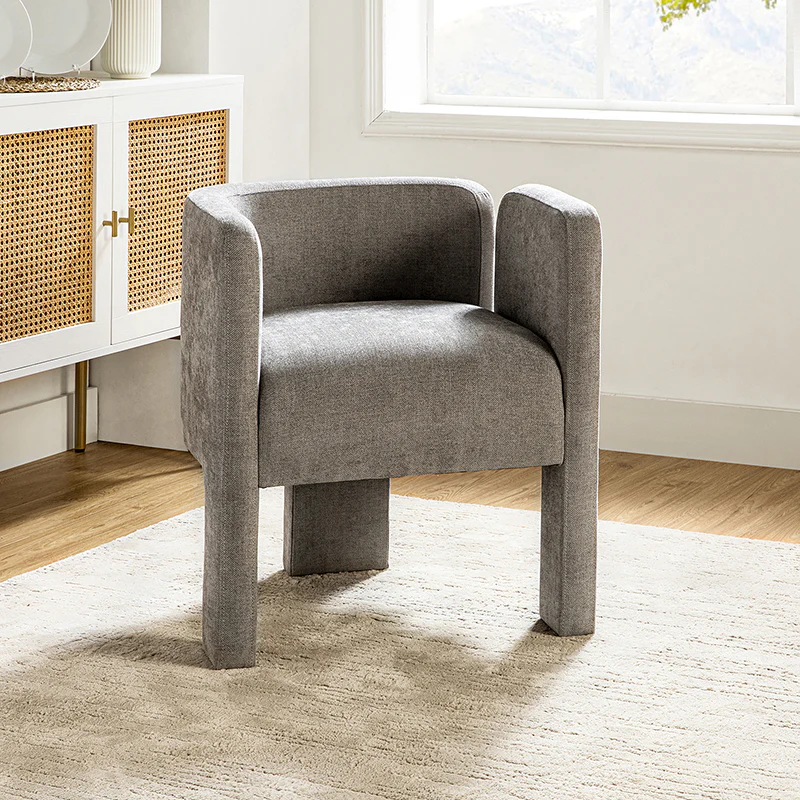The contemporary dining chair boasts a unique appearance that adds a distinct element to its overall aesthetic. The backrest displays an eye-catching segmented pattern, exuding a modern and artistic ambiance. With its sleek design, this modern dining chair brings a touch of sophistication to any dining space. The ample cushioning in the seat and backrest ensures exceptional comfort for you and your guests, while the three-legged structure emanates a sleek and elegant aesthetic, ensuring stability and balance. Crafted with high-quality fabric, this dining chair is durable and built to withstand daily use. Whether utilized as a dining chair or a decorative accent piece, it effortlessly complements various interior decor styles, making it ideal for multi-scenario use.