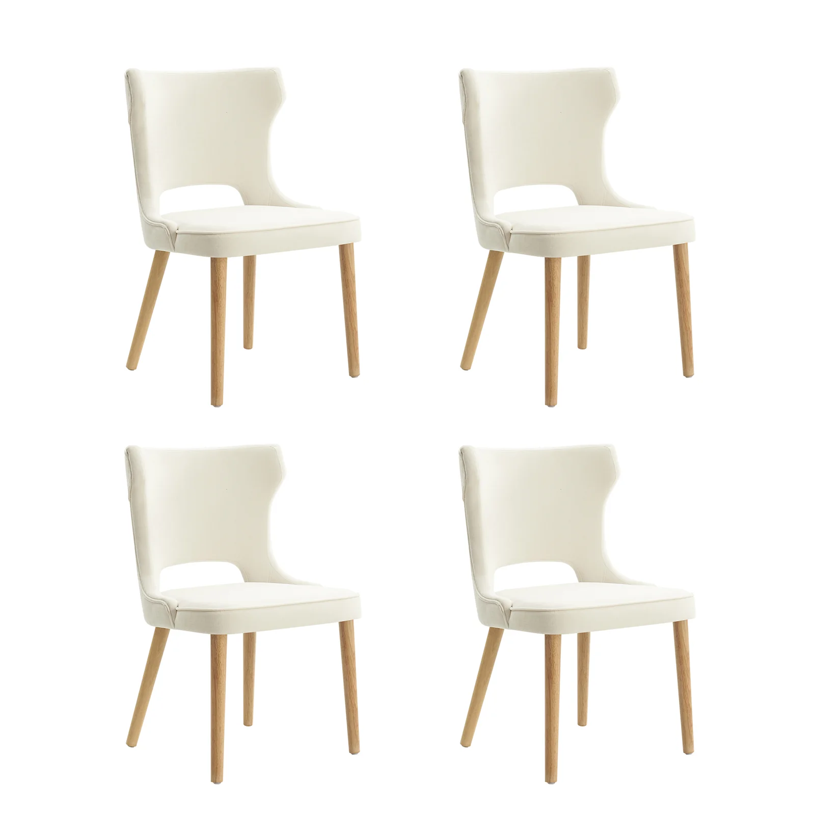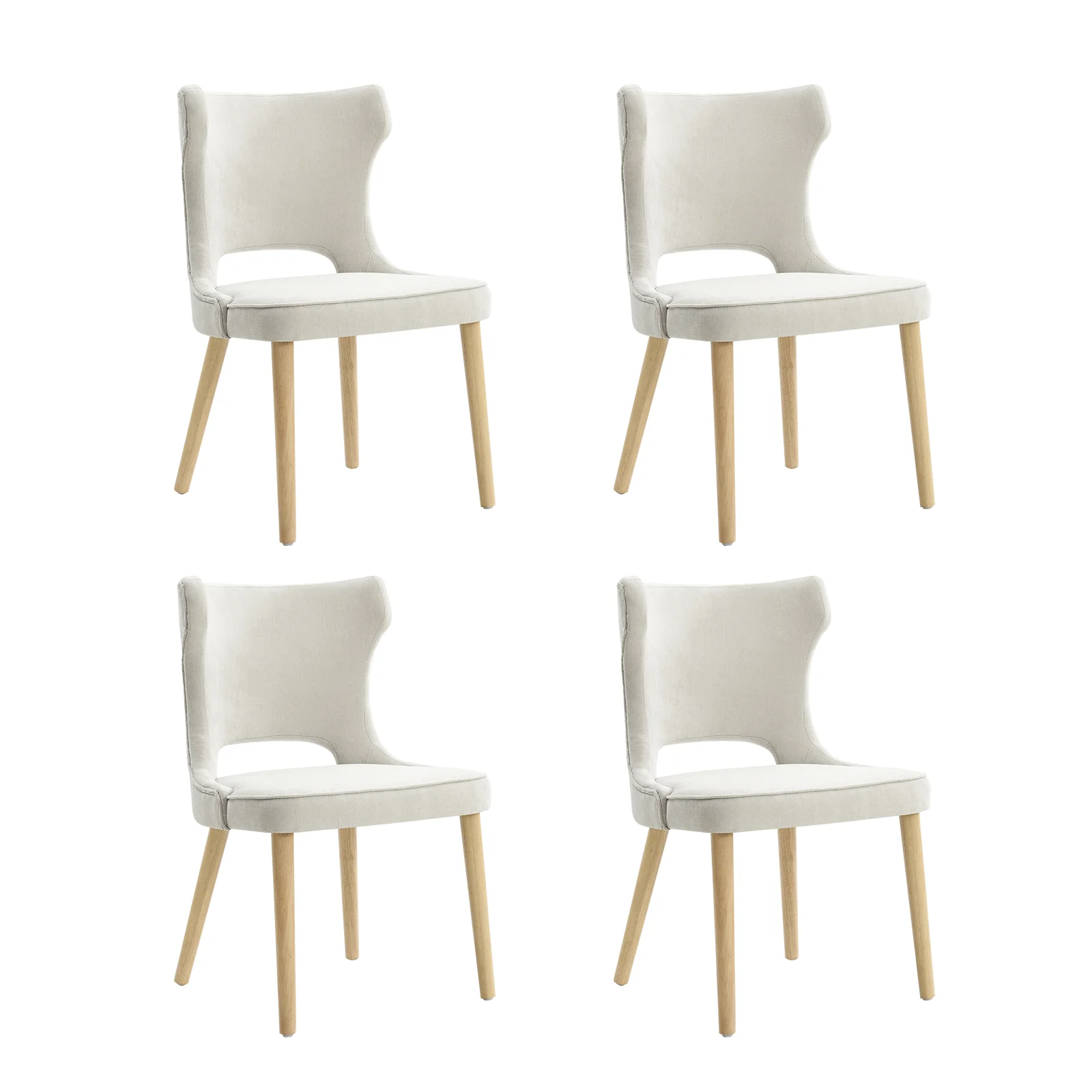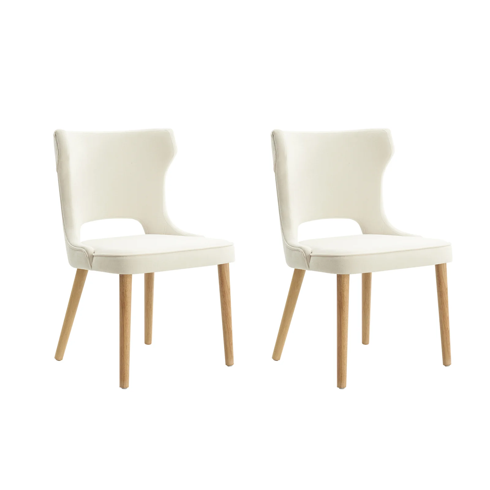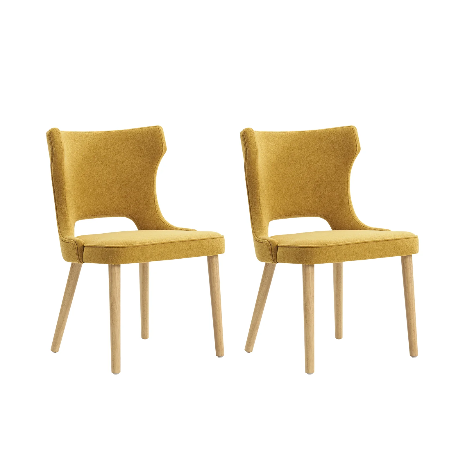 This dining chair set of 2/set of 4 embodies a mid-century modern style with a unique wingback design. Its distinctive hollow design features add an elegant touch, while the solid wood legs ensure stability and durability. The seat is upholstered in anti-water fabric, making it practical for everyday use and easy to maintain. Filled with density foam, the cushion provides exceptional support and comfort, ensuring a pleasant dining experience. This dining chair is easy to install with threaded legs, no tools required. This combination of aesthetic appeal and functional design makes the chair set of 2/set of 4 a stylish and practical addition to any dining space.