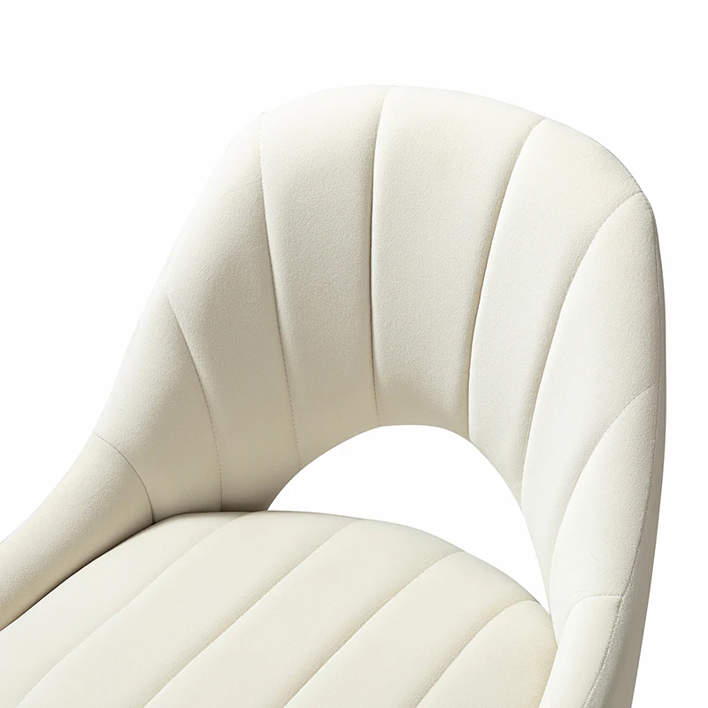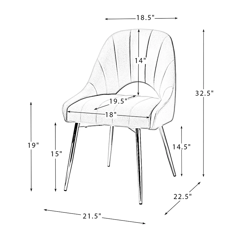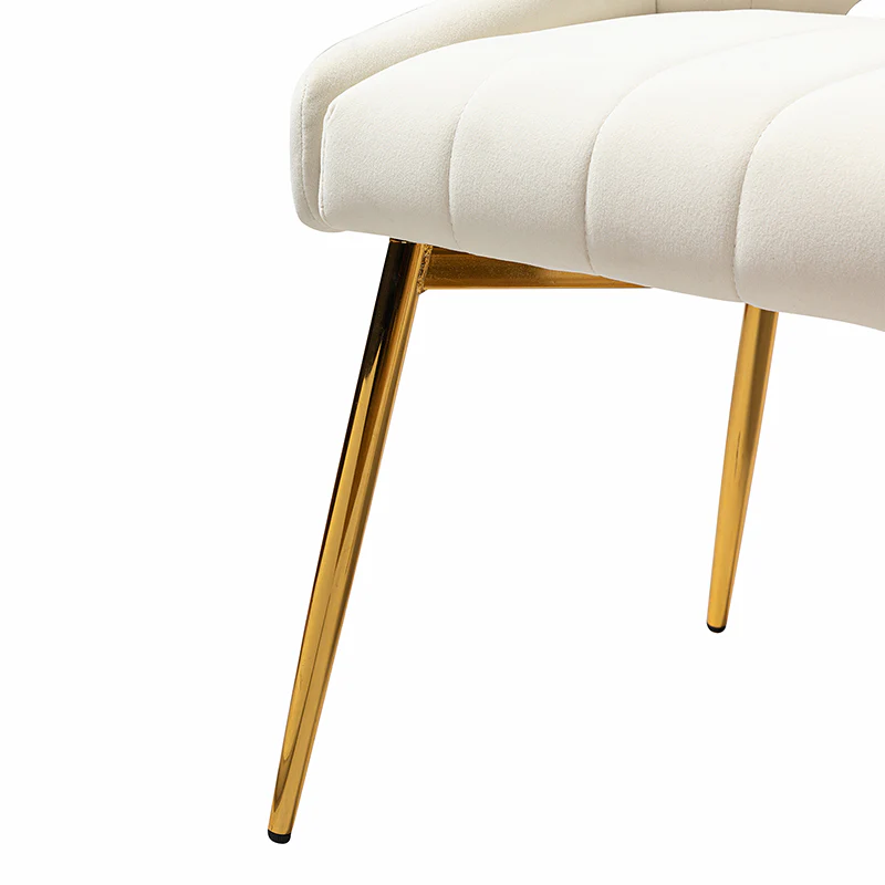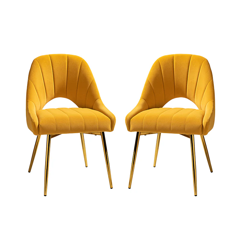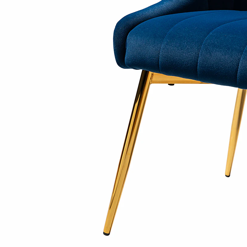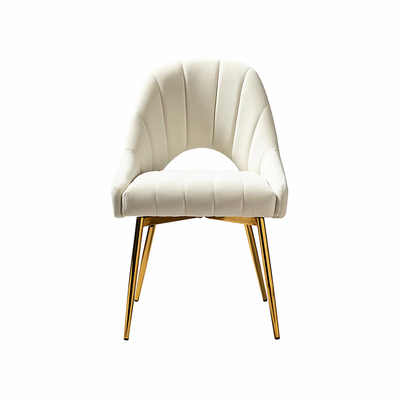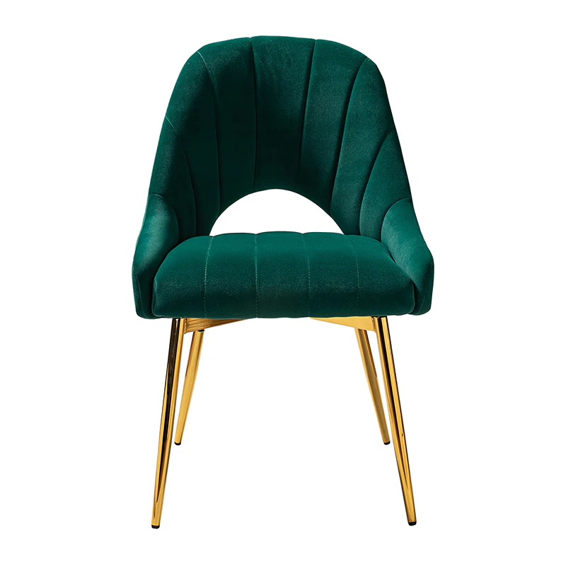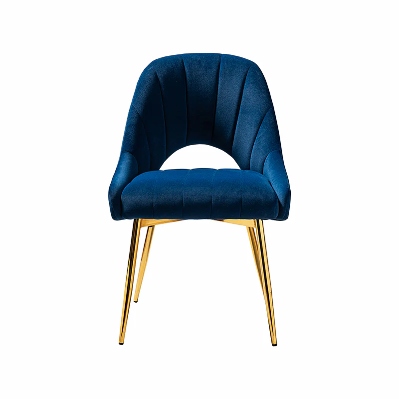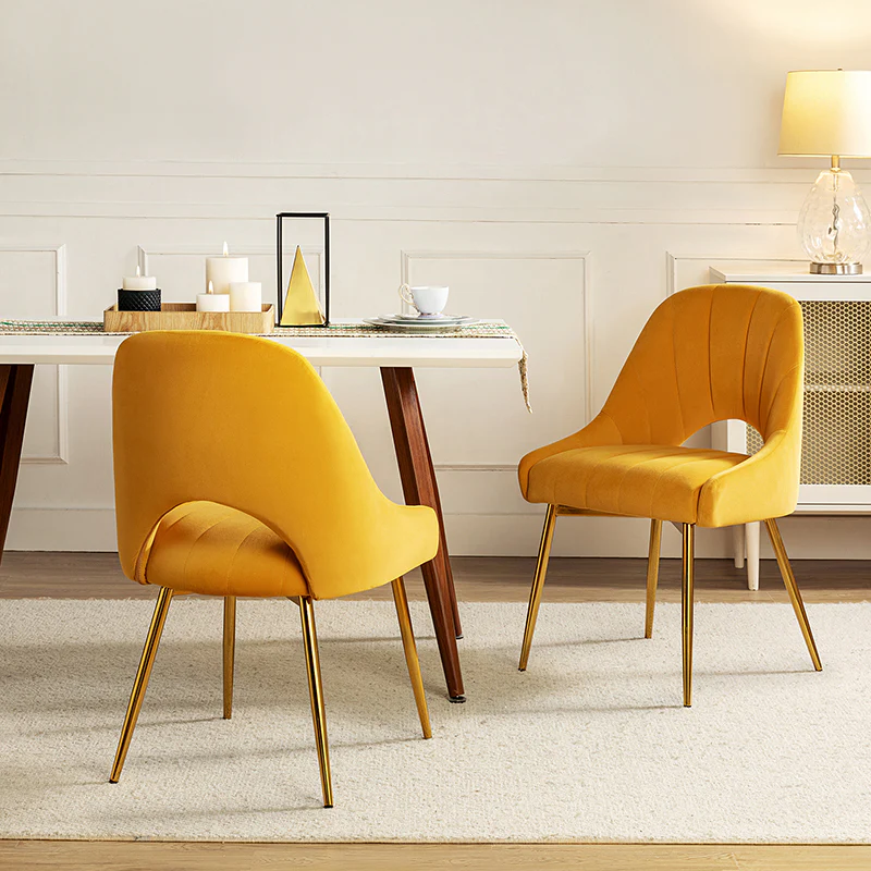 The epitome of luxury and elegance in dining chairs. The surrounding armless design of this chair set provides ample space and comfort, while the hollowed-out back promotes good posture. The chair set is upholstered in plush velvet, and the golden metal legs offer both support and a touch of glamour to the overall design. The tufted detailing on the backrest and seat adds an extra element of sophistication to the already stunning Victoria dining chair set. It has a wide range of functions and can be used as a dining chair set, leisure chair set, or makeup stool set, suitable for small spaces. Whether you're hosting a dinner party or enjoying a meal with your family, this chair set is sure to elevate your dining experience to the next level. Sit back, relax, and enjoy the comfort and style of 'Victoria' at your dining table.
