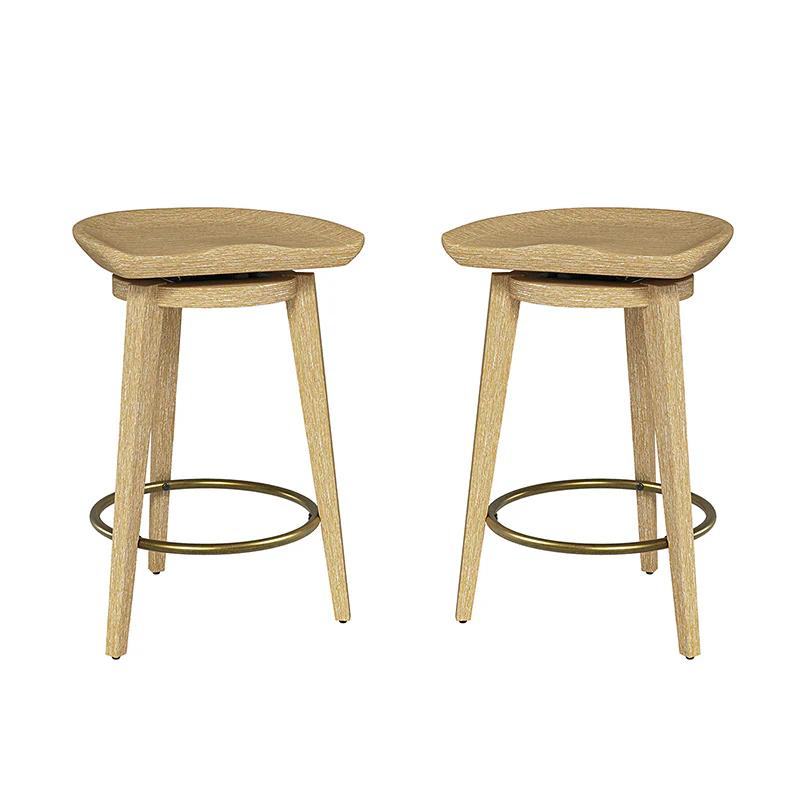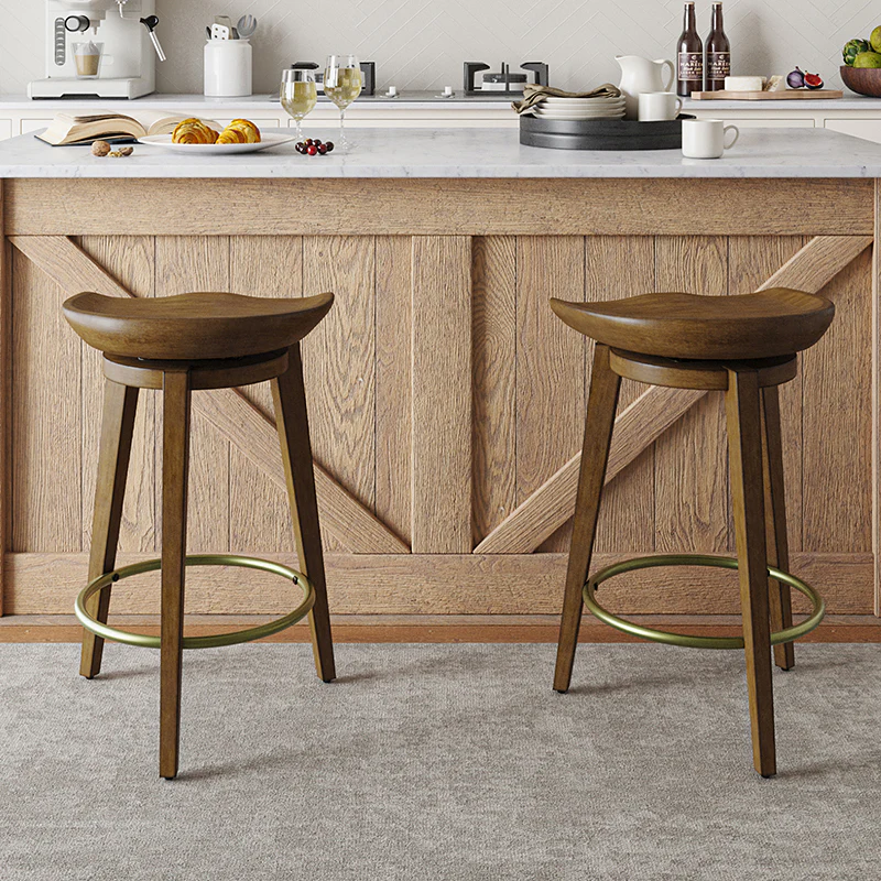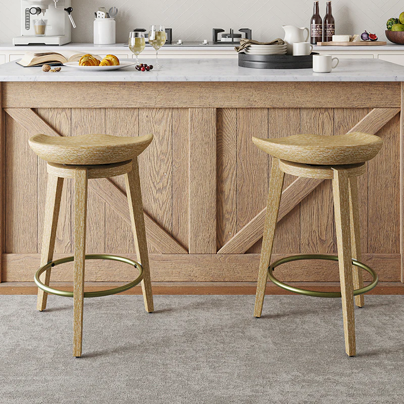 This mid-century modern swivel stool set of 2 seamlessly blends contemporary and mid-century design elements, making it an ideal addition to any dining room or bar counter. Featuring a sleek armless design, the stool set of 2 boasts solid wood legs and a comfortable solid wood seat. The fusion of traditional craftsmanship and modern aesthetics is evident in its construction. The stool set of 2 is further enhanced by a metal footrest, ensuring both style and functionality. With a swivel seat mechanism, it offers a dynamic seating experience, allowing easy movement and accessibility. Elevate your space with this versatile and stylish piece that marries the charm of the medieval era with the sophistication of mid-century modern design.