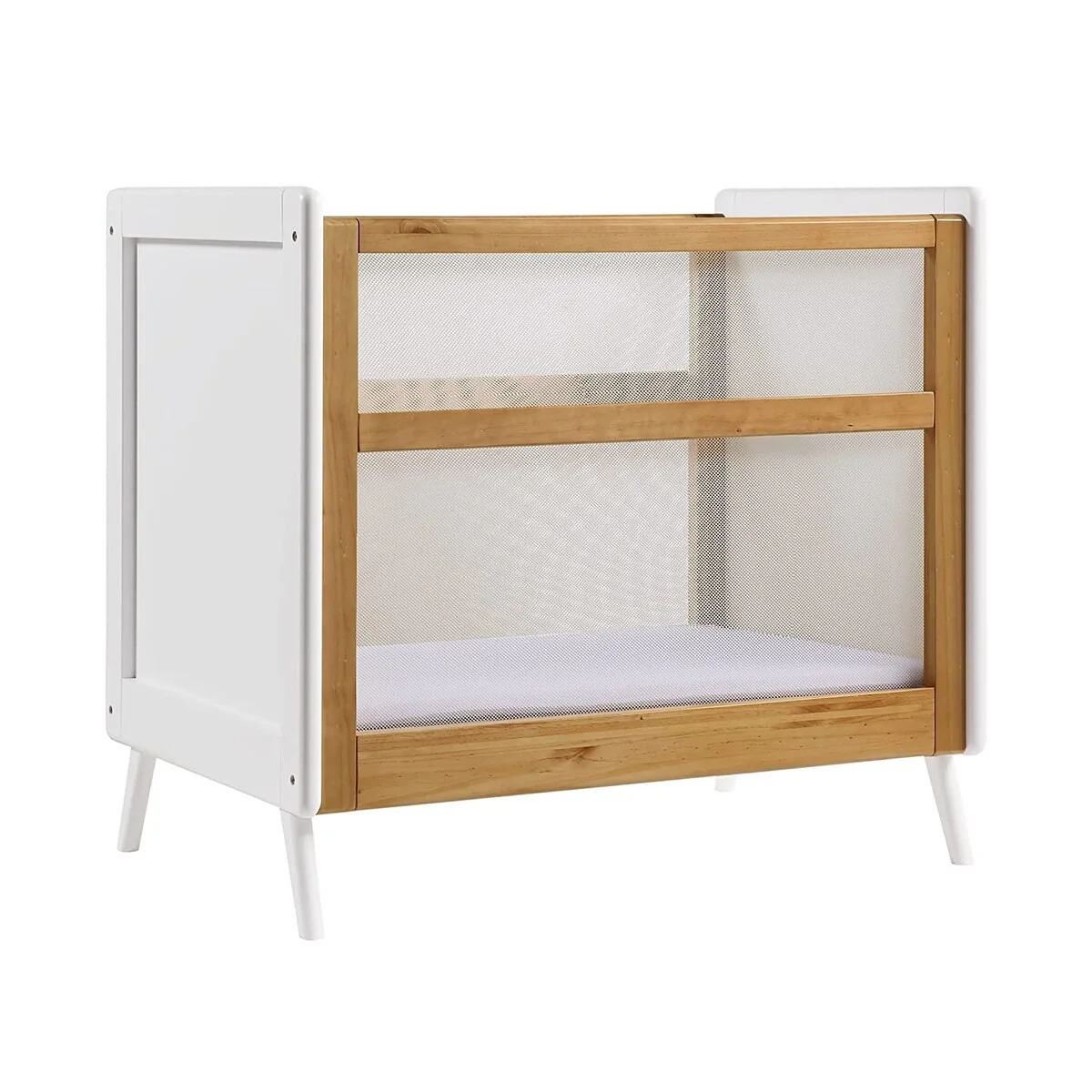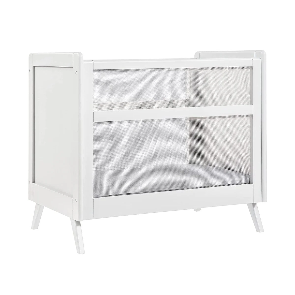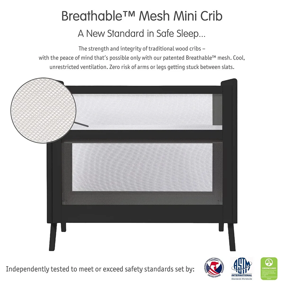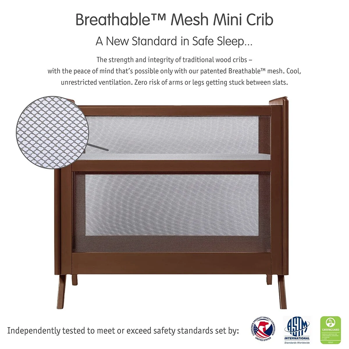 We set the bar in breathability with our patented mesh crib liners. So, we decided to tackle the crib itself. Say hello to the space saving Breathable Mesh 2-in-1 Mini Crib. It combines the strength and integrity of traditional wood cribs — with the peace of mind that's possible only with our patented breathable mesh. Cool, unrestricted ventilation. Zero risk of arms or legs getting stuck between slats. No pacifiers thrown out. No more cries.