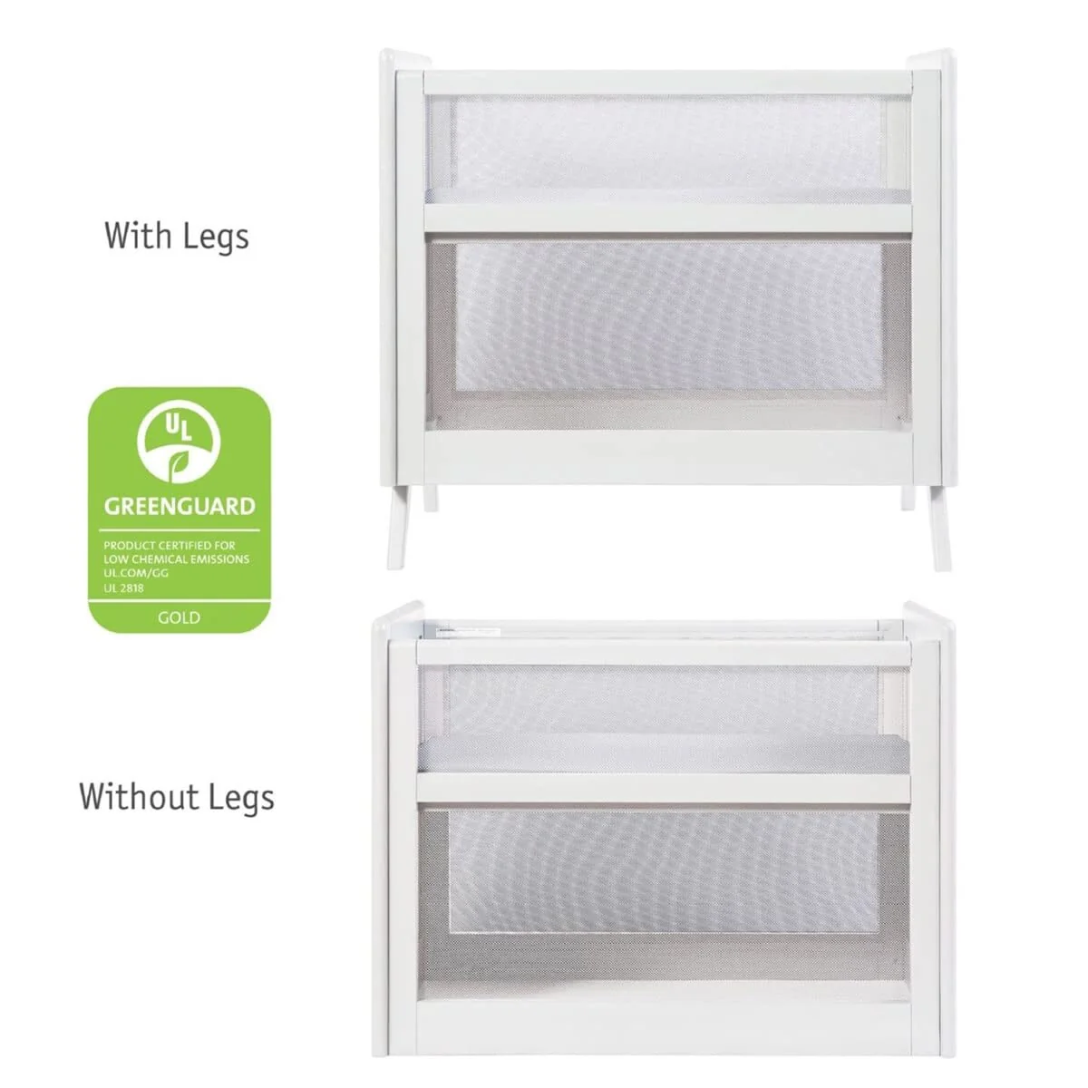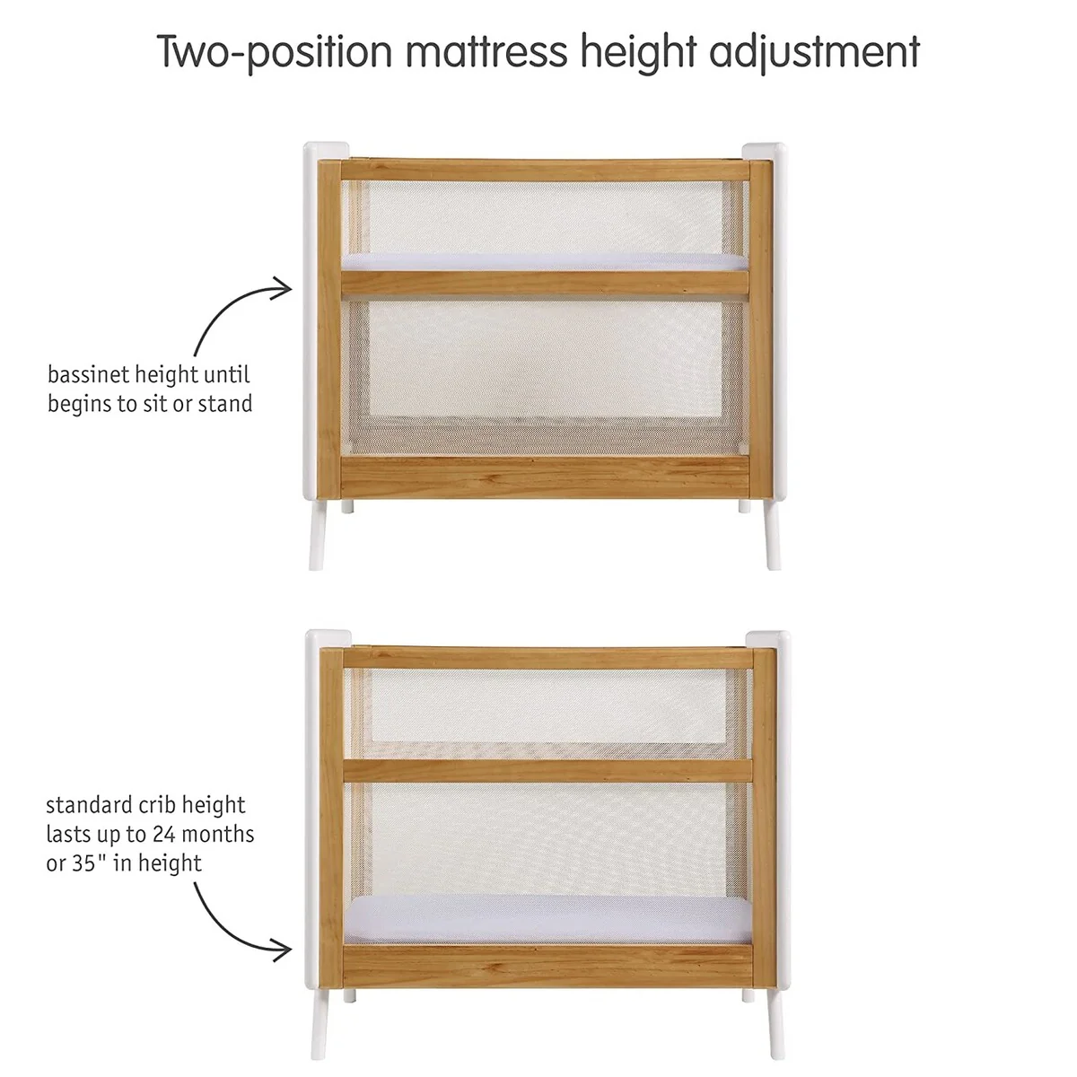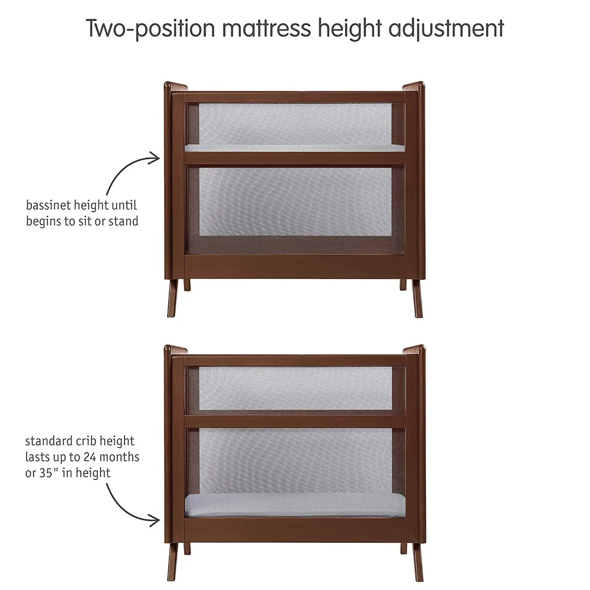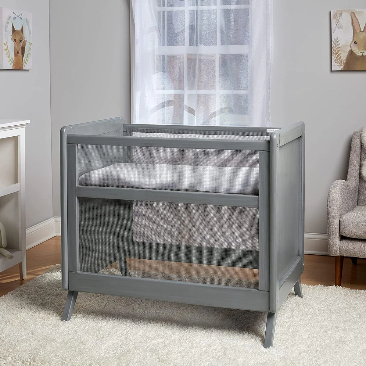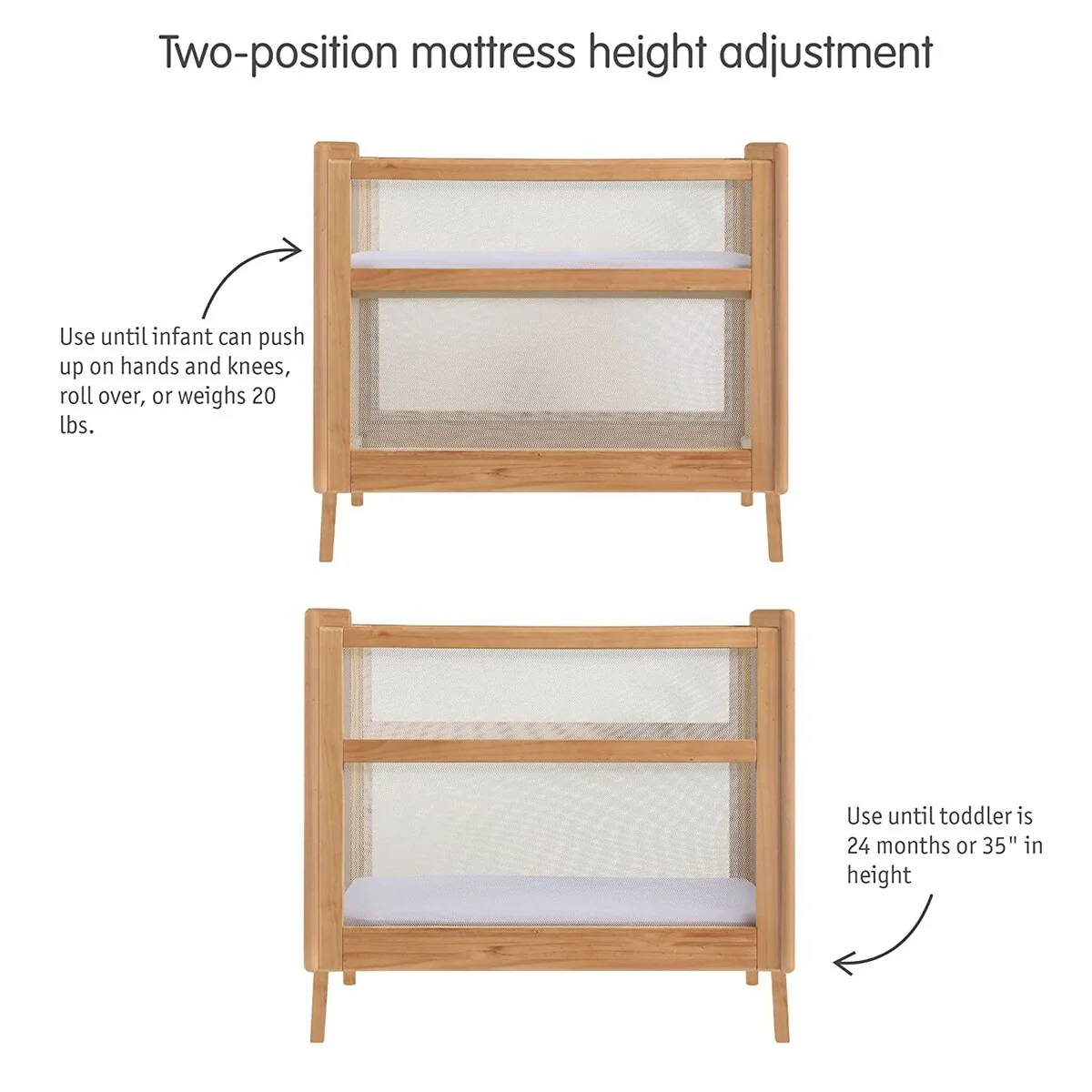 We set the bar in breathability with our patented mesh crib liners. So, we decided to tackle the crib itself. Say hello to the space saving Breathable Mesh 2-in-1 Mini Crib. It combines the strength and integrity of traditional wood cribs — with the peace of mind that's possible only with our patented breathable mesh. Cool, unrestricted ventilation. Zero risk of arms or legs getting stuck between slats. No pacifiers thrown out. No more cries.