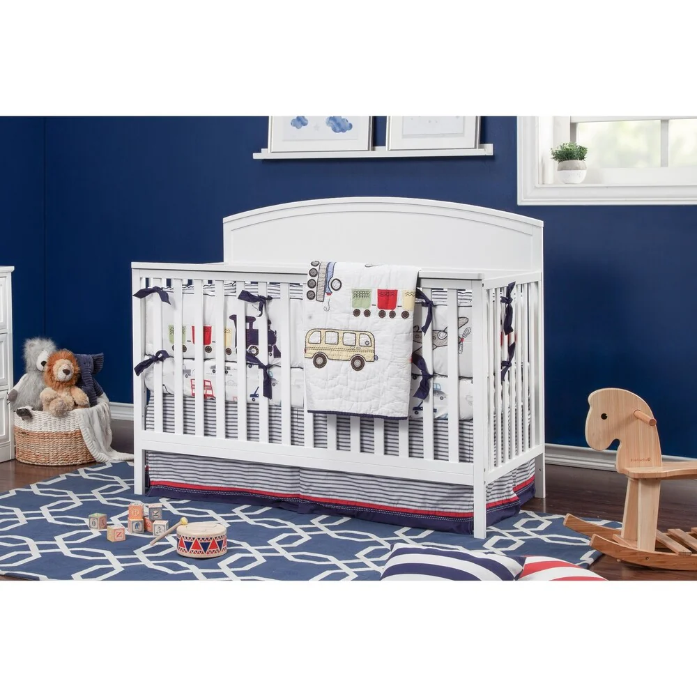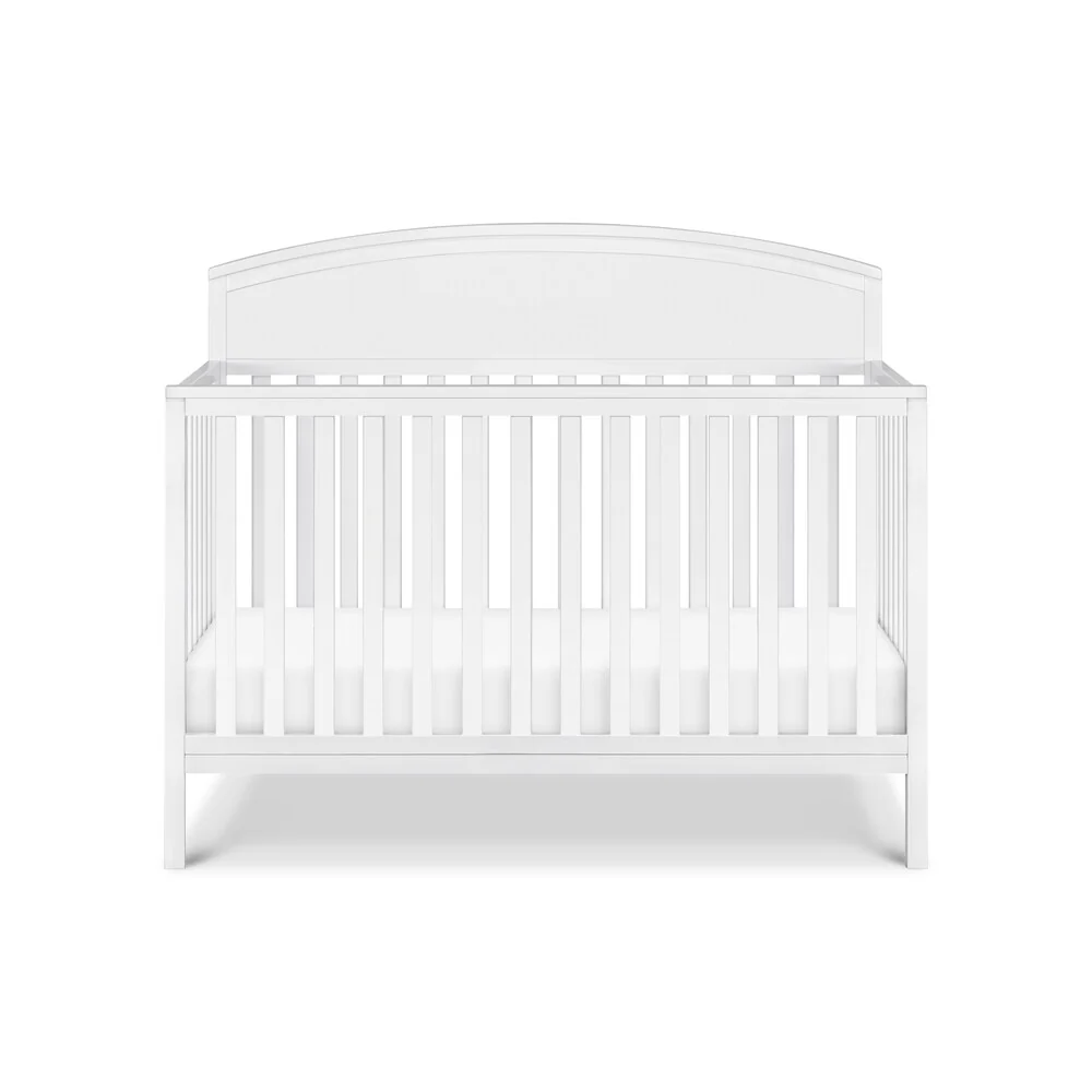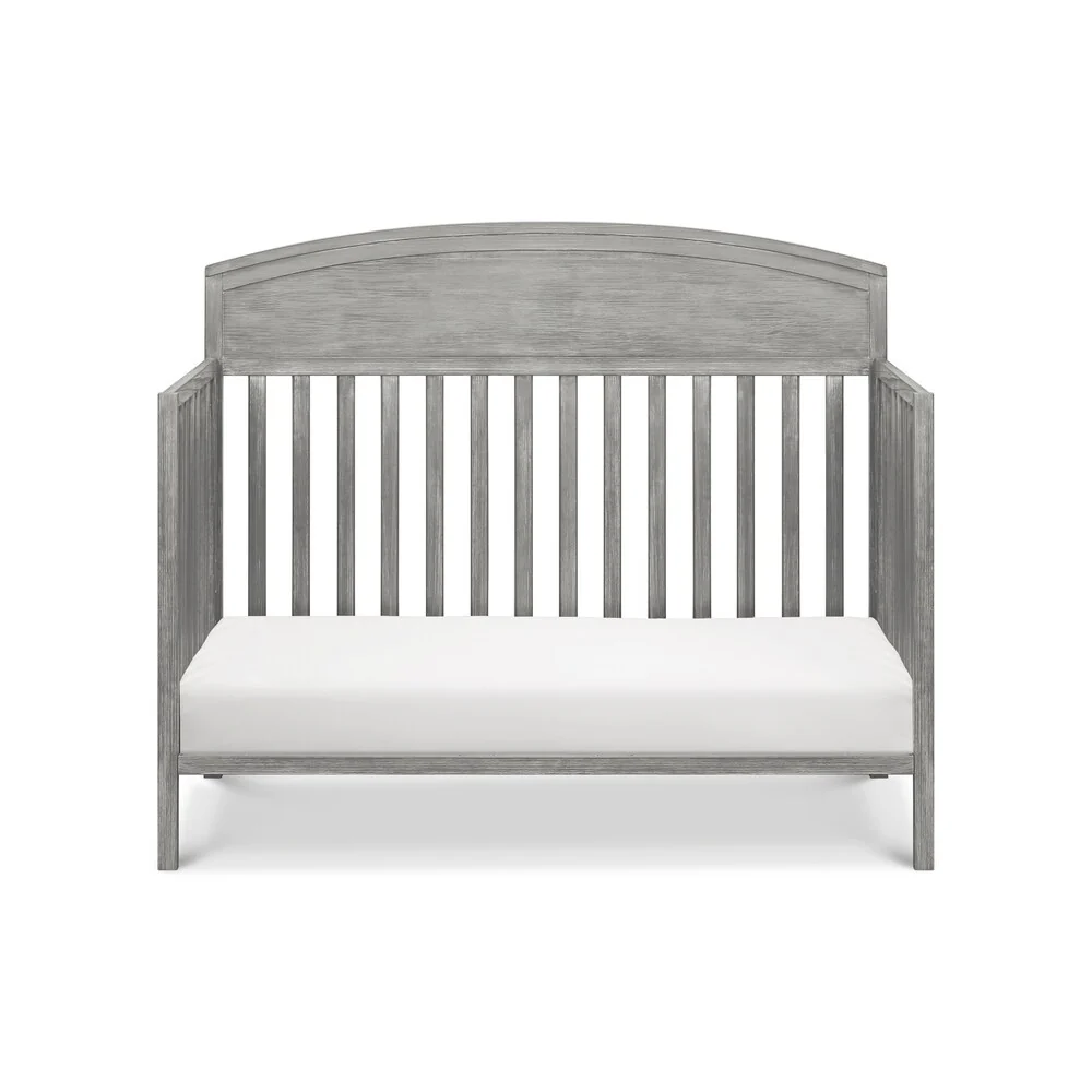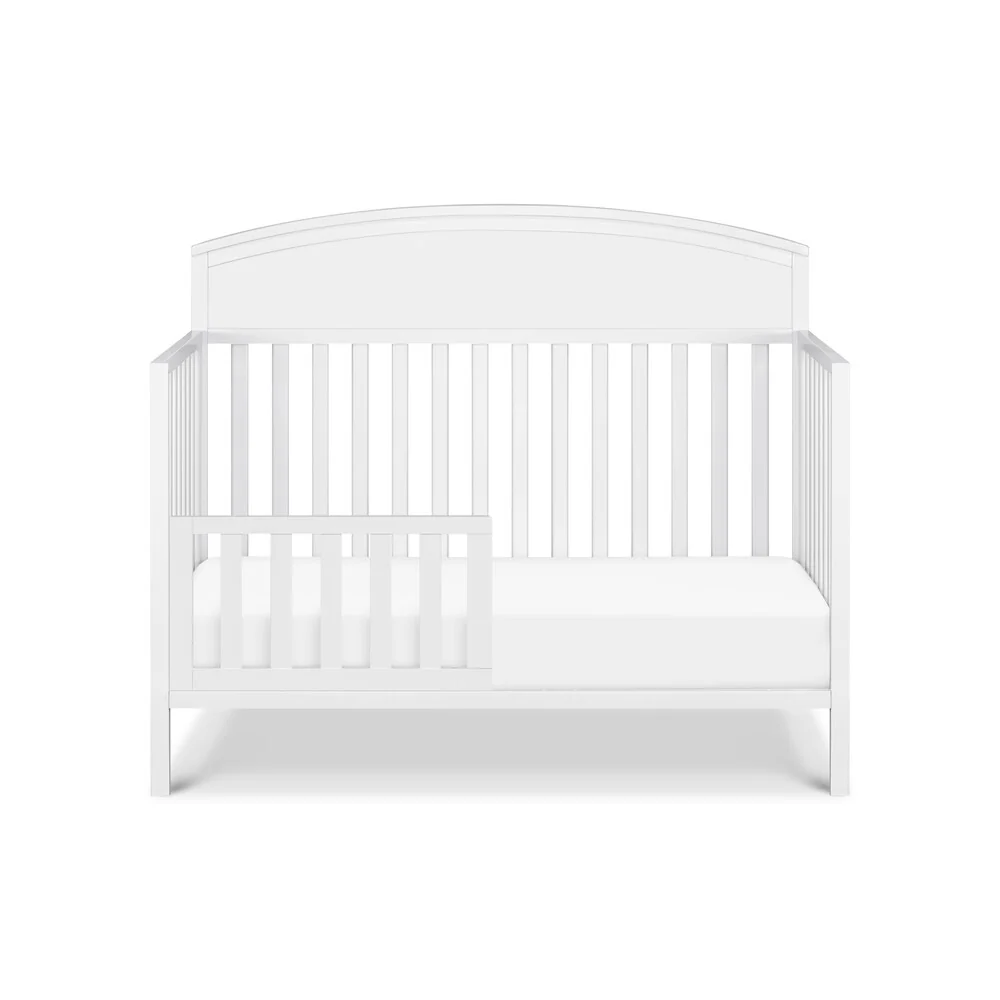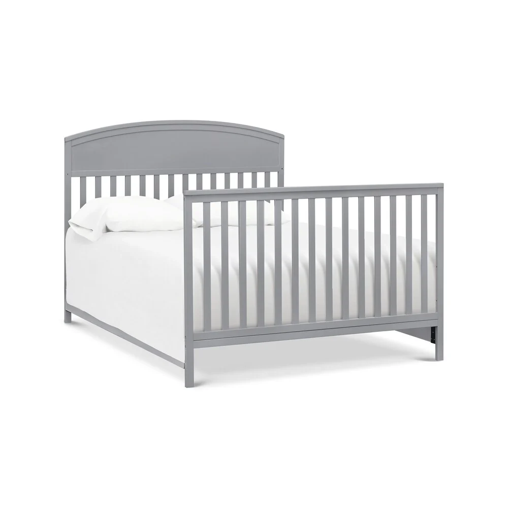 The Liam 4-in-1 Crib features a gently arched headboard with a sturdy slat design that makes it a versatile and elegant addition to the nursery. The crib easily converts from crib to toddler bed, daybed and a full-size bed to grow with baby throughout the years.