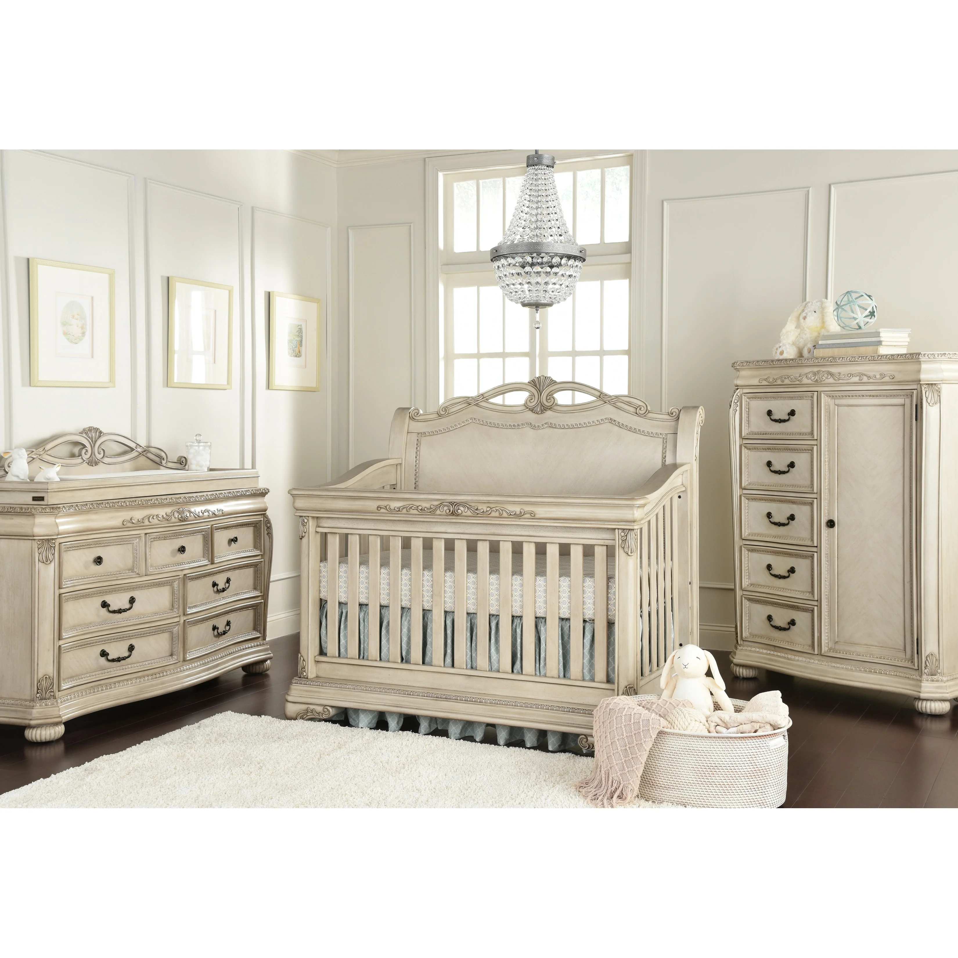 There's nothing quite like the Wessex collection, its hand carved detail and moldings are fit for royalty, but made just for your baby. The ornate design of this beautiful collection is constructed out of mahogany and topped off with a natural seashell finish. The timeless style and excellent craftsman of the Wessex collection ensure that your family will cherish it for life. This crib can cleverly transform into a dignified toddler bed, day bed, or full-size bed with the purchases of a guard rail and conversion kit. We suggest using a bunkie board or box spring under the mattress for conversion kits.