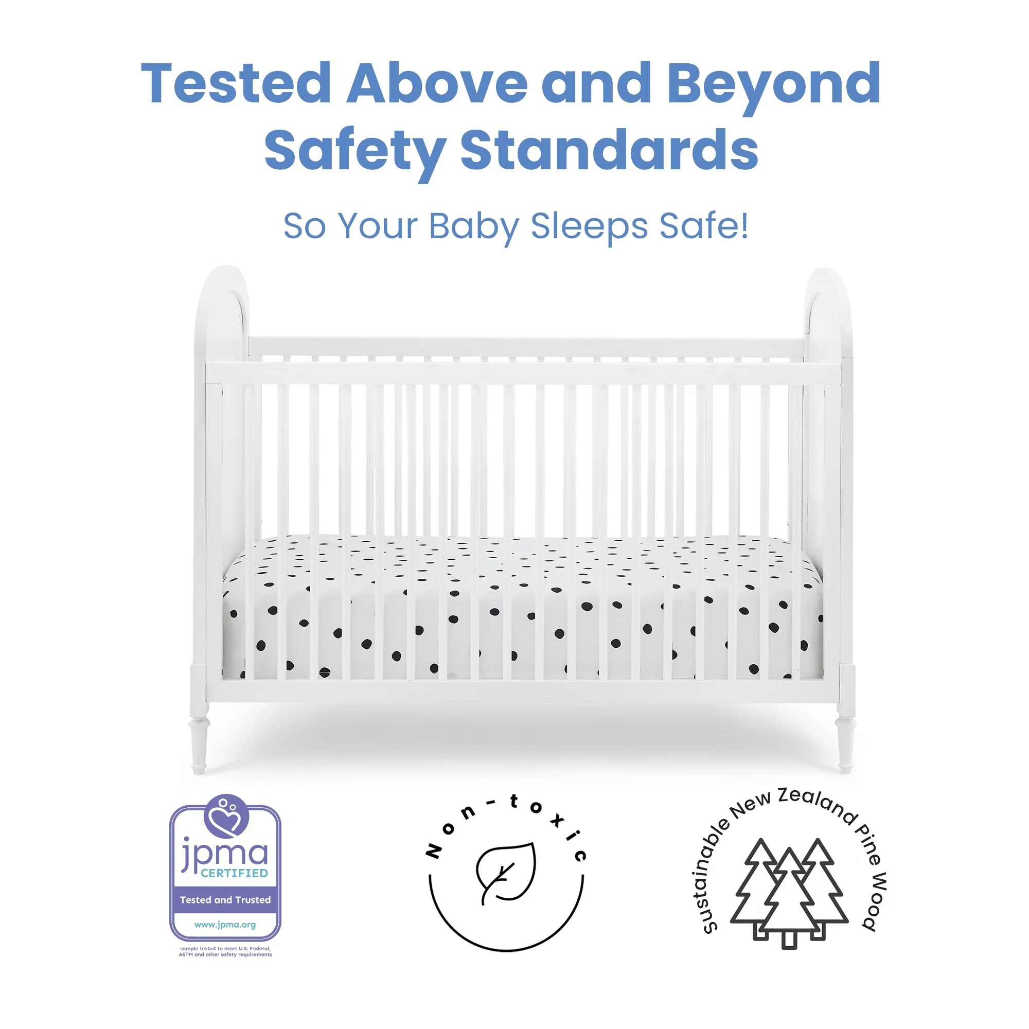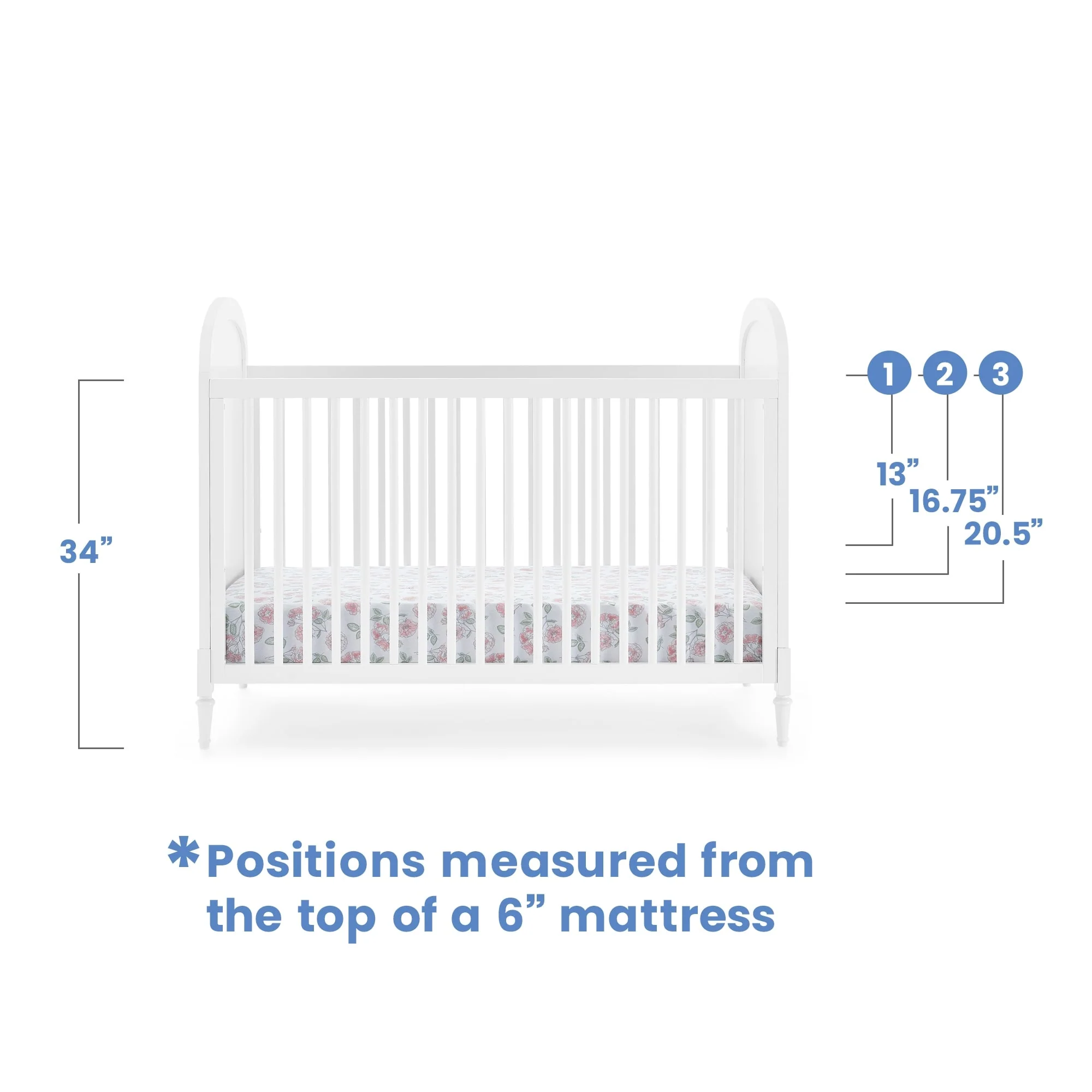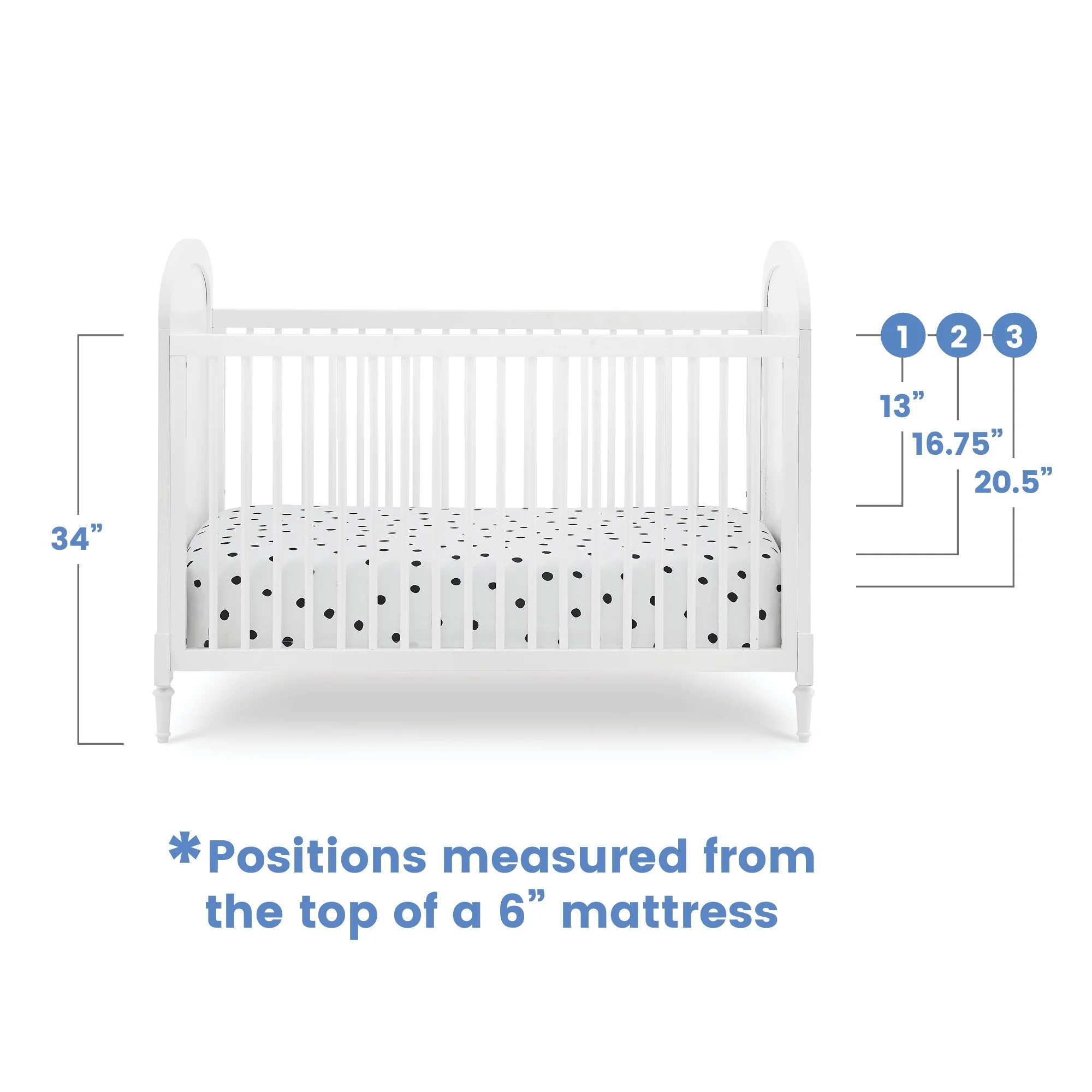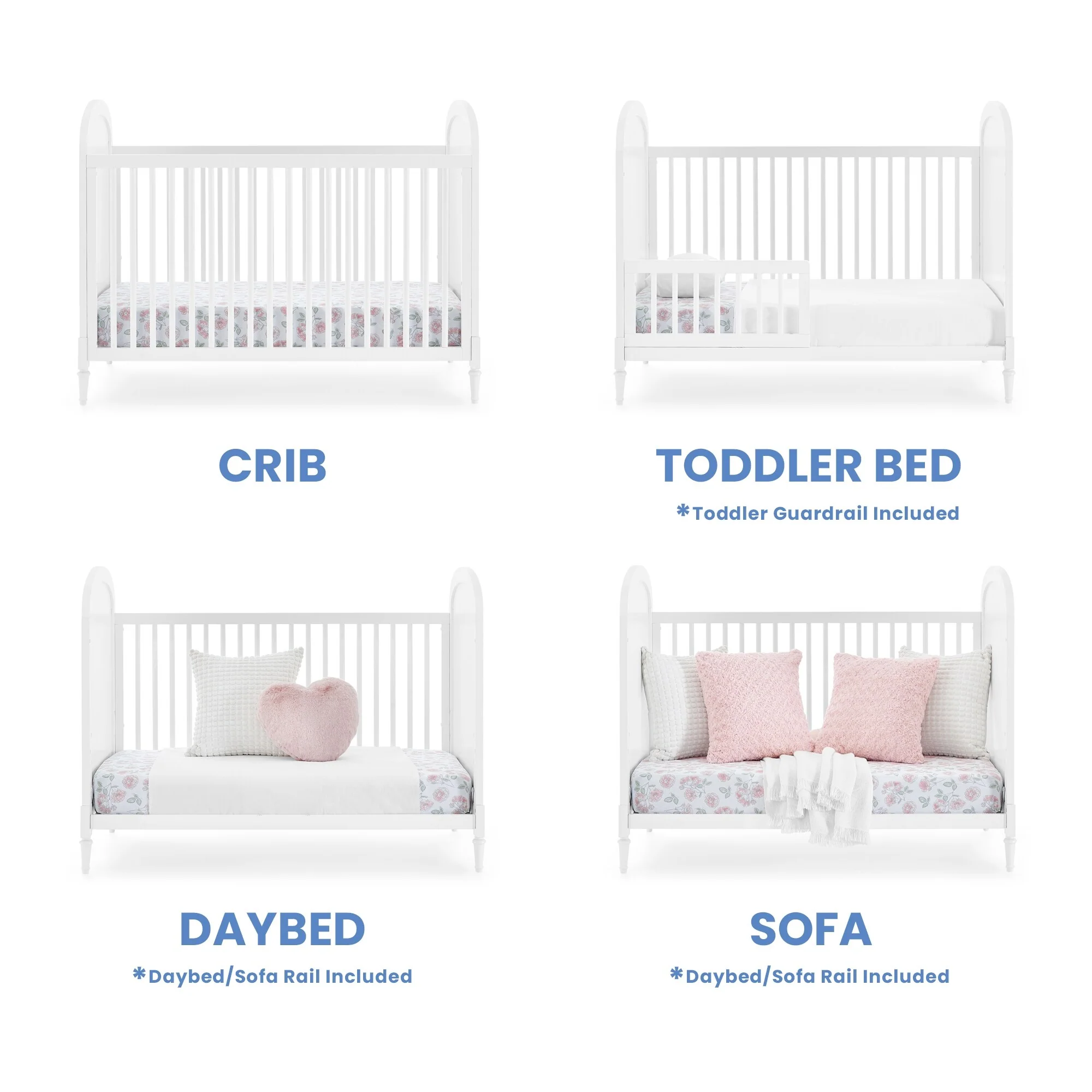 Timeless style, a touch of texture and mix of materials makes the Madeline 4-in-1 Convertible Crib by Delta Children the statement making piece you've been searching for. Woven cane detailing on both end panels contrasts beautifully with the solid wood frame, while rosette carvings and fluted legs elevate the design. An included conversion kit lets you turn this baby crib into a toddler bed, daybed and sofa—a great investment piece your child can use for many years. To complete your nursery, pair with the coordinating Madeline 4 Drawer Dresser with Changing Top.