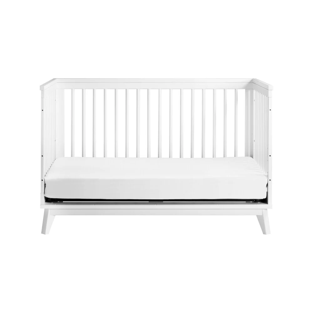 The Scoot 3-in-1 Convertible Crib is the perfect centerpiece to your mid-century modern nursery. Its retro-inspired features add a charming vibe for babe's new space. Modern and functional, an included toddler bed conversion kit allows you to seamlessly convert from crib to toddler bed to daybed as your babe grows. Breathe easy knowing the Scoot is made with solid New Zealand pine wood and is GREENGUARD GOLD certified making it a smart, safe, and stylish choice.
