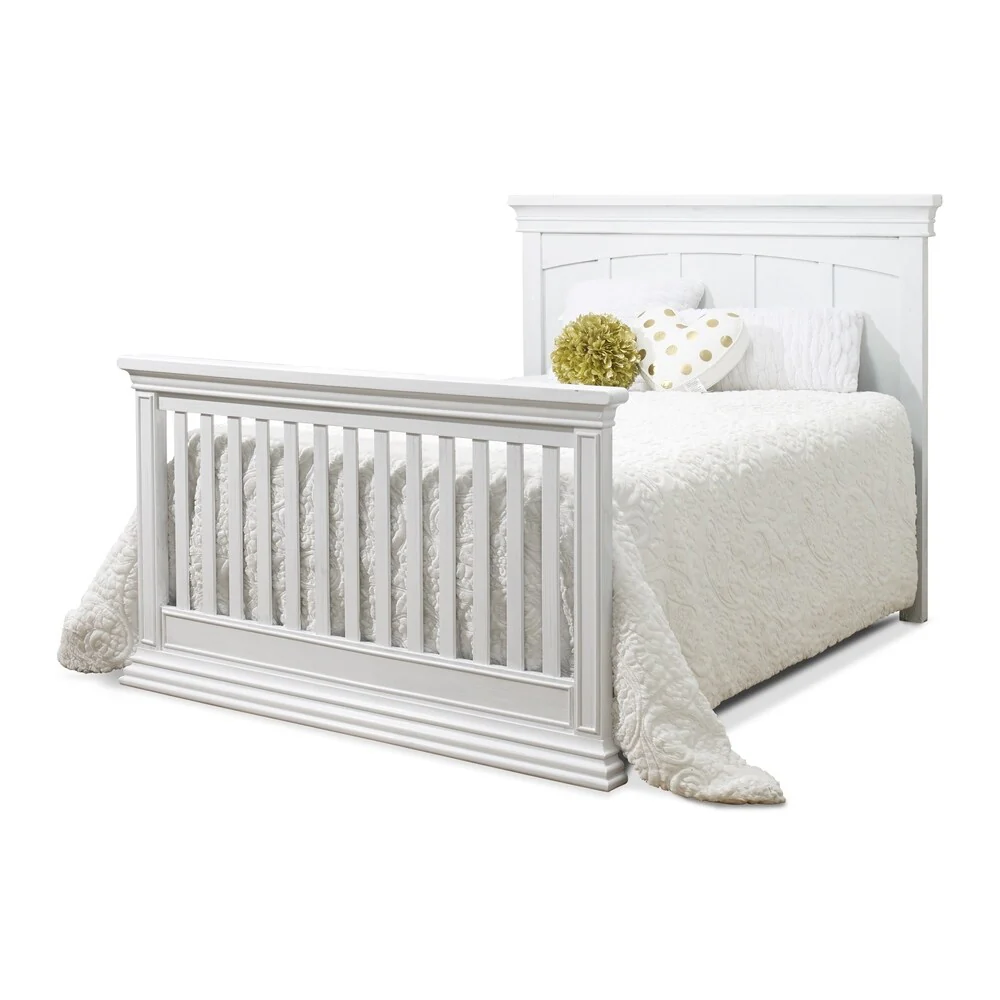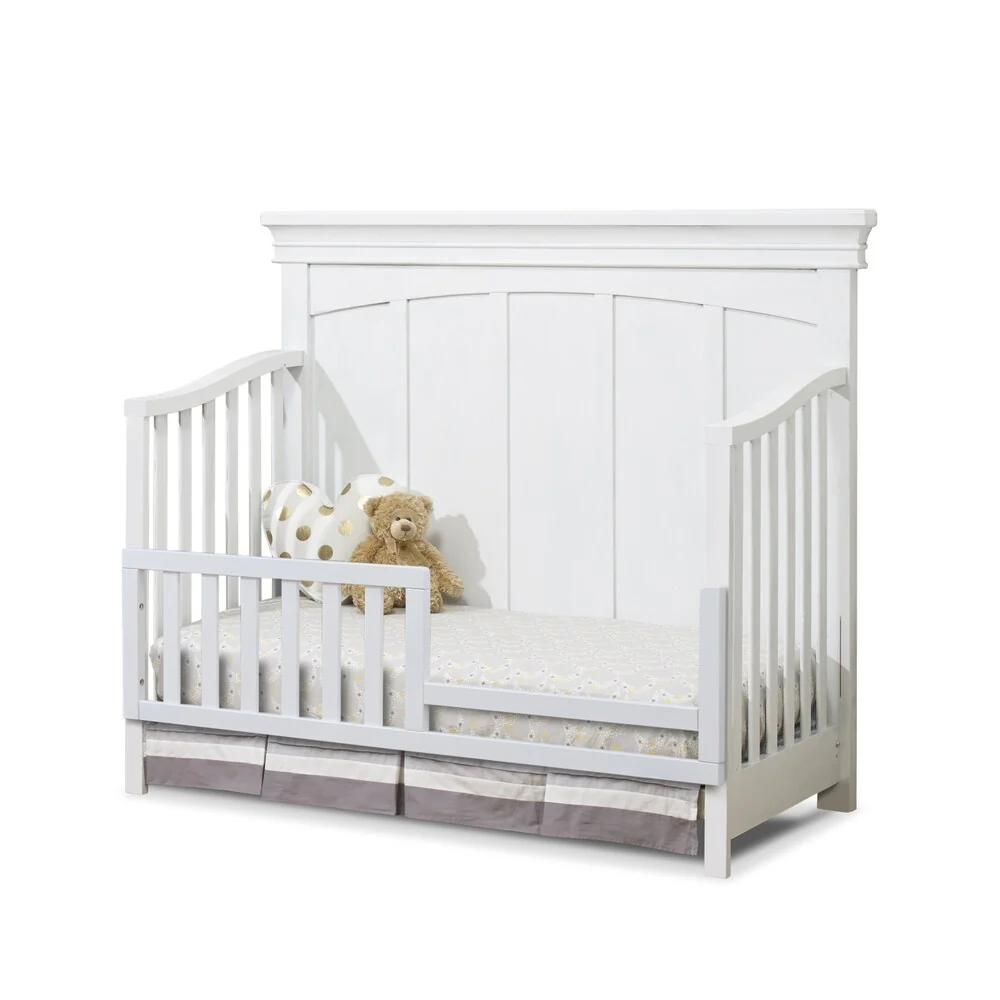 The Sorelle Modesto 4-in-1 Convertible Crib is one of Sorelle’s newest additions. It was introduced recently and features hand-crafted furniture pieces designed to complete your baby nursery. Made with modern lines and craftsmanship, the Modesto collection features several pieces including a convertible crib, double dresser, and changing topper in one finish, White. It should also be noted that the crib can be converted to a toddler bed with the (#136) toddler rail, and a full size bed with use of the (#215) full size rails, each sold separately.