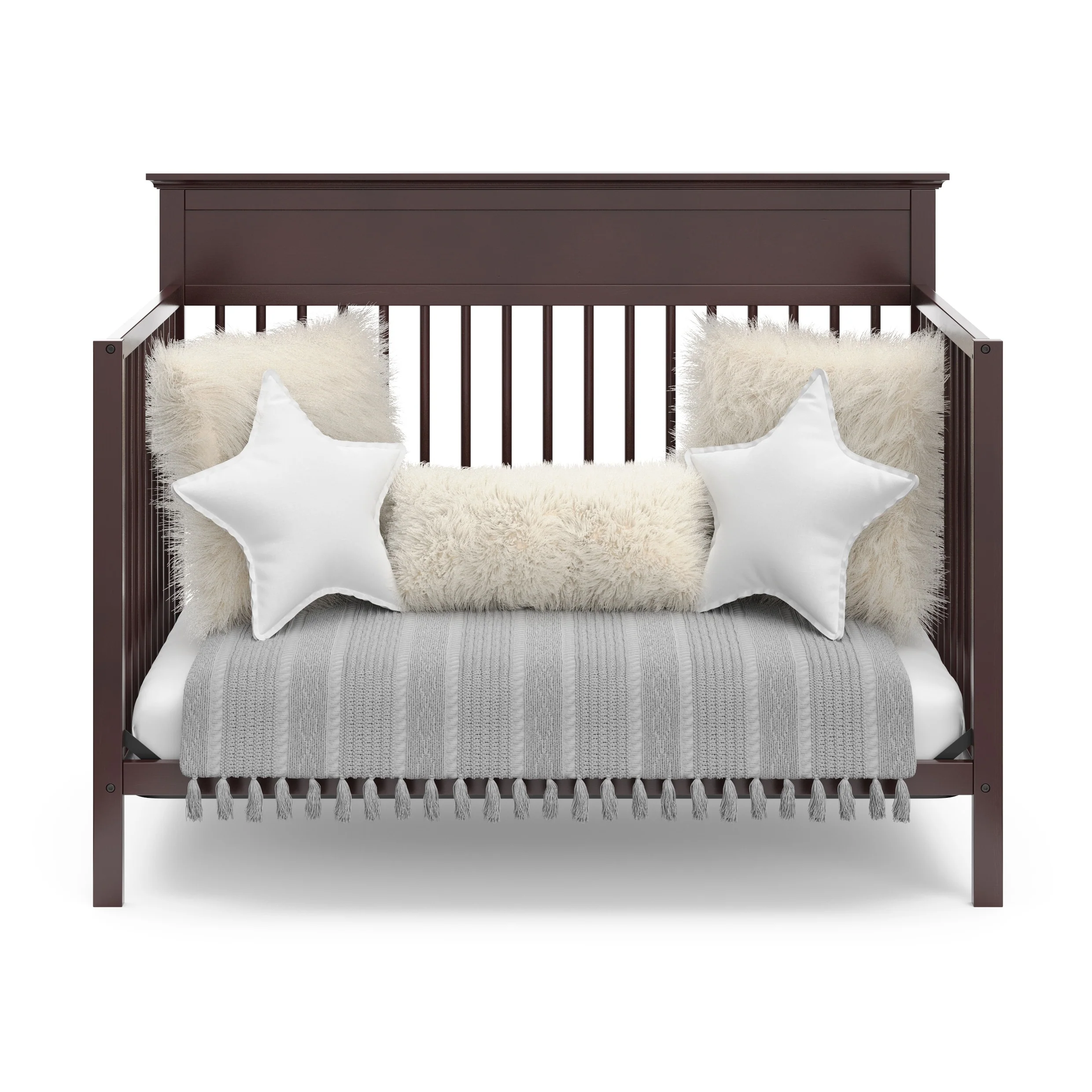 The Storkcraft Carmel 5-in-1 Convertible Crib is a versatile, classic crib with a timeless, charming design that will match beautifully with any nursery style. Designed to accommodate your growing baby, the Carmel is equipped with a 3-position adjustable mattress support that fits any standard full-size crib and toddler mattress. Available in multiple finishes, the Storkcraft Carmel easily converts into a toddler bed (Toddler Safety Guardrail Kit-Dowels sold separately), daybed, and full-size bed with headboard and optional footboard. The Storkcraft Carmel Convertible Crib is GREENGUARD Gold Certified - Certified products are screened for more than 10,000 chemicals and VOCs known to pollute indoor air. Also, the Storkcraft Carmel Convertible Crib is JPMA Certified, meaning it's been expert tested by third-party, accredited laboratories to meet or exceed all applicable category voluntary and mandatory safety standards. Assembly required, mattress sold separately, toddler safety guardrail sold separately.
