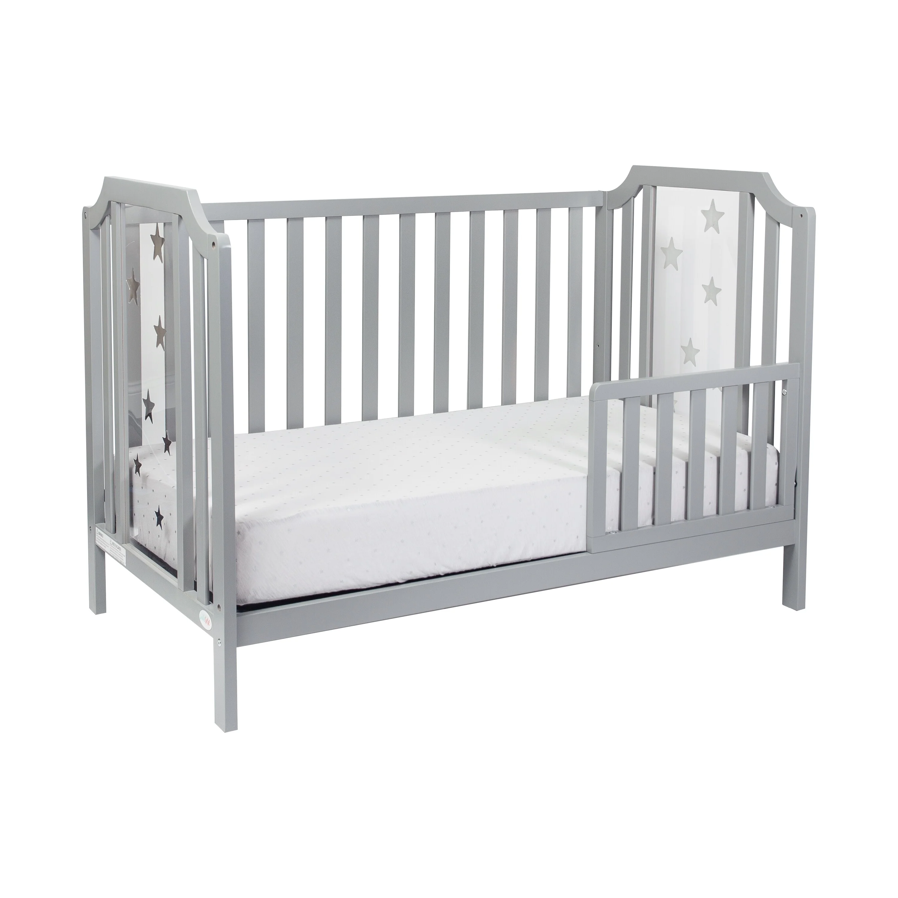 The Celeste crib from Suite Bebé brings the beauty of the night sky straight into your child's nursery. Each side panel is made from acrylic and adorned with stars, making your child's crib the shining star of the nursery. Inspired by the color palette of the night sky. For extra star power, complete your child's nursery with the purchase of the matching Celeste changing table. Once your child outgrows their crib, easily convert the Celeste into a day bed or toddler bed with the additional purchase of the toddler guardrail