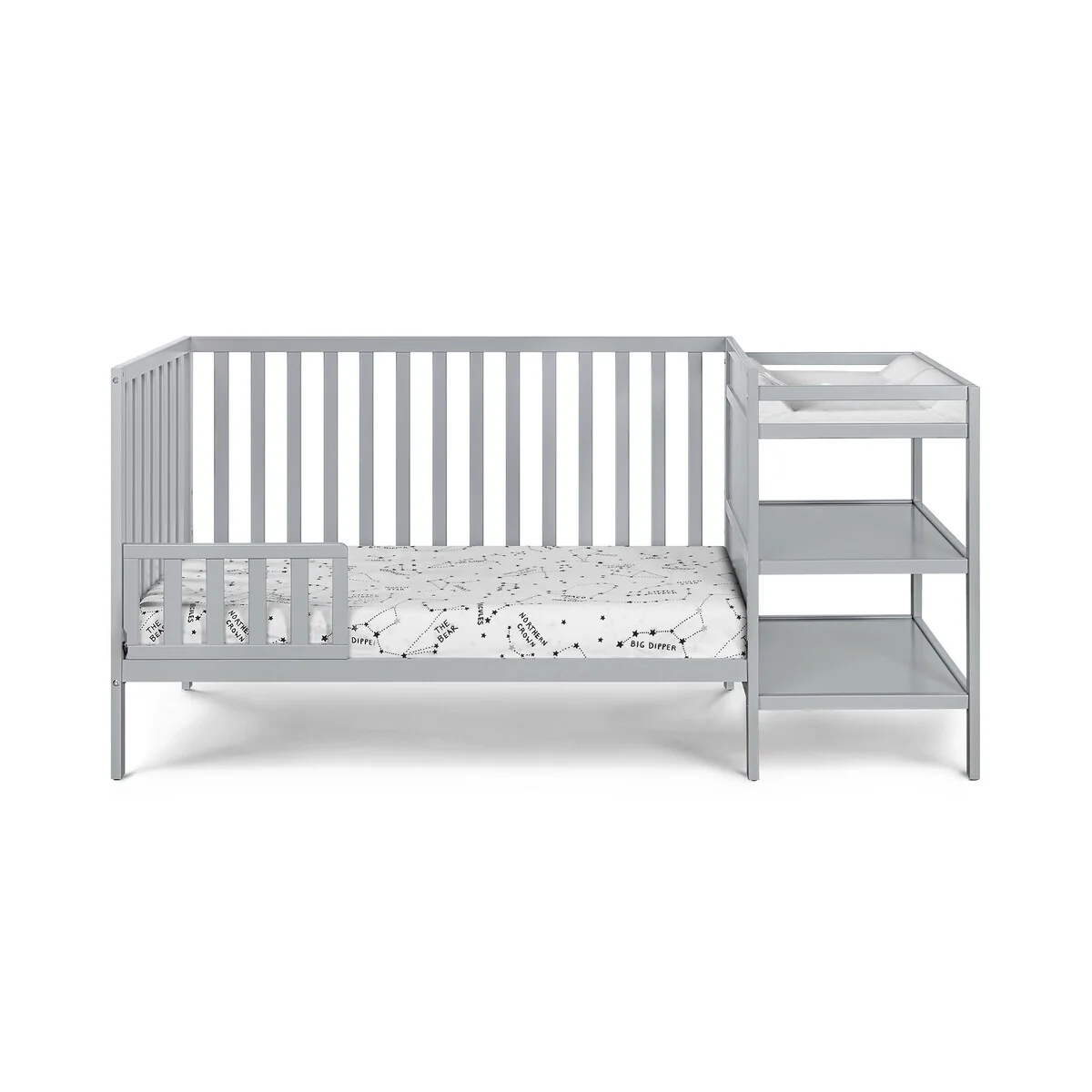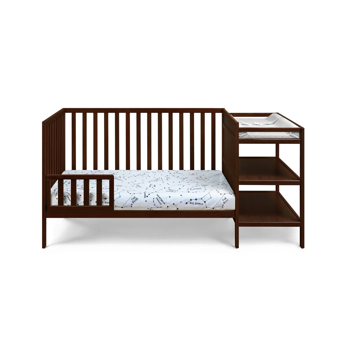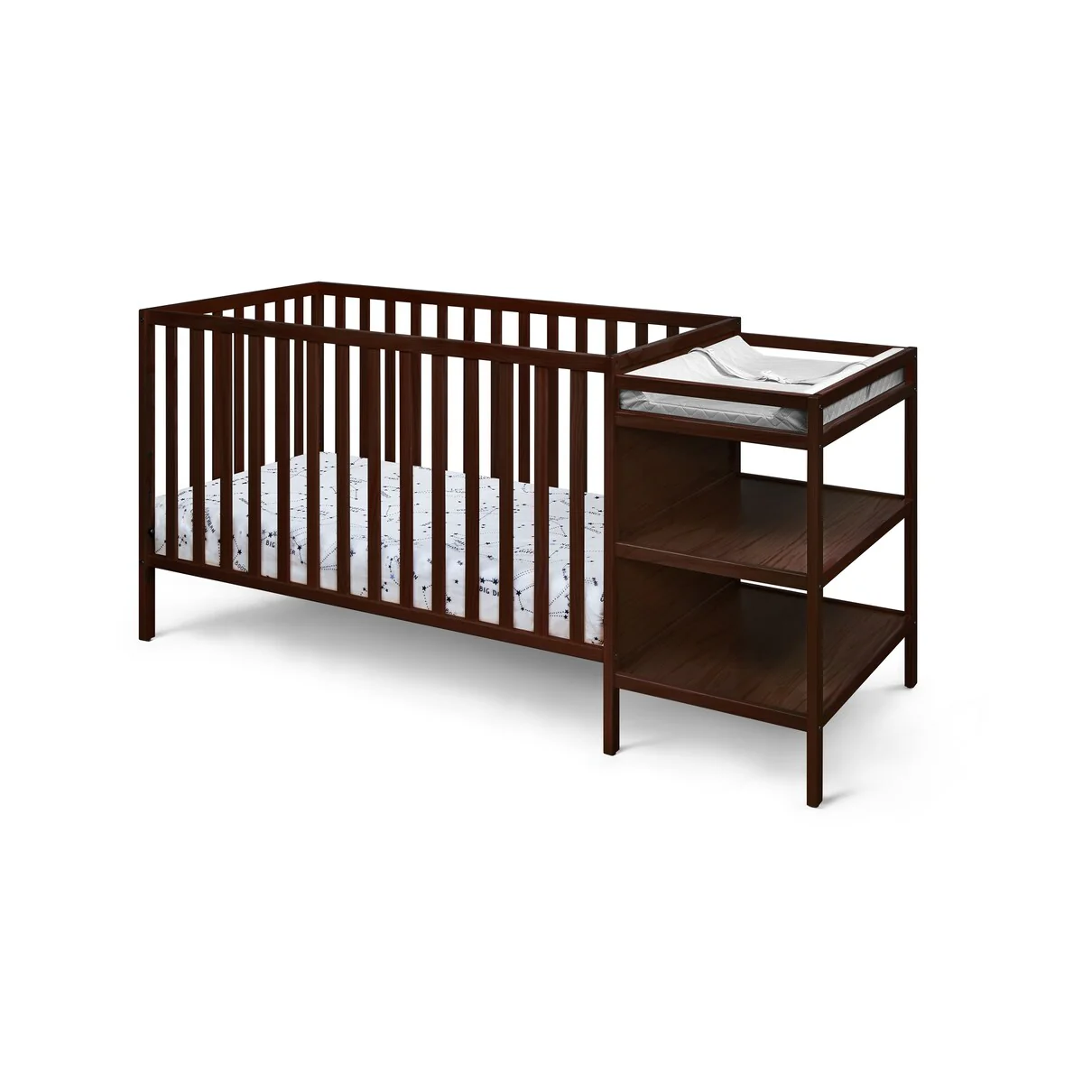 The Suite Bebe Palmer Crib and Changer Combo is the perfect setup for your nursery. Contemporary and big on style but small on space. The crib with attached changing table has two spacious shelves for plenty of storage for baby necessities. The Palmer CNC offers three position mattress support for ease of use and solid wood construction for optimum safety