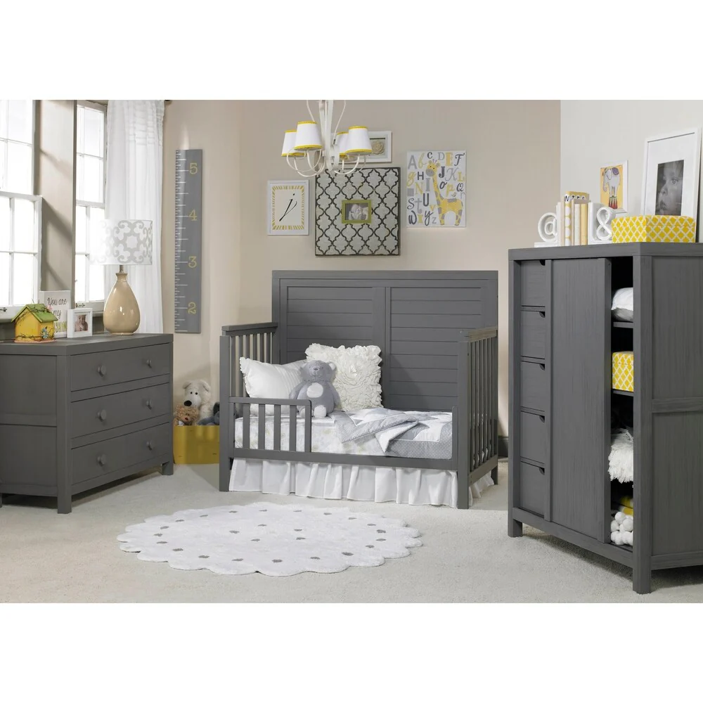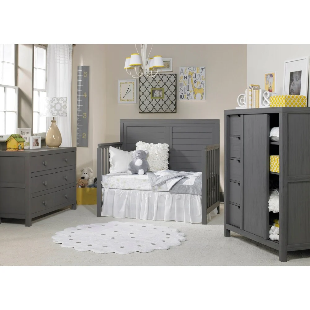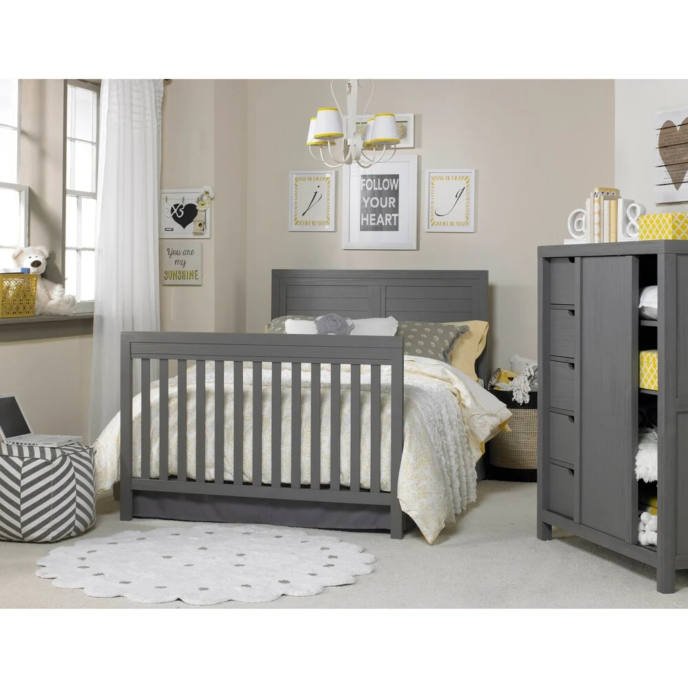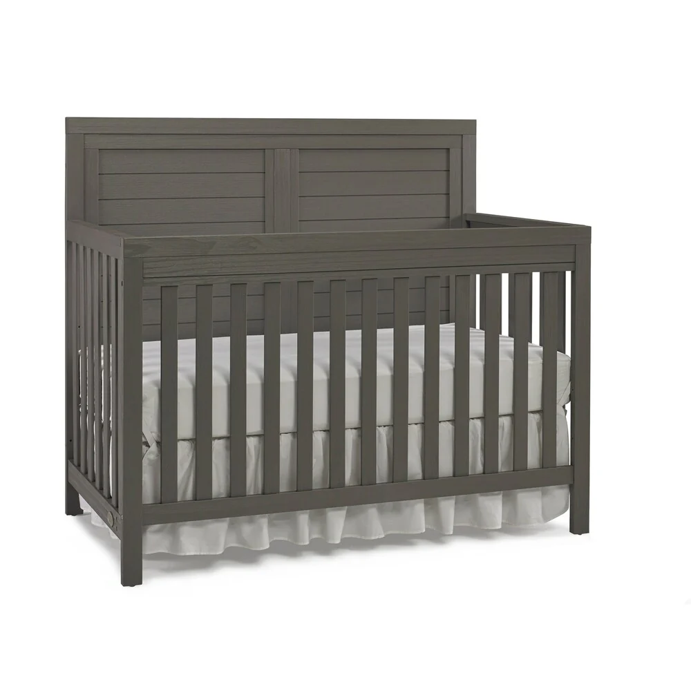 Finish off your baby's room with this convertible crib, designed to grow with your baby into a toddler bed, a daybed, and finally a full-sized bed. Made of wood for durability and a traditional, rustic finish, this crib also allows you to easily change the mattress height as your child grows.