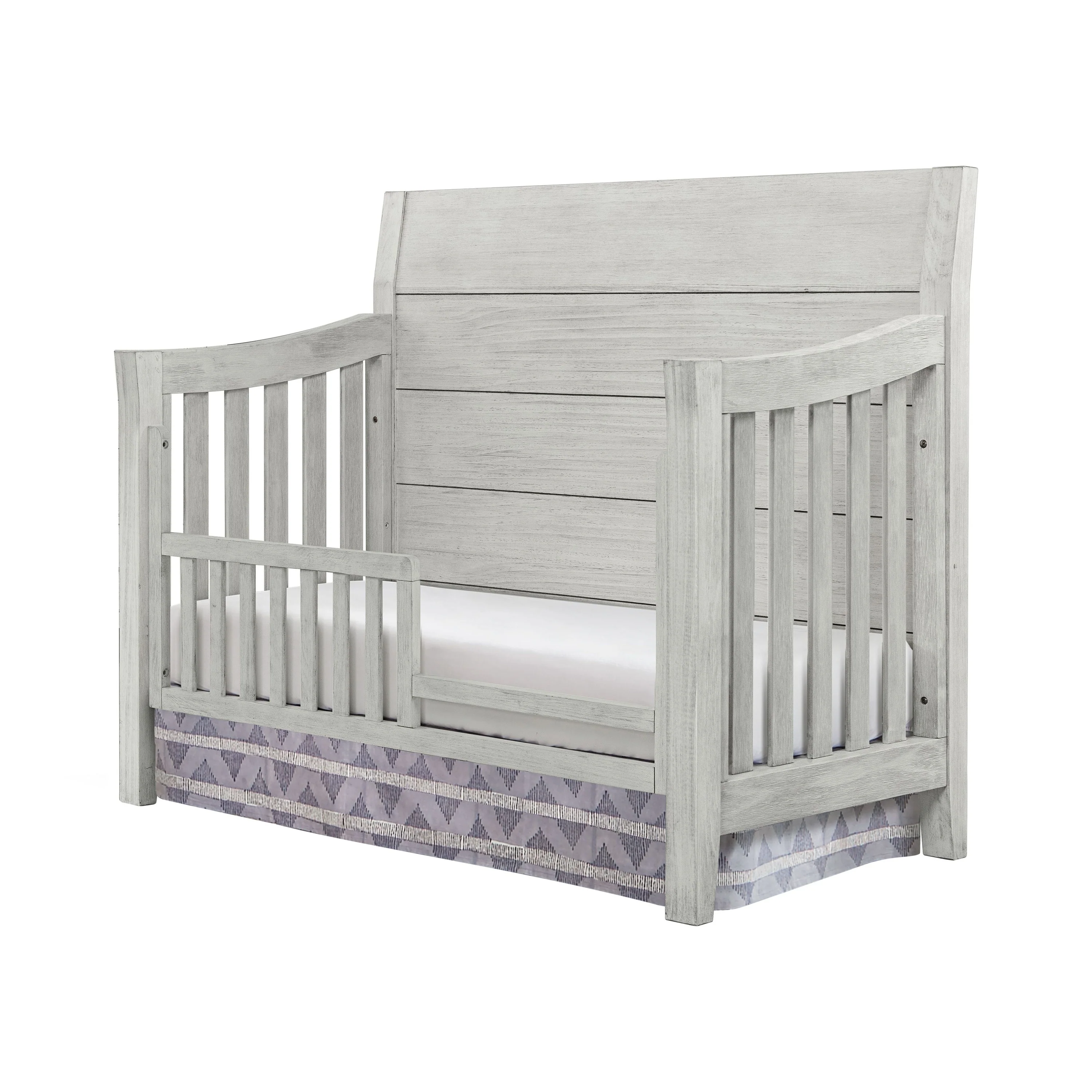 Introducing the Timber Ridge Convertible Crib, this multi-functional piece of furniture is the perfect addition to any farmhouse-style nursery with its timeless design and excellent craftsmanship. Crafted from high-quality solid hardwood, this crib is built to withstand the test of time, ensuring your little one can use it for years to come. The beautiful weathered washed sierra finish gives it a charming rustic touch, making it a focal point of any nursery. At the heart of this piece is its multi-functional design that accommodates your baby's growth, making it a sound investment in your child's future.