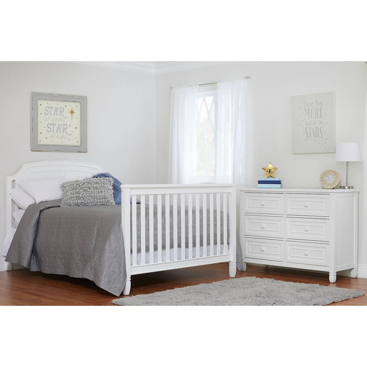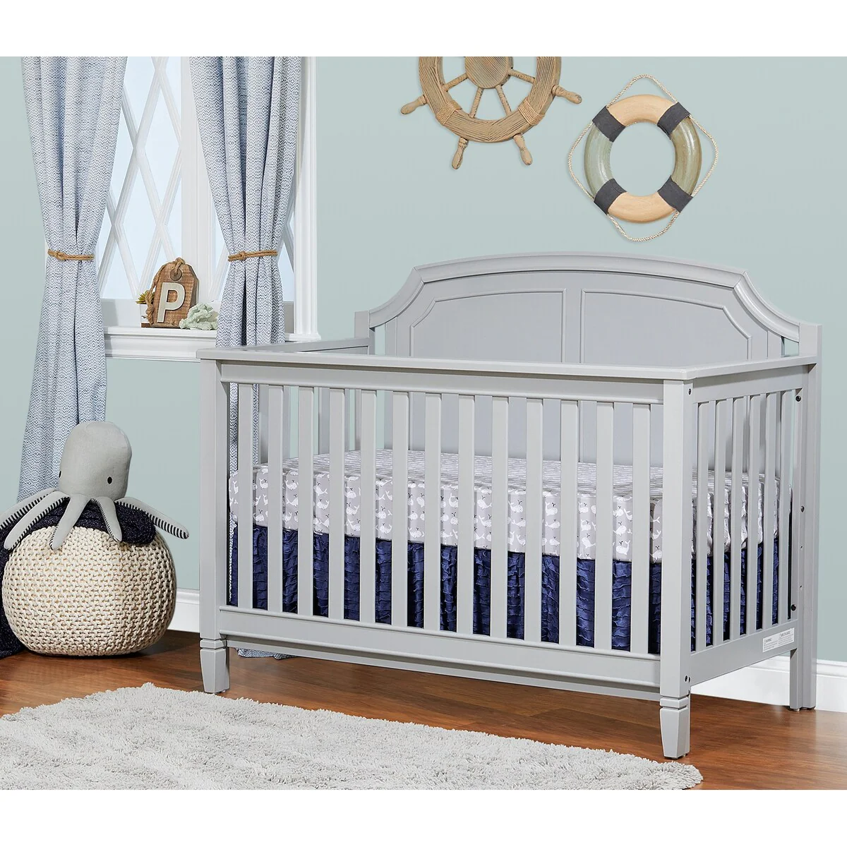 - The crib’s durable craftsmanship is finished with delicate detailing fit for a regal nursery.