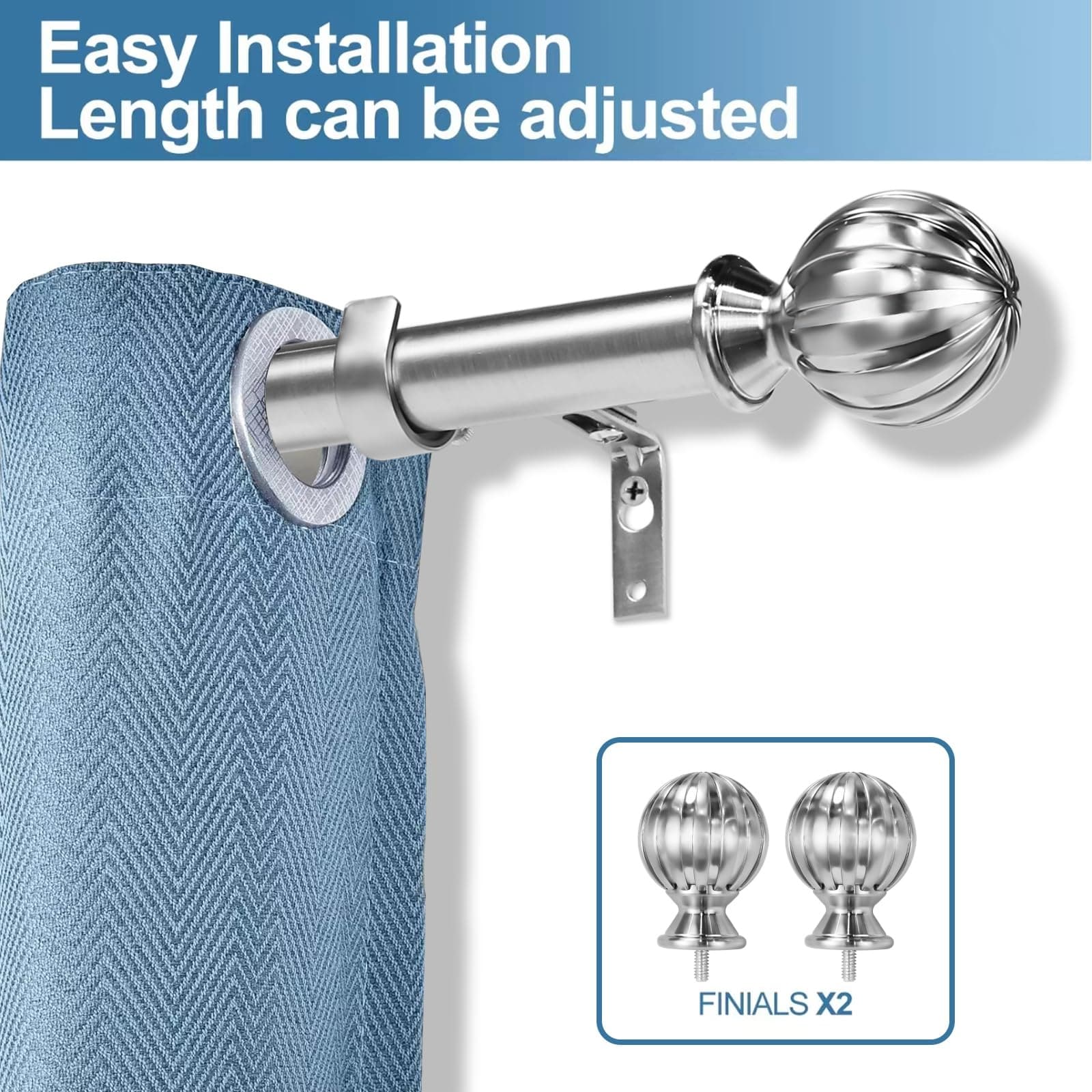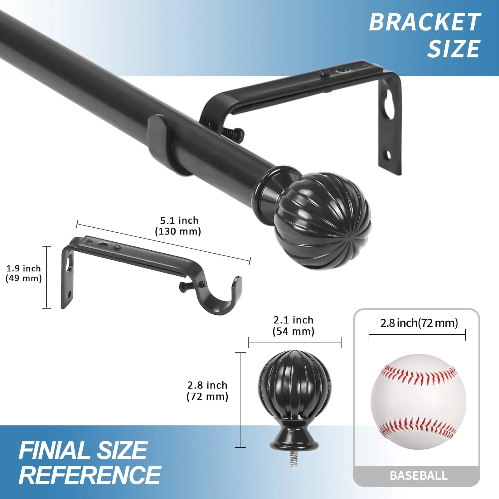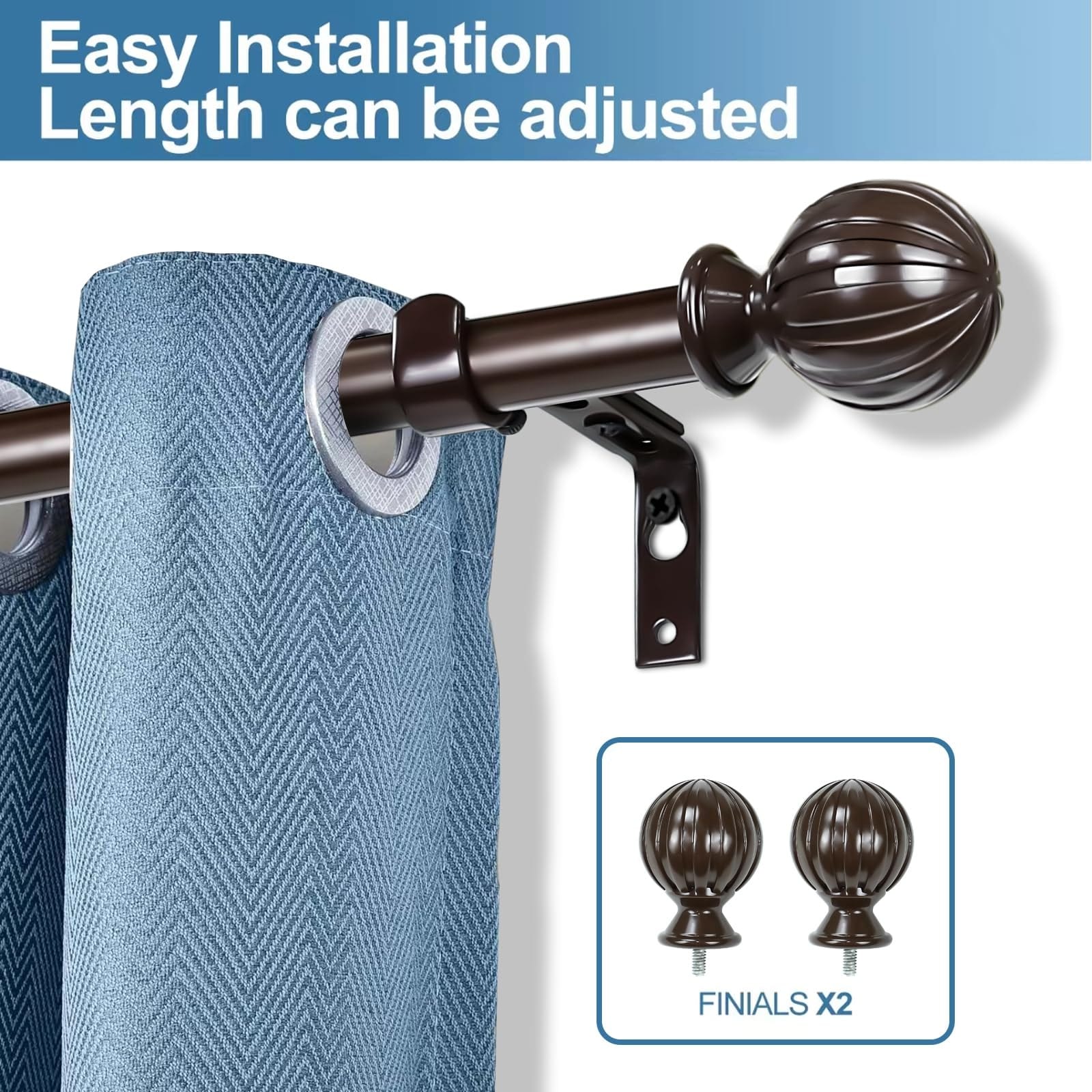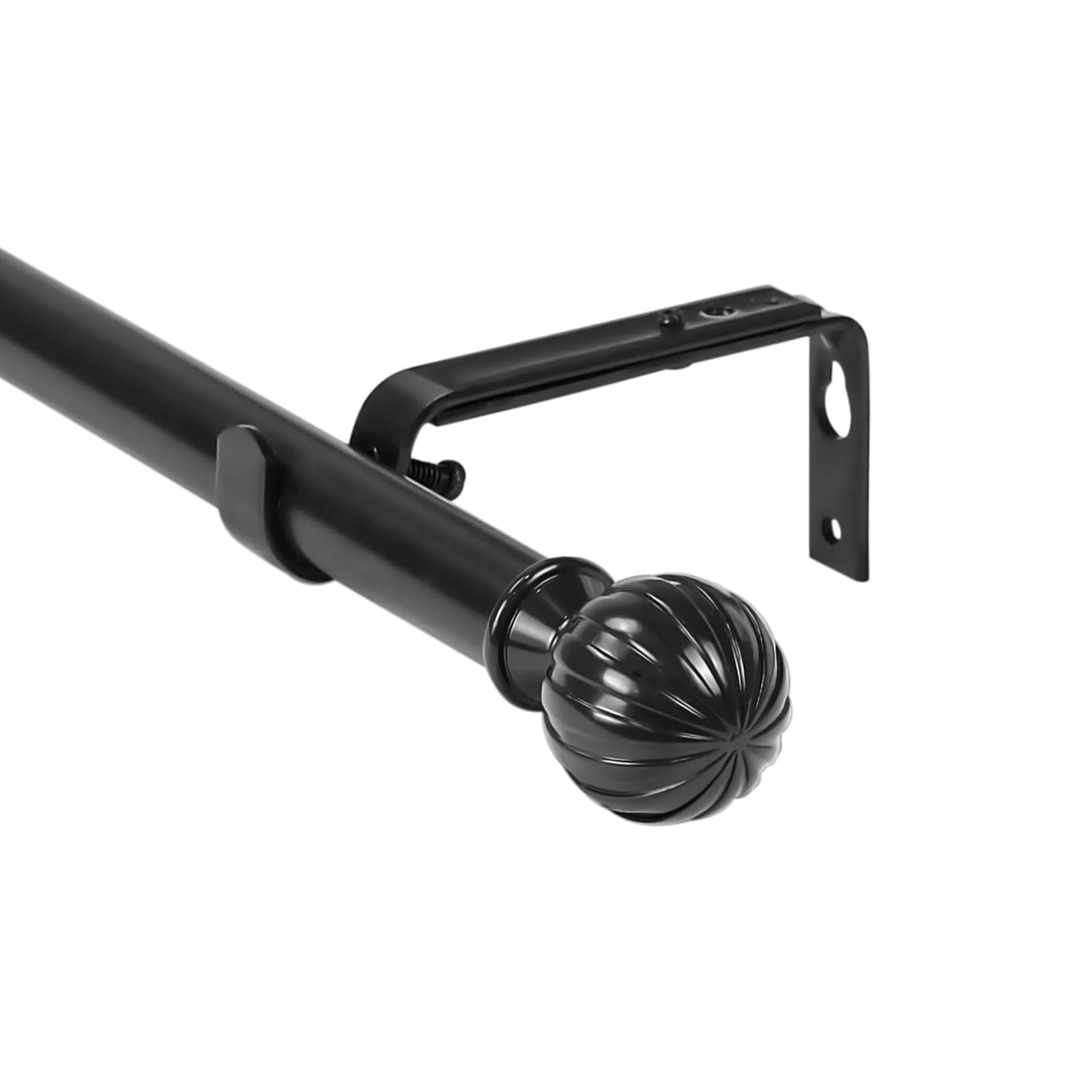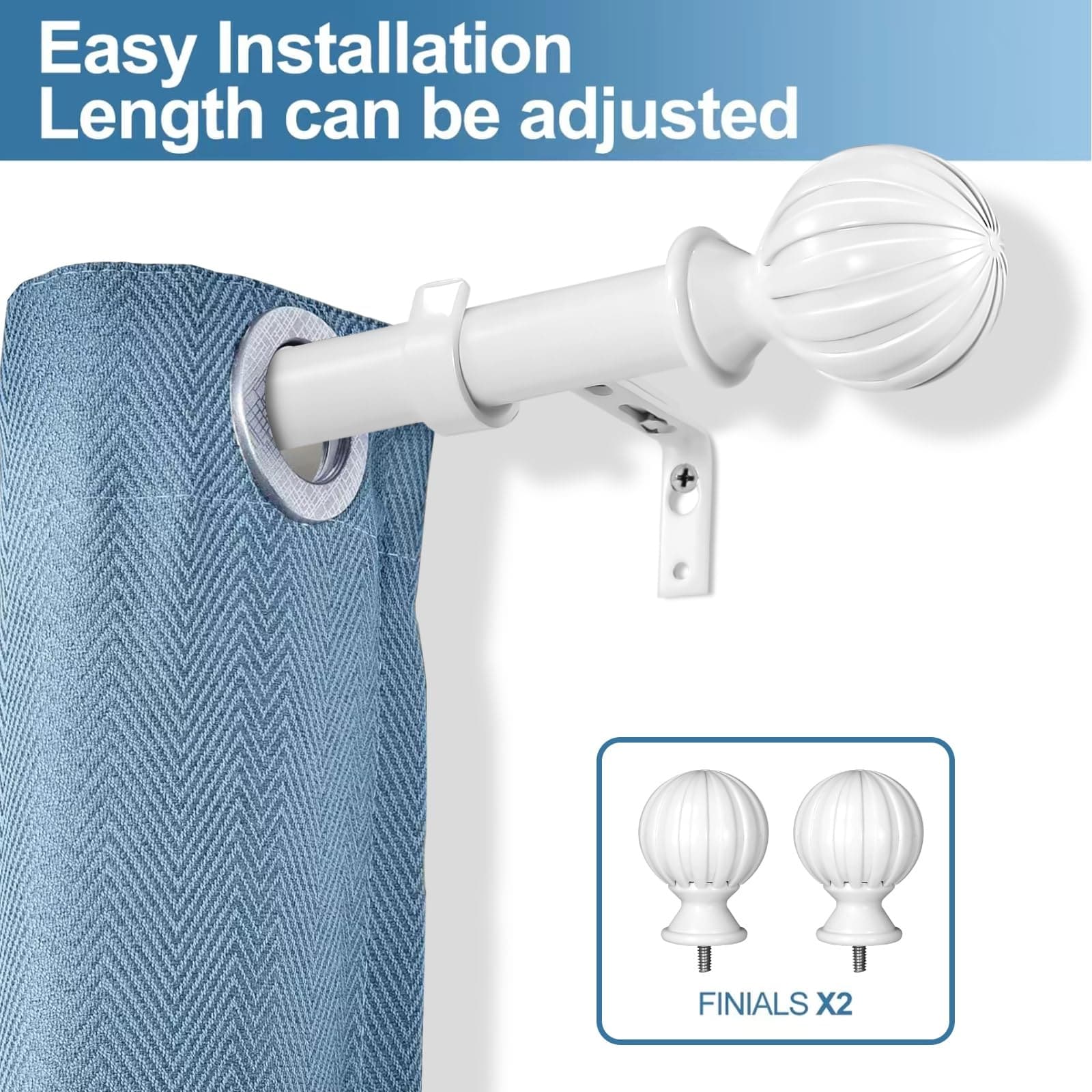 - The adjustable curtain rod measures 1' diameter and comes with round decorative finials.