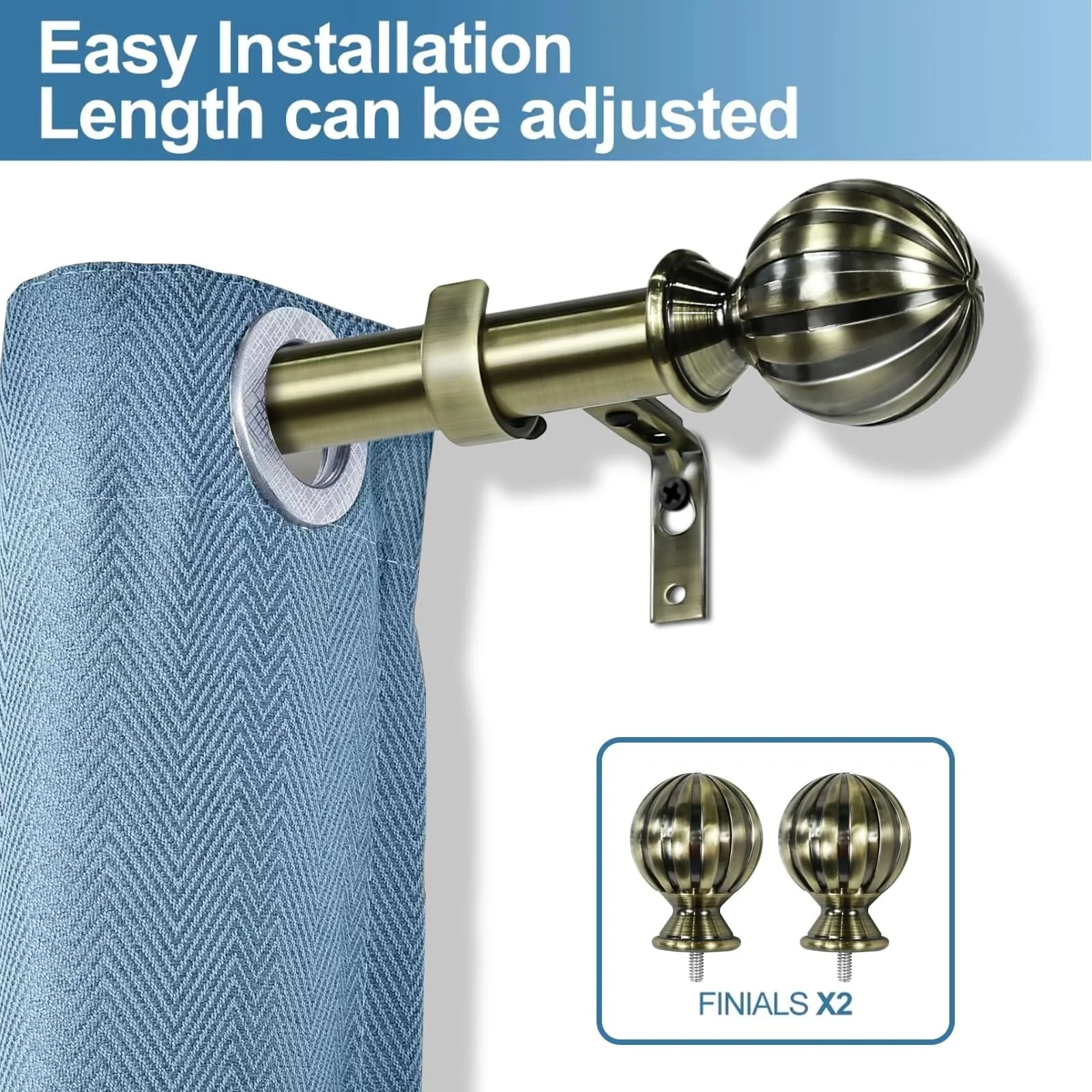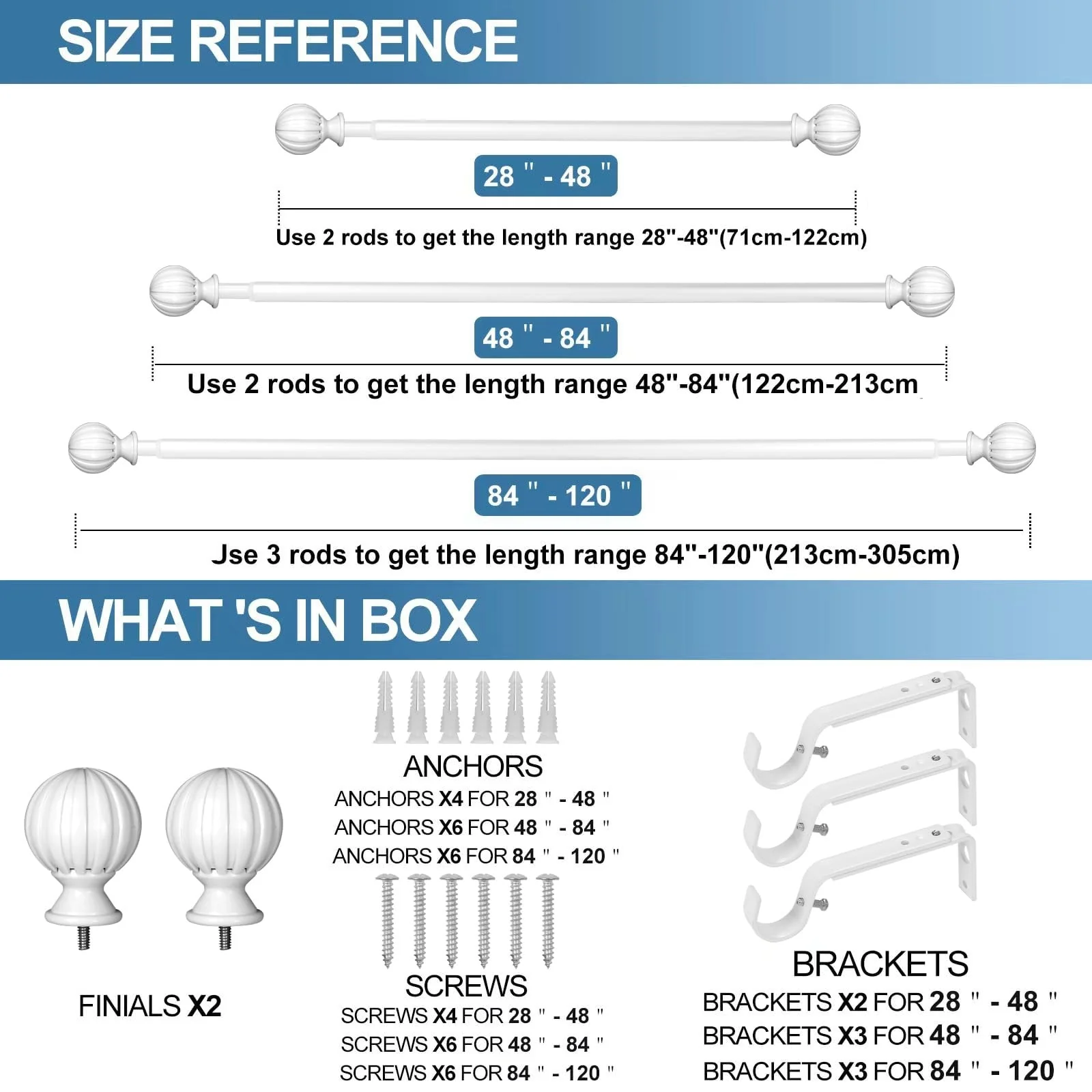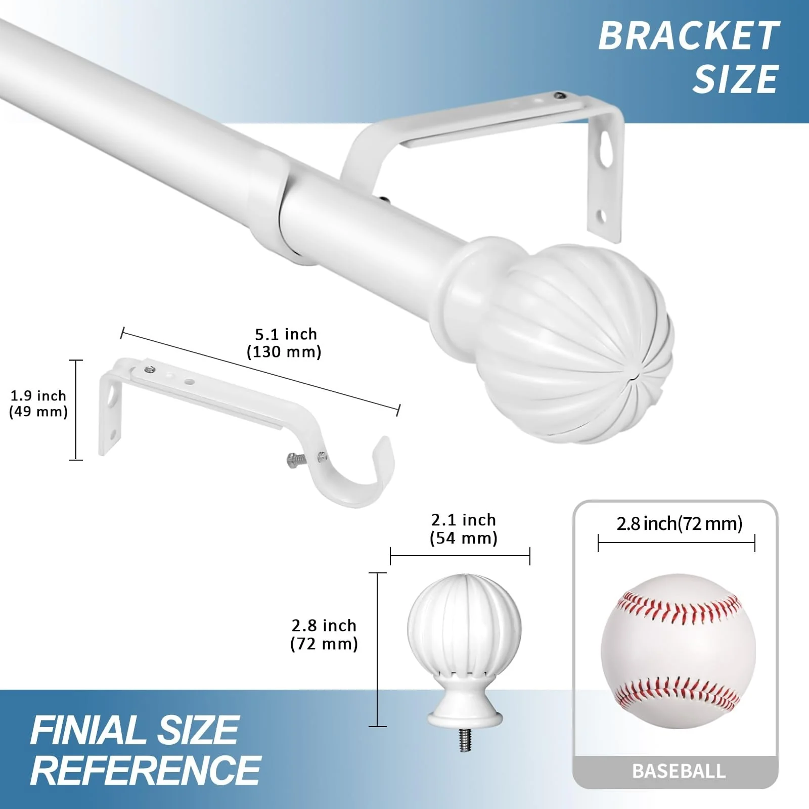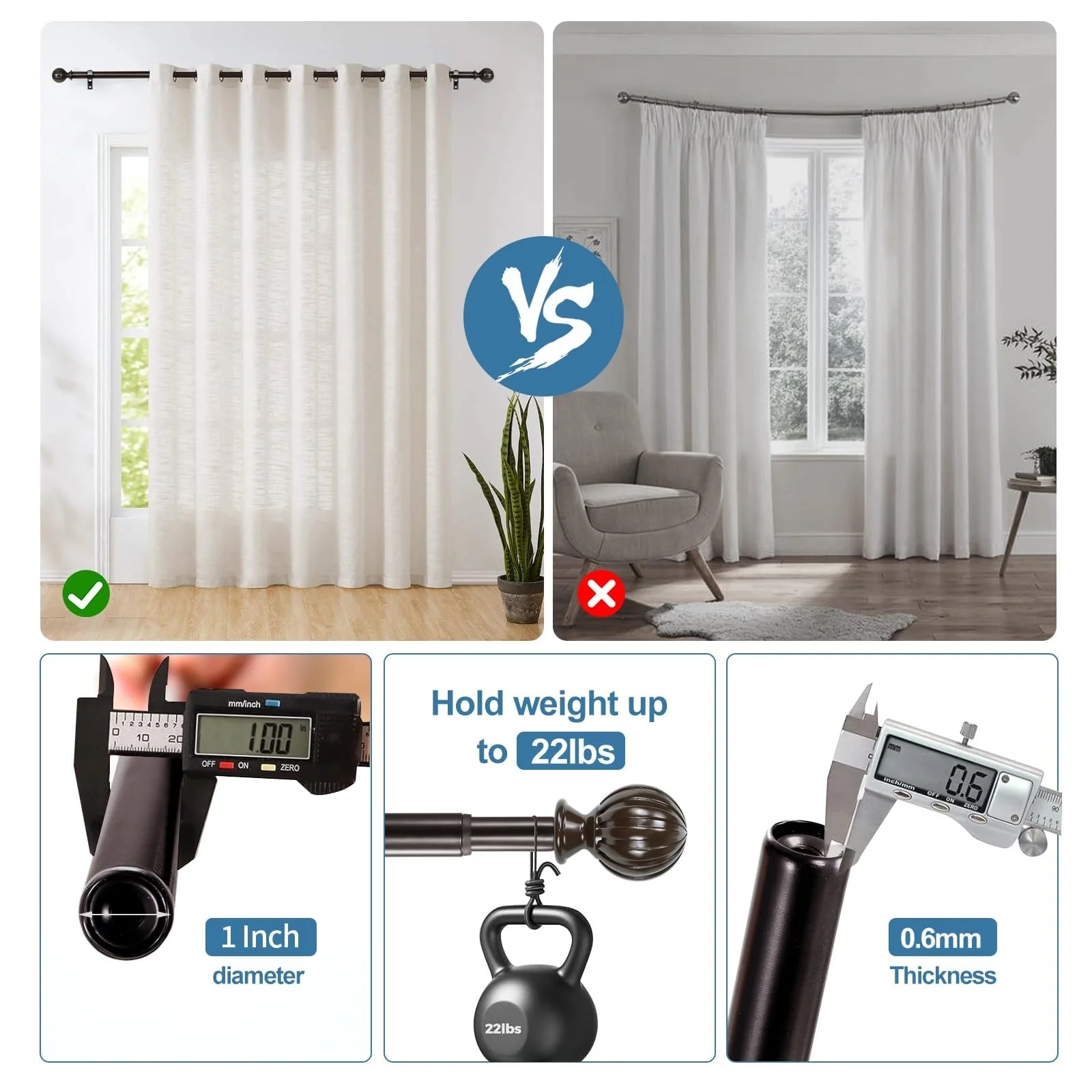 - The adjustable curtain rod measures 1' diameter and comes with round decorative finials.