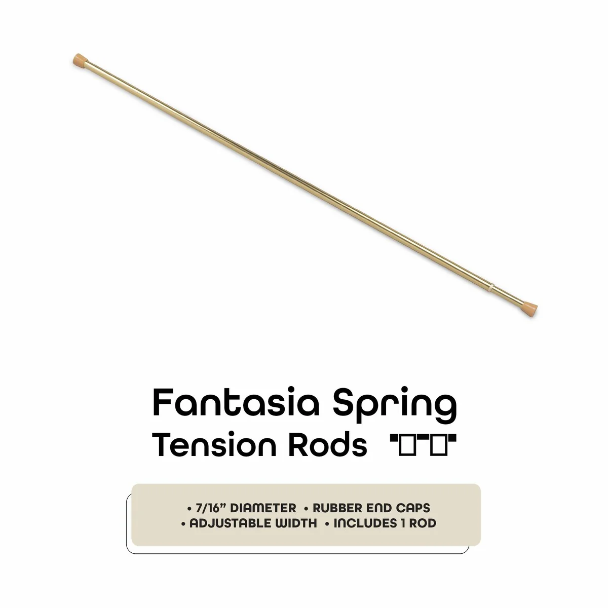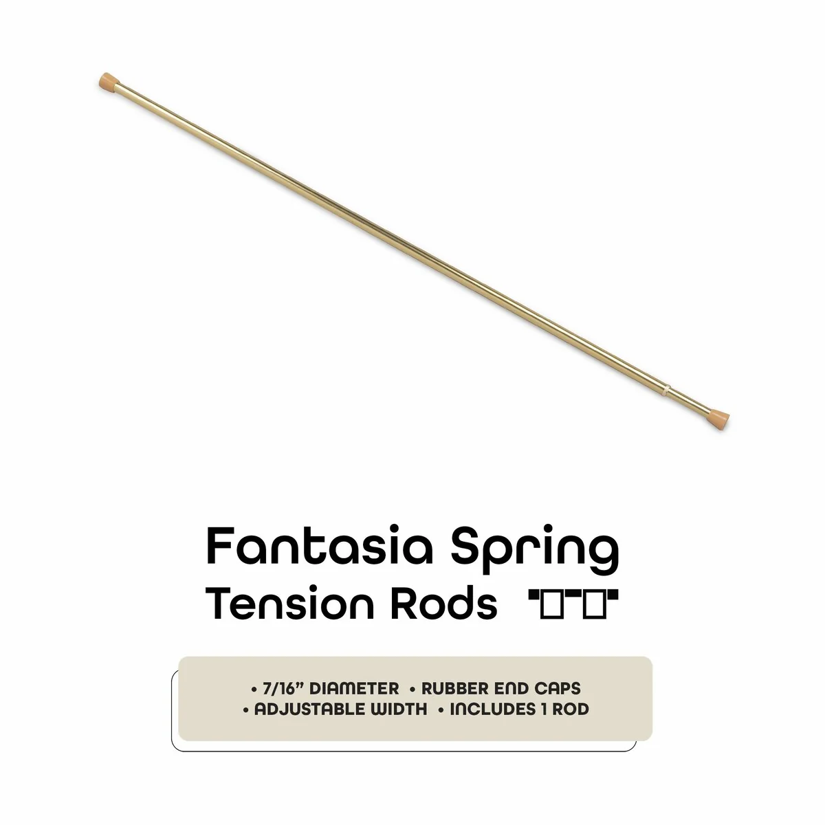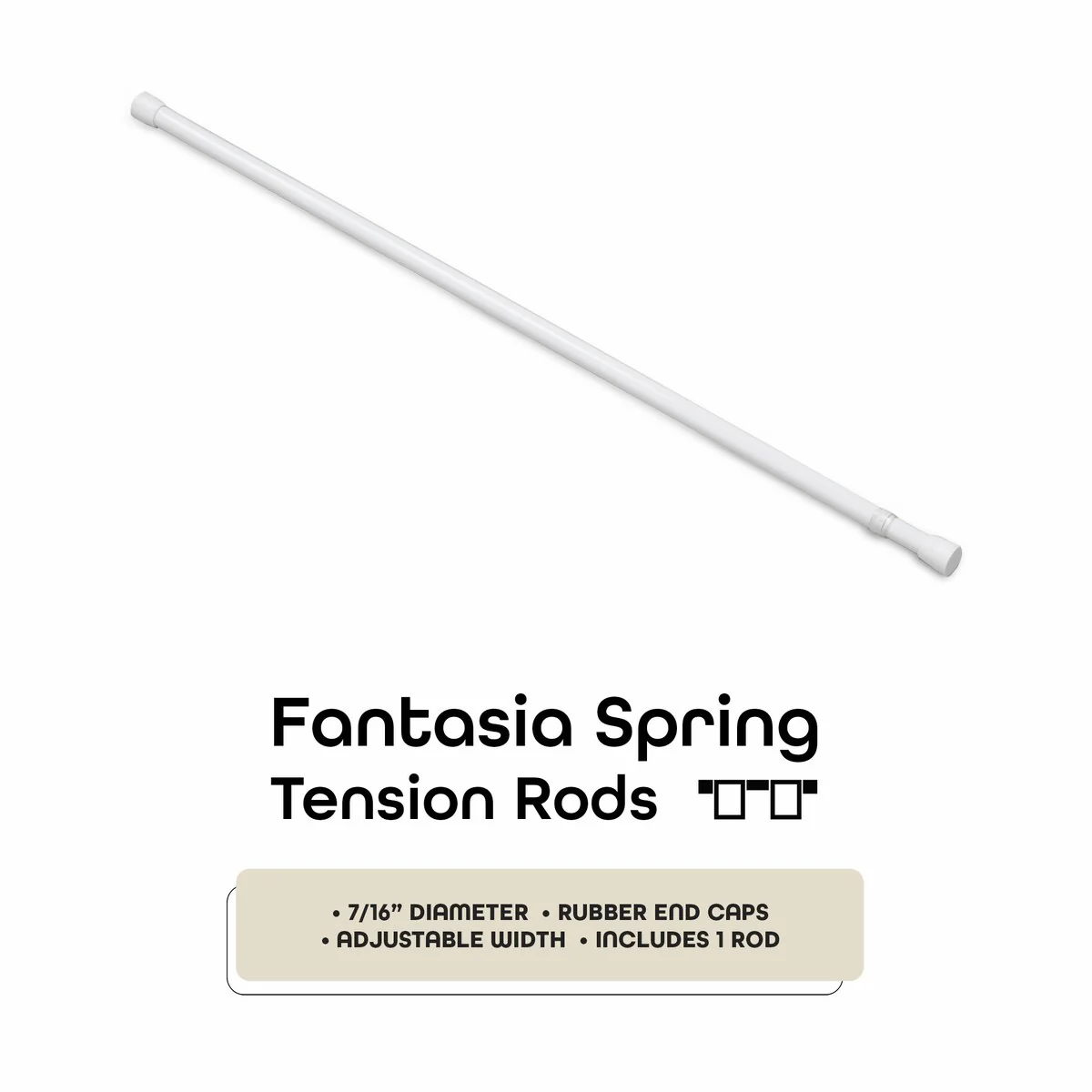 Fantasia Spring Tension rods are a perfect functional solution for hanging your curtains. Each round curtain rod has a 7/16-inch diameter and is adjustable. The rod's tension-mount mechanism allows for an easy tool-free installation with no damage to your walls. One metal rod with rubber endcaps is included. Easy to Clean! Just Dust or Wipe with a Damp Cloth.