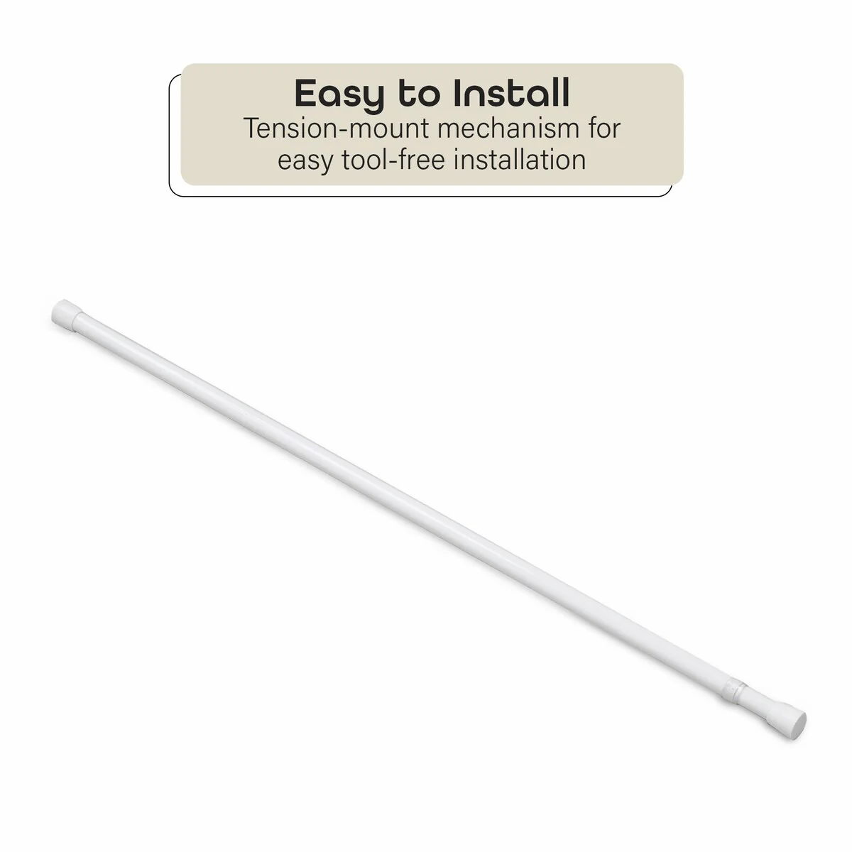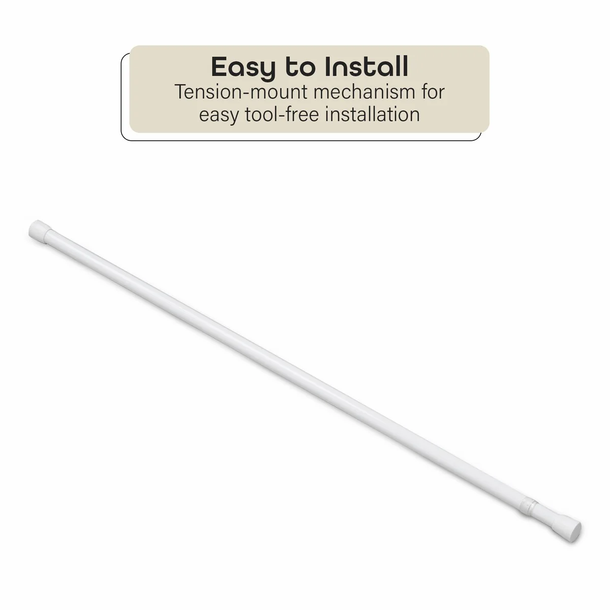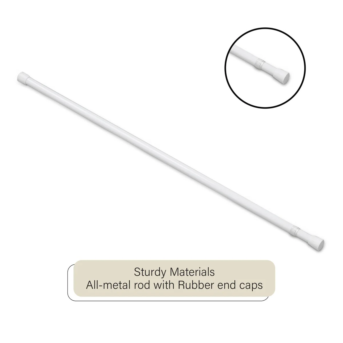 Fantasia Spring Tension rods are a perfect functional solution for hanging your curtains. Each round curtain rod has a 7/16-inch diameter and is adjustable. The rod's tension-mount mechanism allows for an easy tool-free installation with no damage to your walls. One metal rod with rubber endcaps is included. Easy to Clean! Just Dust or Wipe with a Damp Cloth.
