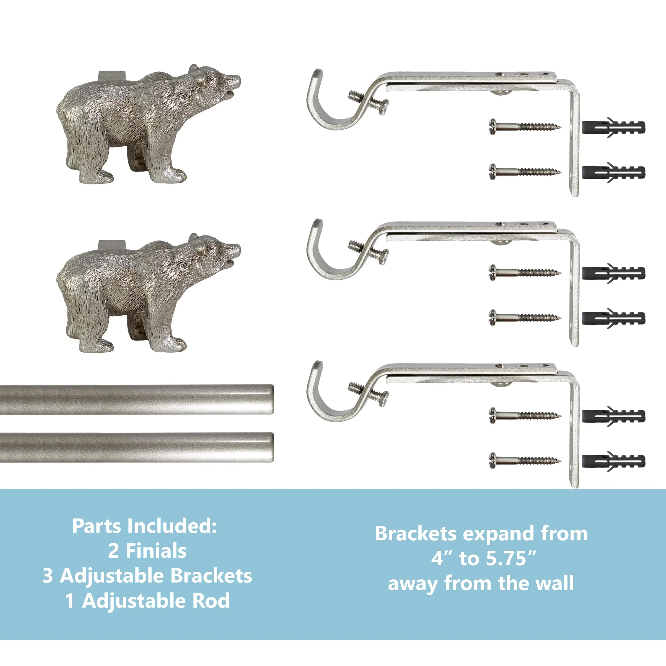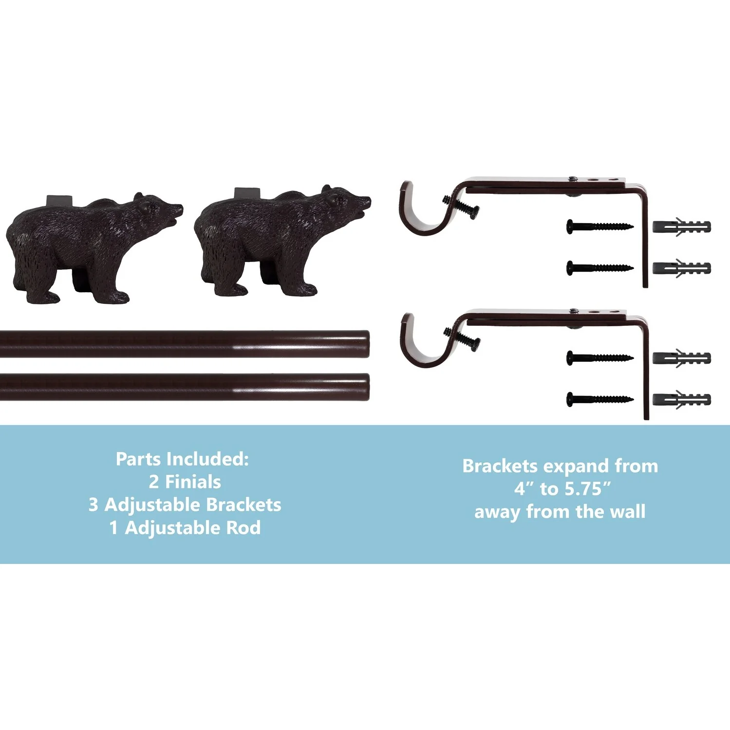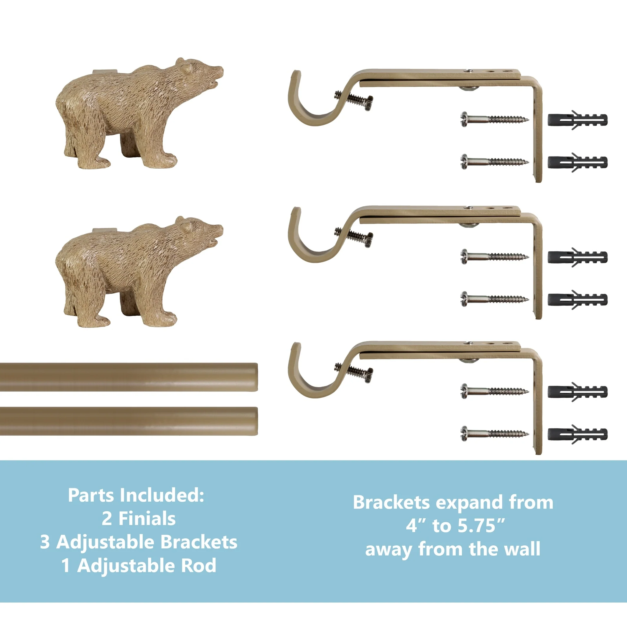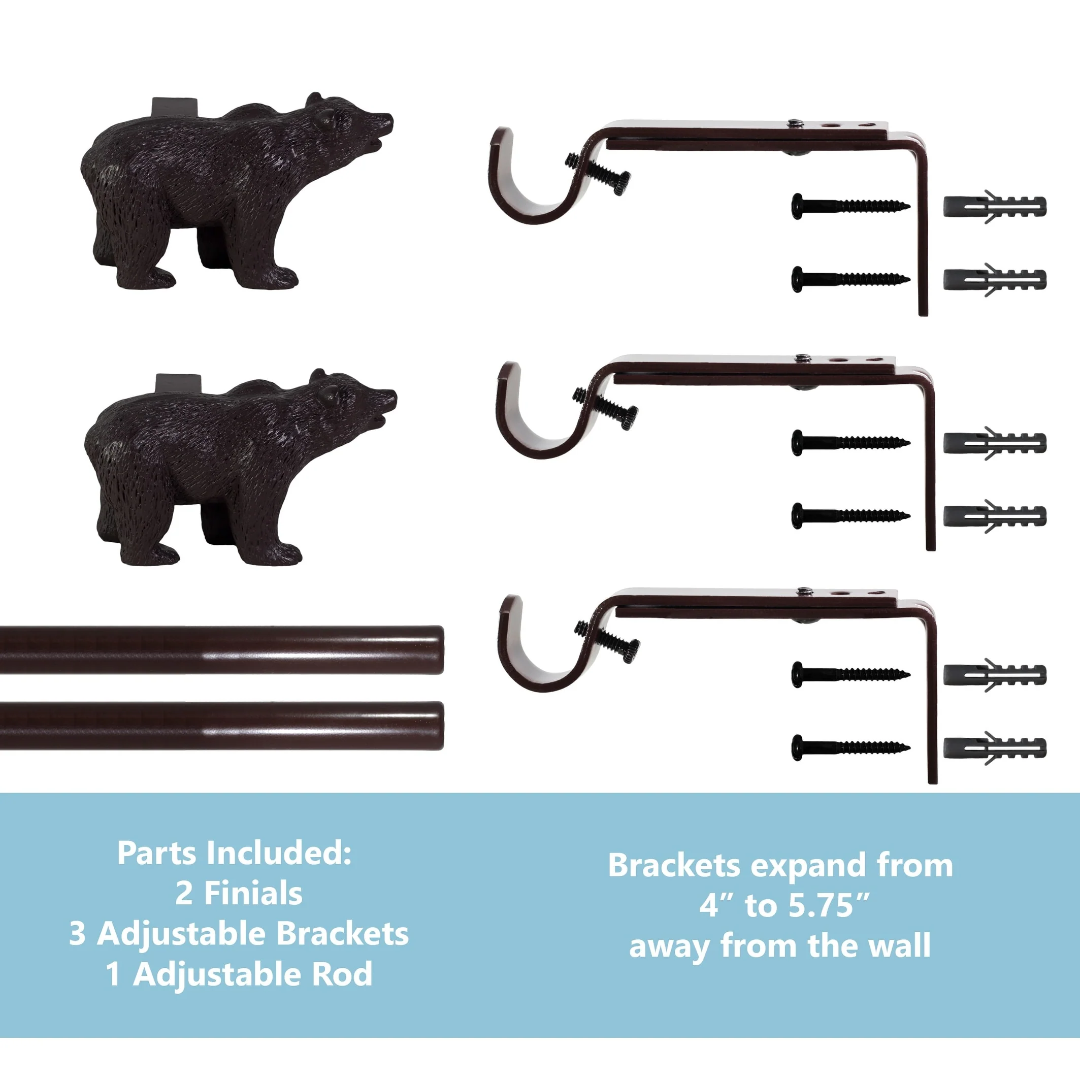 - [ DECORATIVE WINDOW TREATMENT ] Unique bear shaped finials make it easy to bring the spirit of a cozy cabin into any room. Ornament a window, accent an entryway, or even hang a drapery with ease!