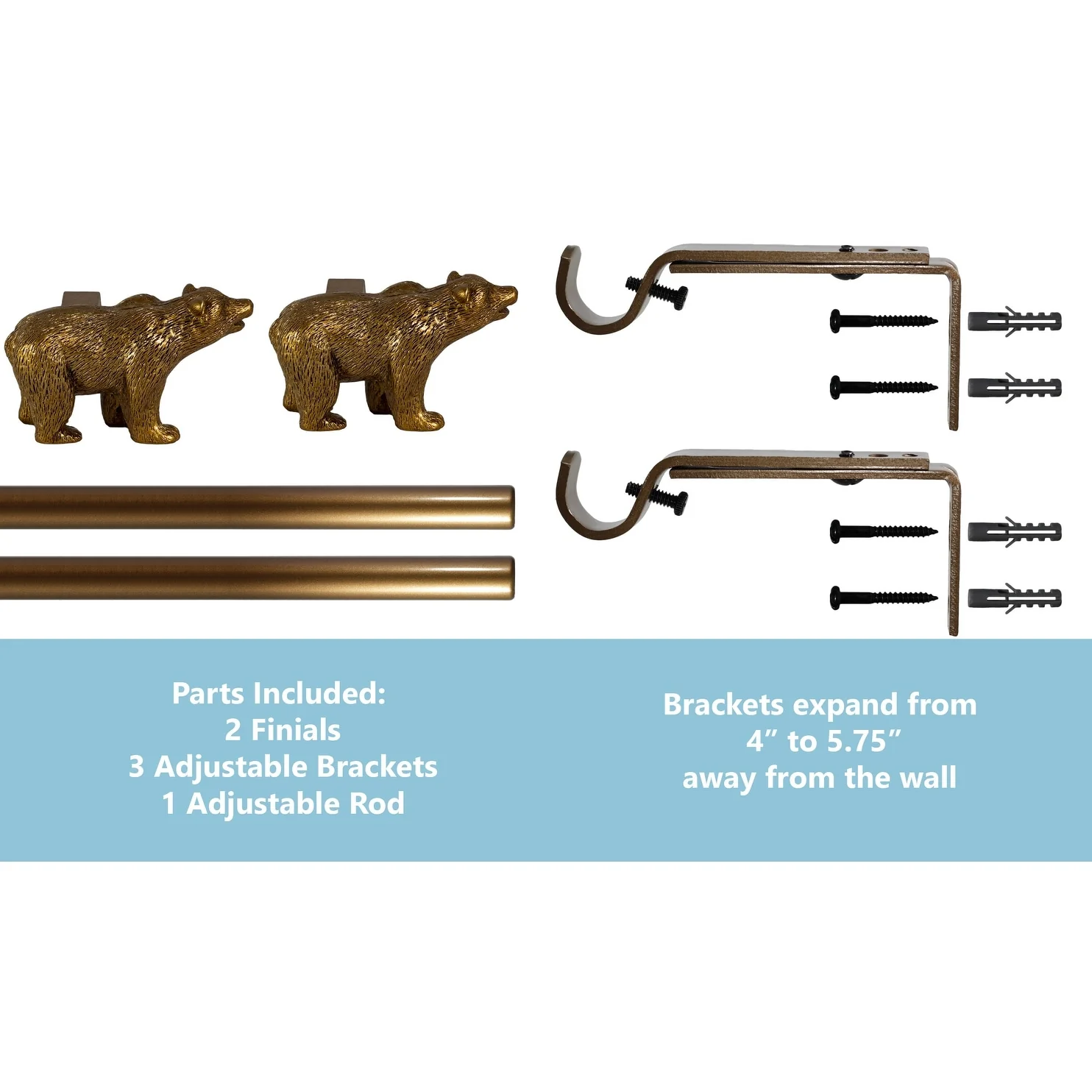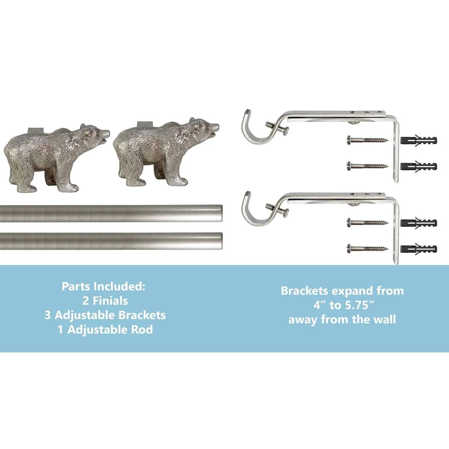 - [ EASY SETUP ] Mounts curtains, curtain rings, or panels easily to fit any occasion. Required mounting hardware included: two (2) brackets*, four (4) drywall anchors, and four (4) screws. (Rod, two (2) finials, and installation instructions are also included) *one additional center support bracket, extra screws and drywall anchors included for 48'-84' and 84'-120' size variations.