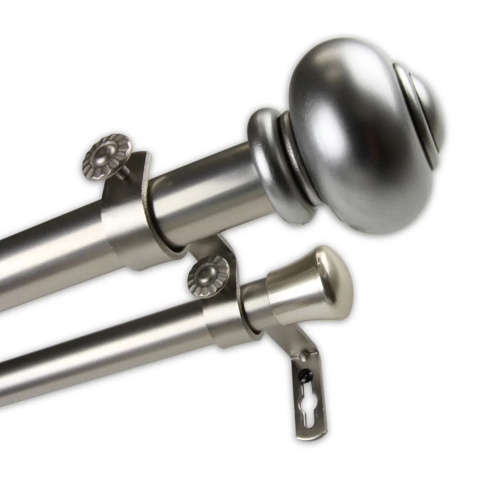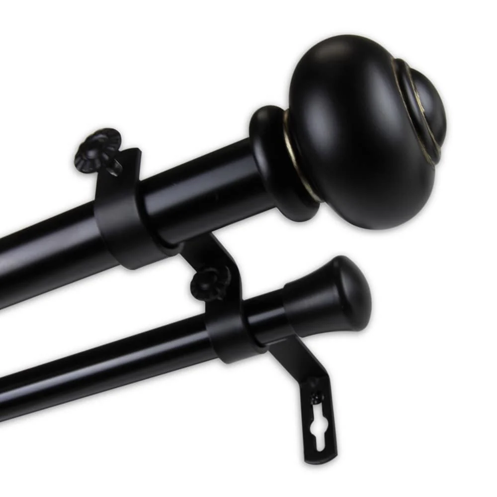 - Set includes: Two adjustable poles, mounting brackets, two end caps on back rod and two finials
