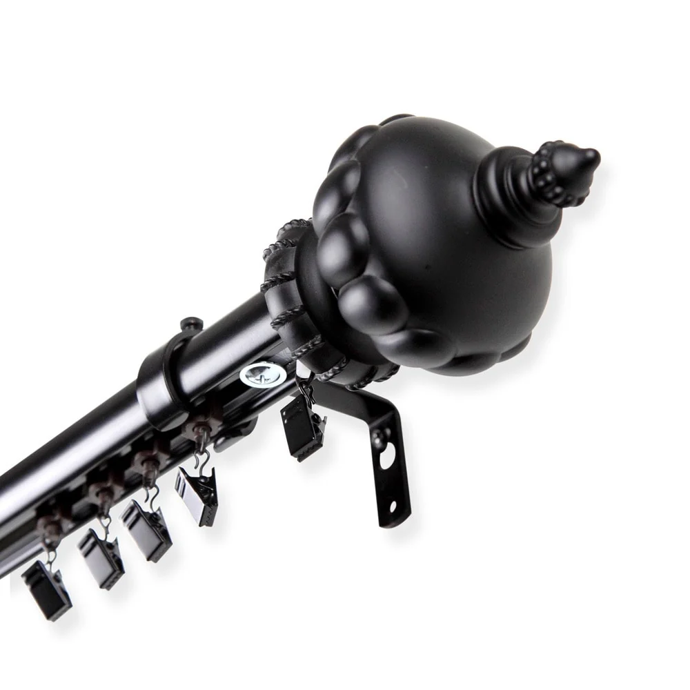 - Set includes: One (1) high quality cordless steel traverse rod, mounting brackets, sliders, and two (2) finials