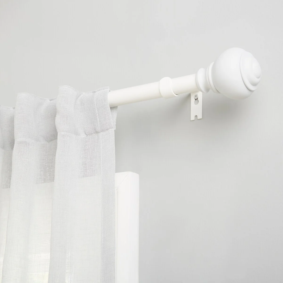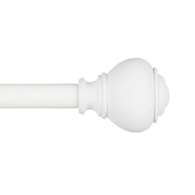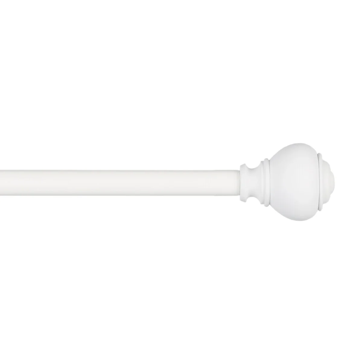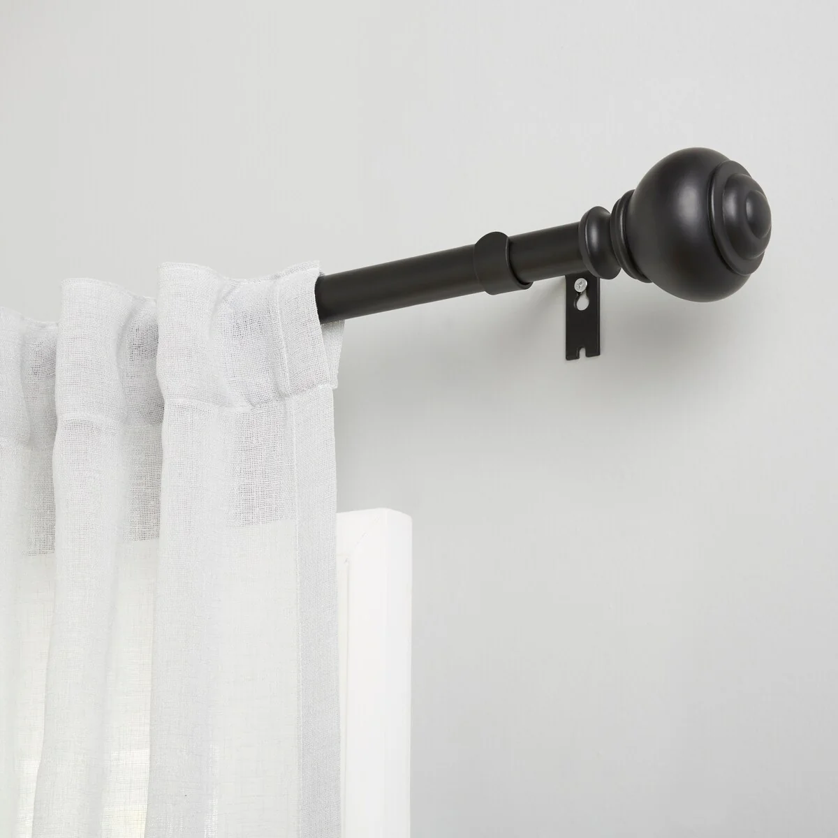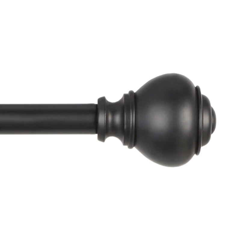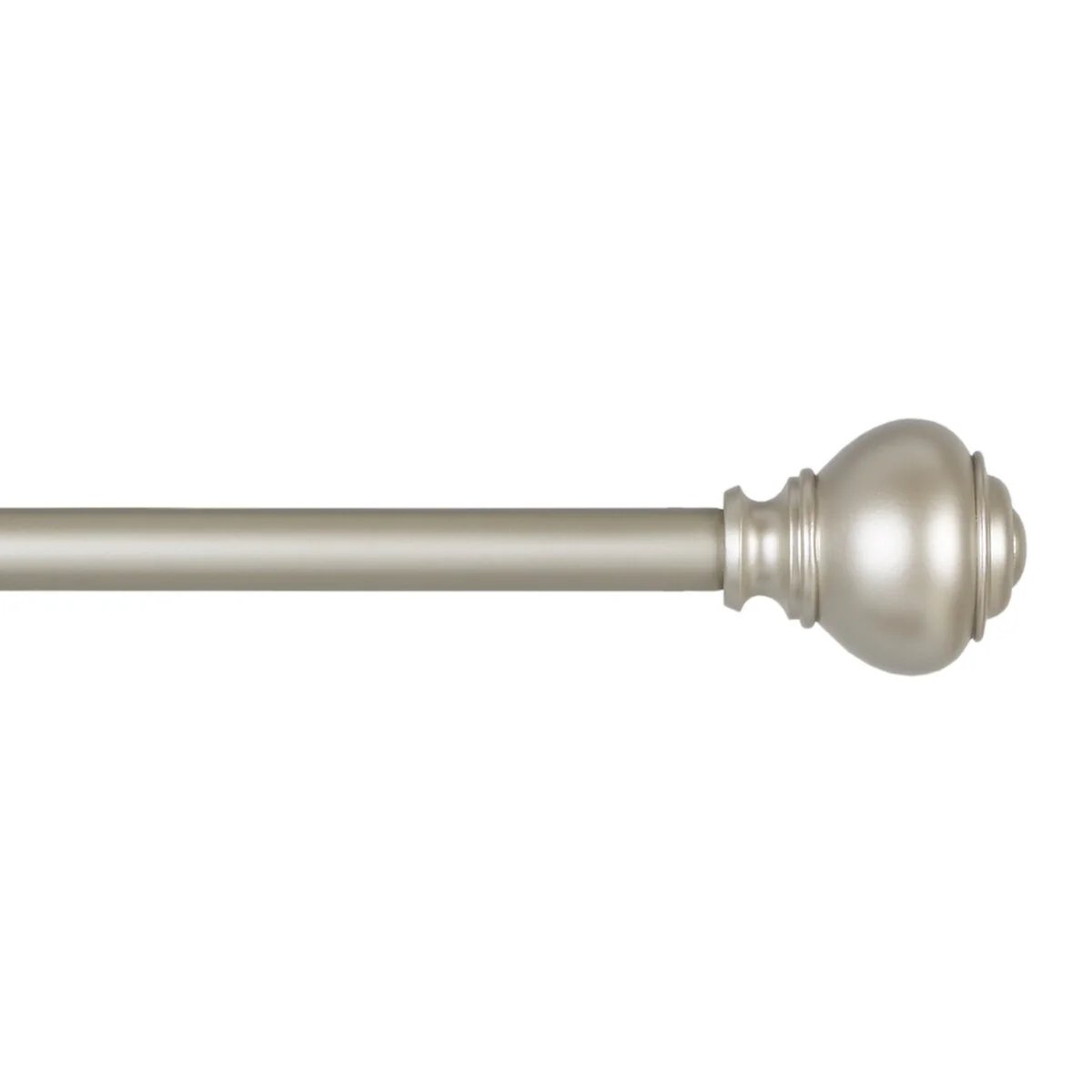 The Lauren Ralph Lauren Markel Window Curtain Rod and Finial Set offers a classic addition to your window decor. The 1' diameter adjustable iron rod in a matte nickel finish accommodates most window sizes. This durable rod will support most curtain panels, from airy sheers to heavier blackout curtain panels with various tops. The 3' diameter round resin decorative finials will keep your window curtain panels secure on the rod while providing an upscale finishing accent.