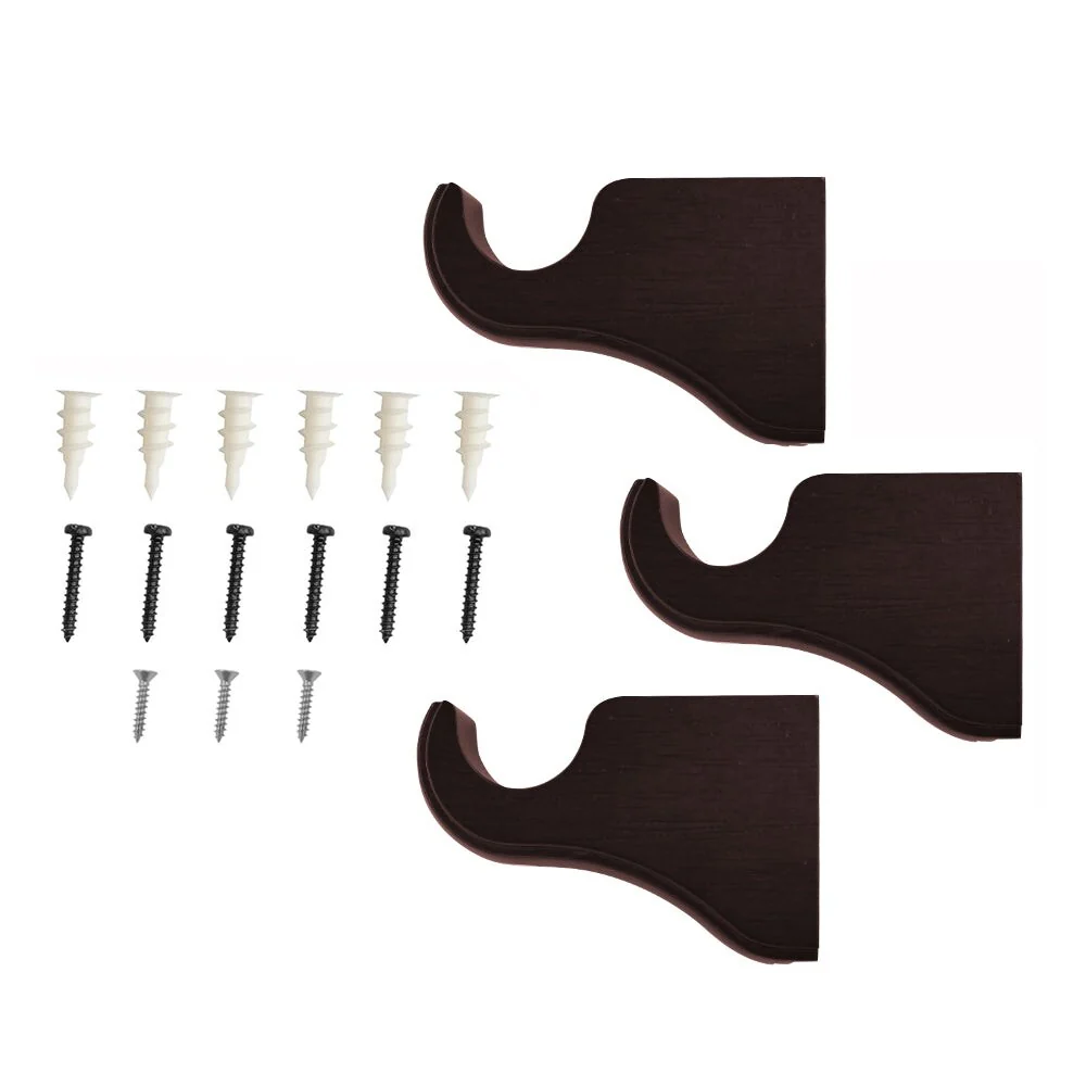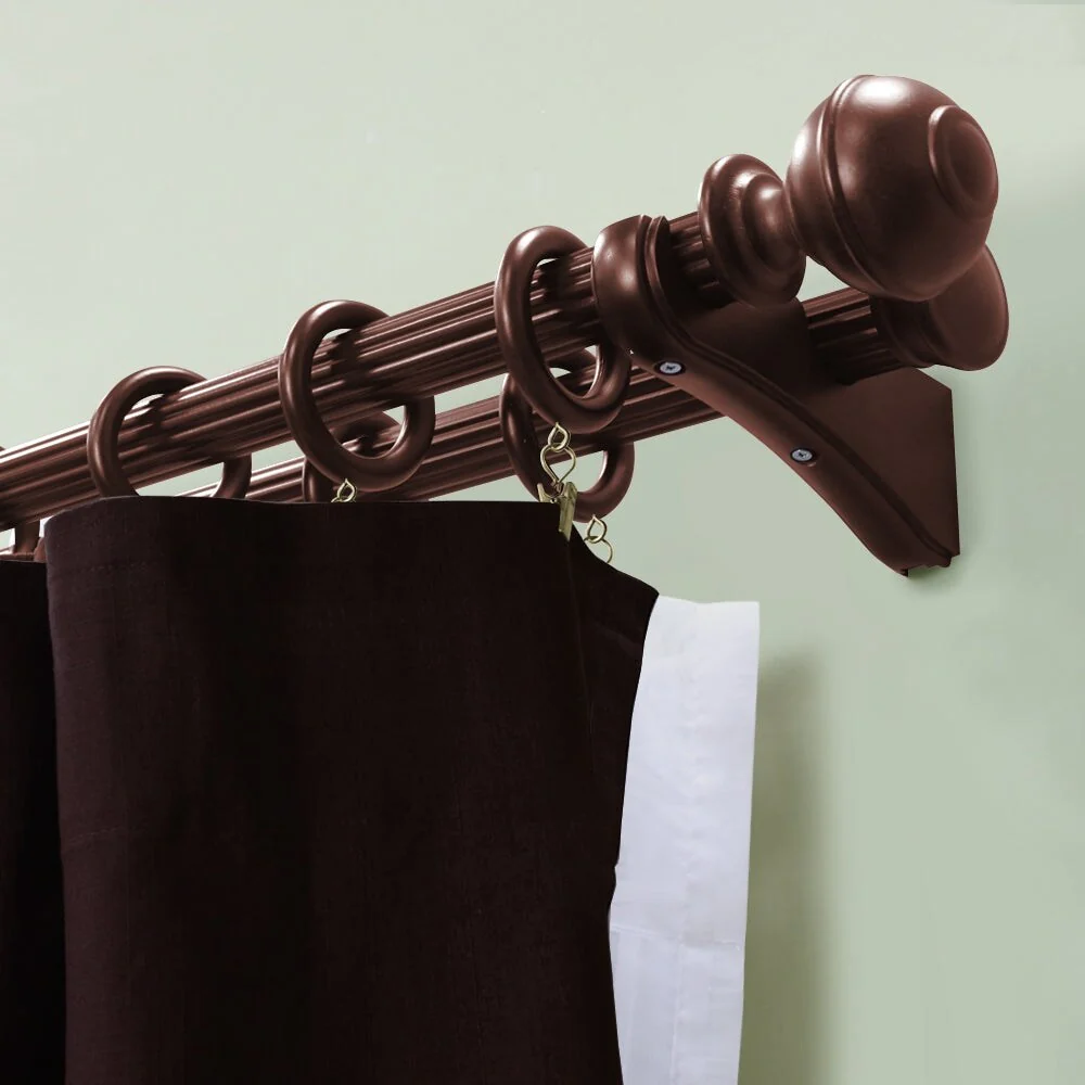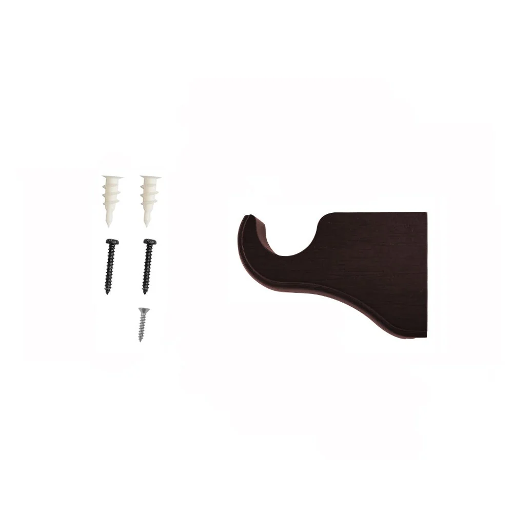 Lumi Home Furnishings Single Curtain Rod Bracket for 1-3/8' dia. wood rod decorate your window with the inherent beauty of natural wood. The natural beauty of wood brackets add style to any décor. The brackets screw into a wall to securely attach a wood pole to the surface for hanging window treatments. Available colors in: White, Heritage Oak, Ant. Mahogany. Single Curtain Rod Bracket projection 4.37 in.; Double Curtain Rod Bracket projection 7.2 in. Number of brackets required for each rod length. 4FT = 2 Brackets; 6FT & 8FT = 3 Brackets for supporting at joint