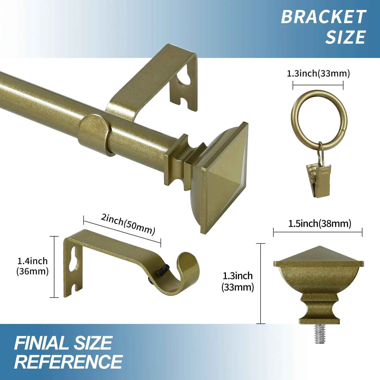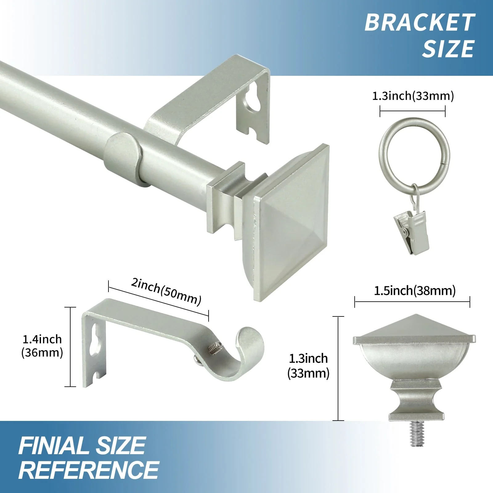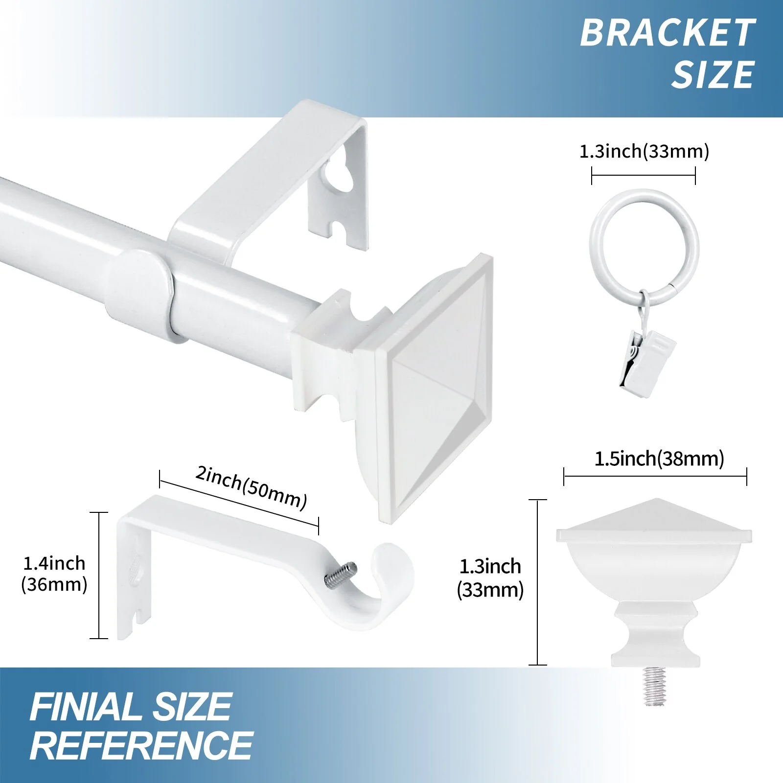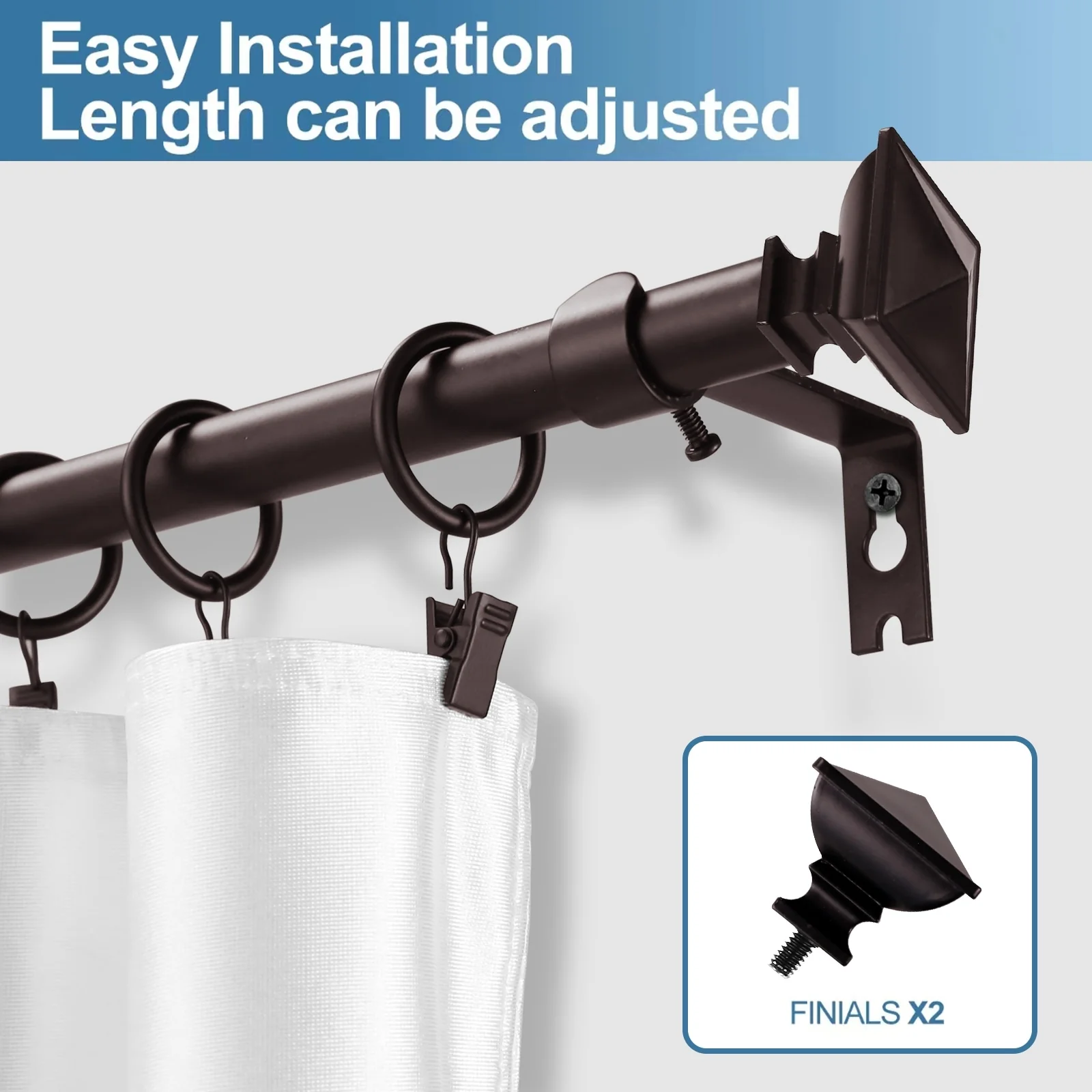- EASY TO SET UP: Your adjustable curtain rod comes complete with everything you need to get set up quickly including 2 cast metal finials, 2 brackets for 28'-48' Rod, 3 wall-mounted curtain rod brackets for 48' to 84' and 84' to 120' Rod, screws, drywall anchors and easy to follow installation instructions