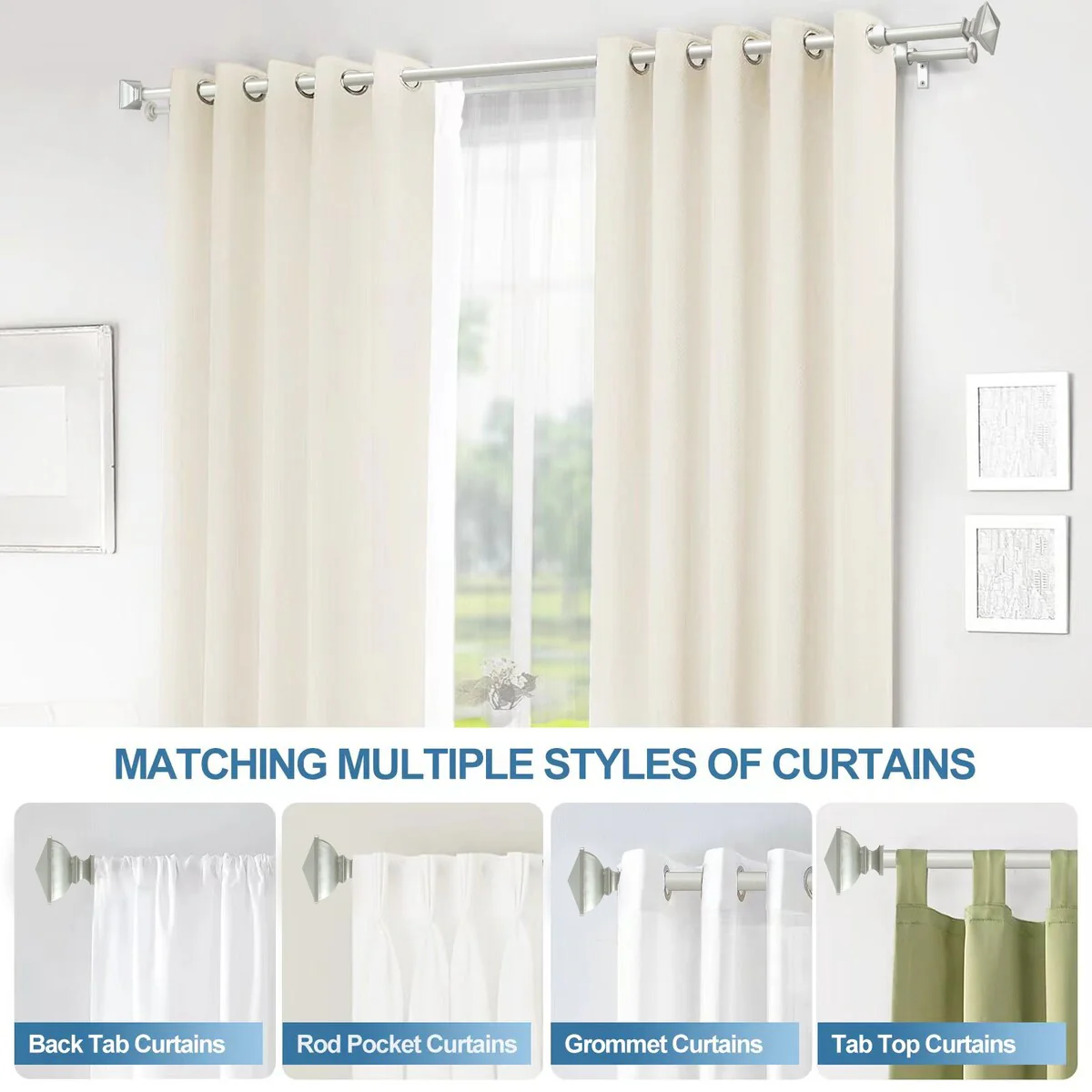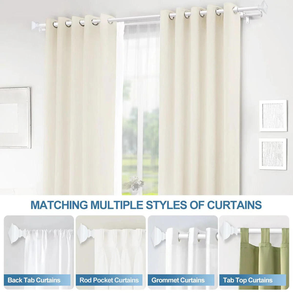 - ADJUSTABLE CURTAIN ROD: Double Curtain Rod features 2 telescopic drapery rods that extend to fit a variety of sized windows and supports light to medium weight curtains