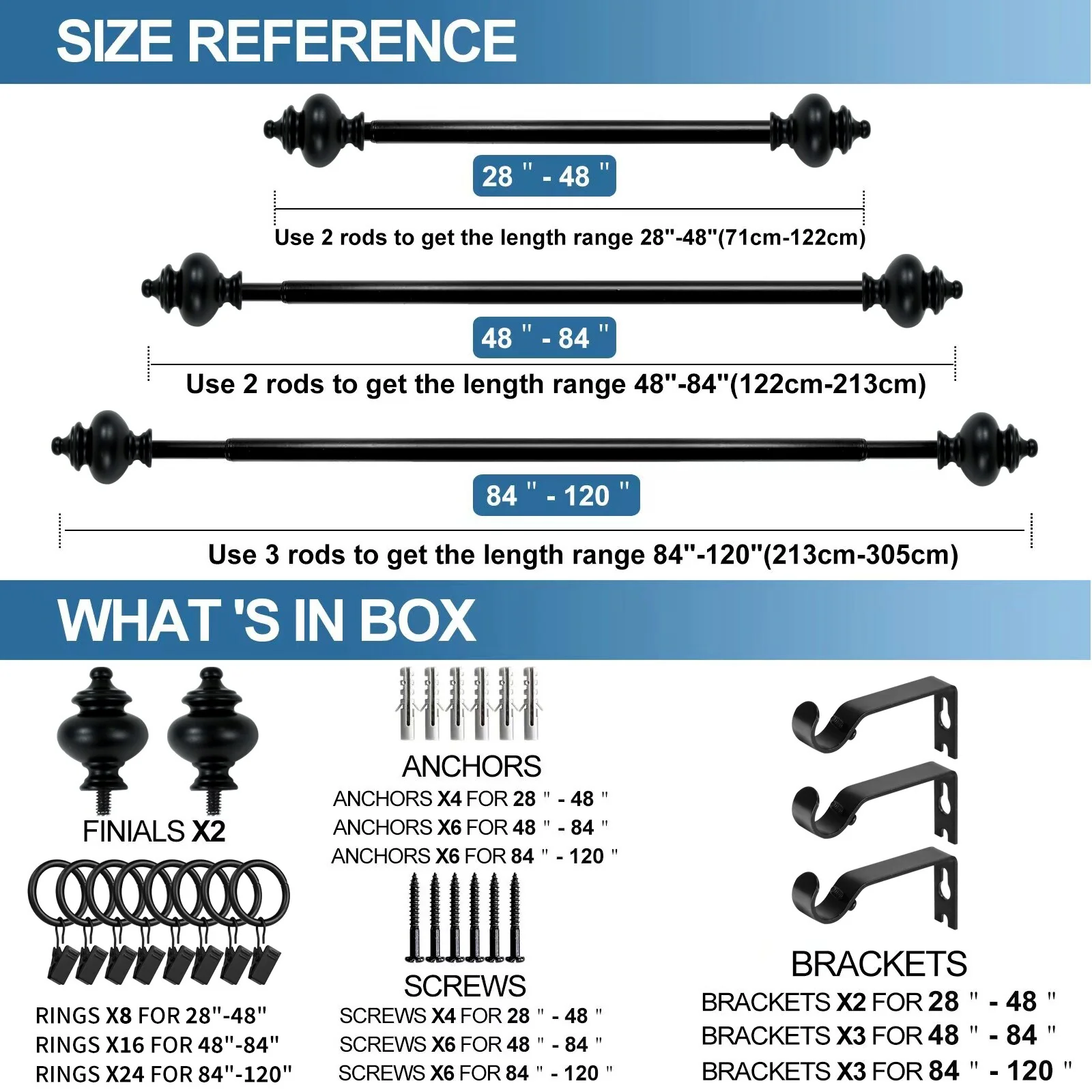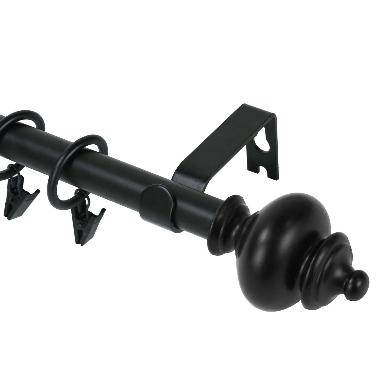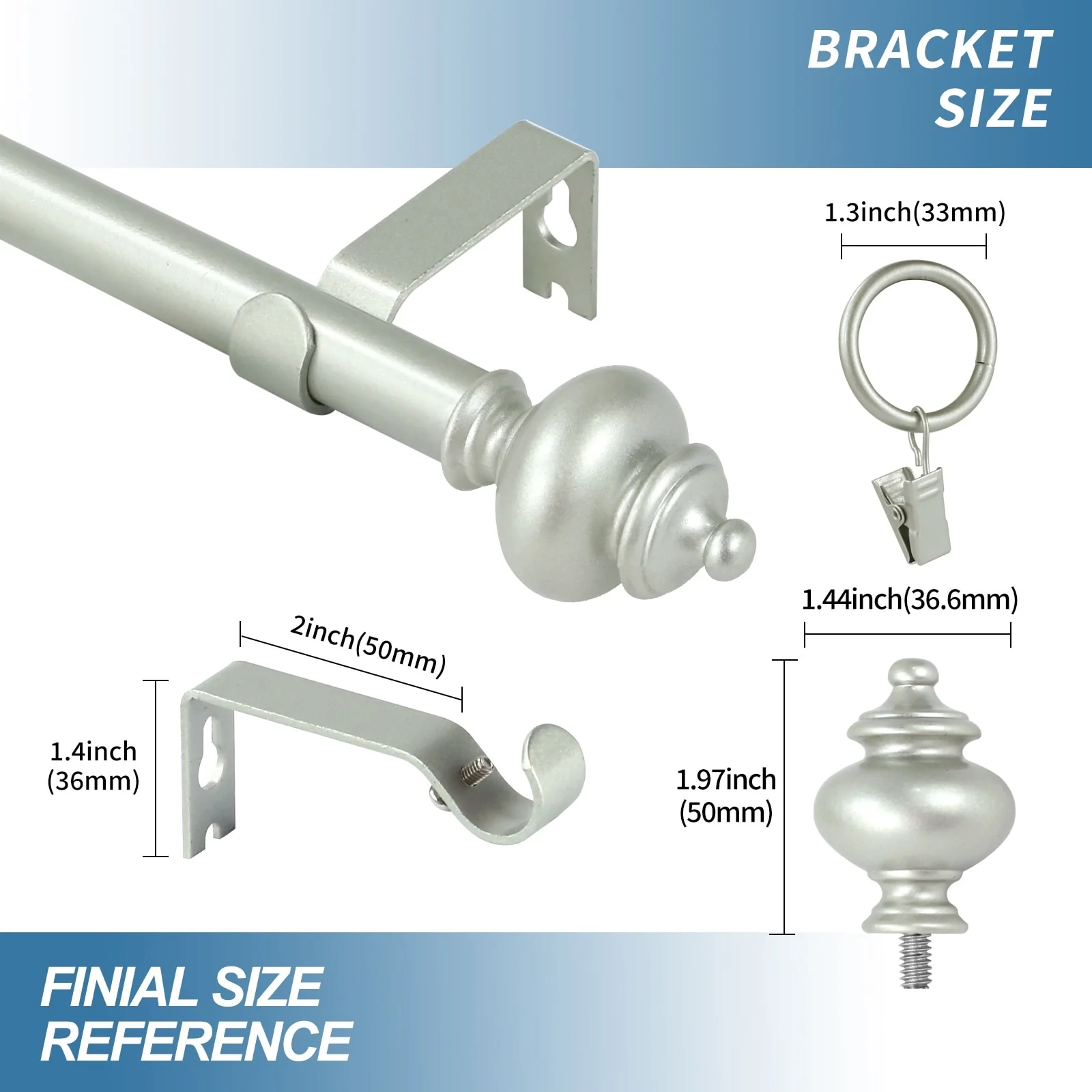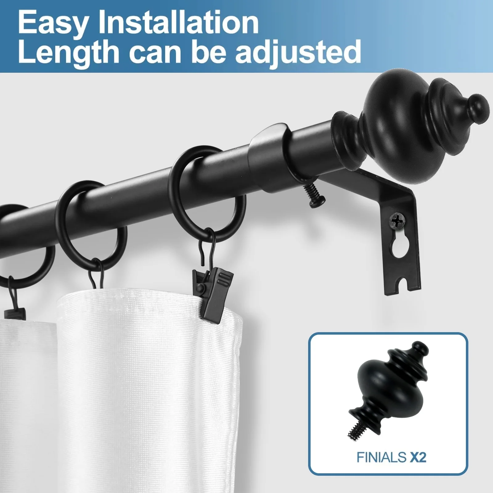 Elevate the look of your windows with this Modern Window Drapery Curtain Rod Set. Crafted with quality materials, this adjustable curtain rod set comes with two finials and multiple rings to fit your window size. The mounting brackets and clips are included for easy installation. Choose from three different length options to fit your needs.