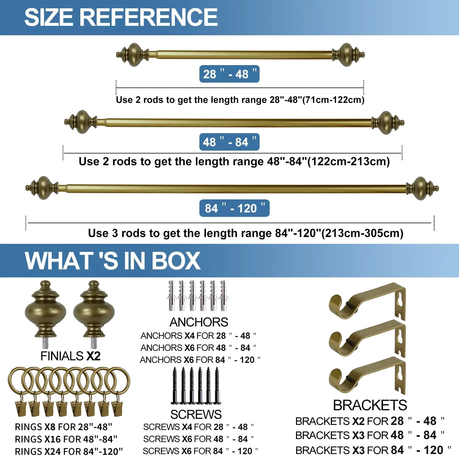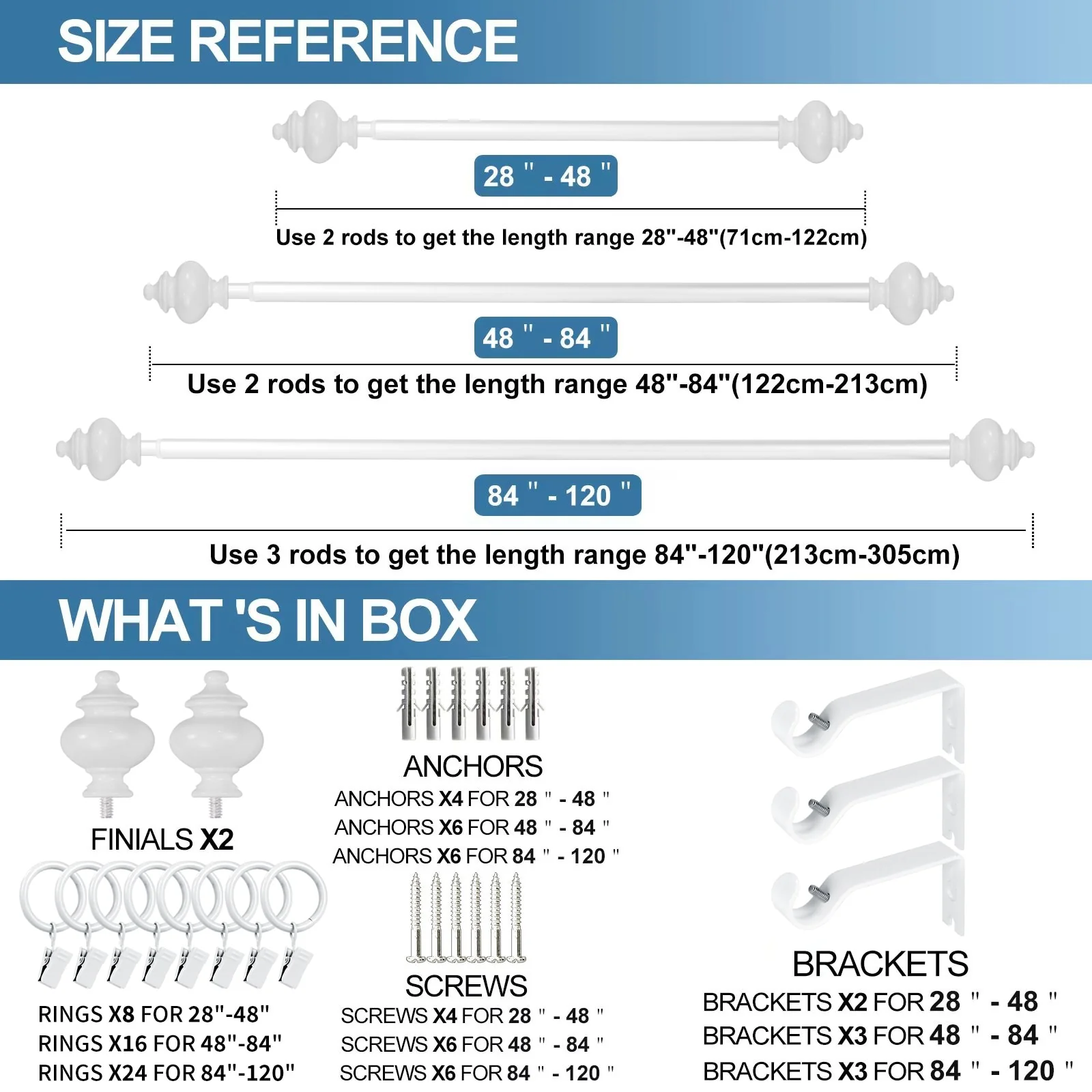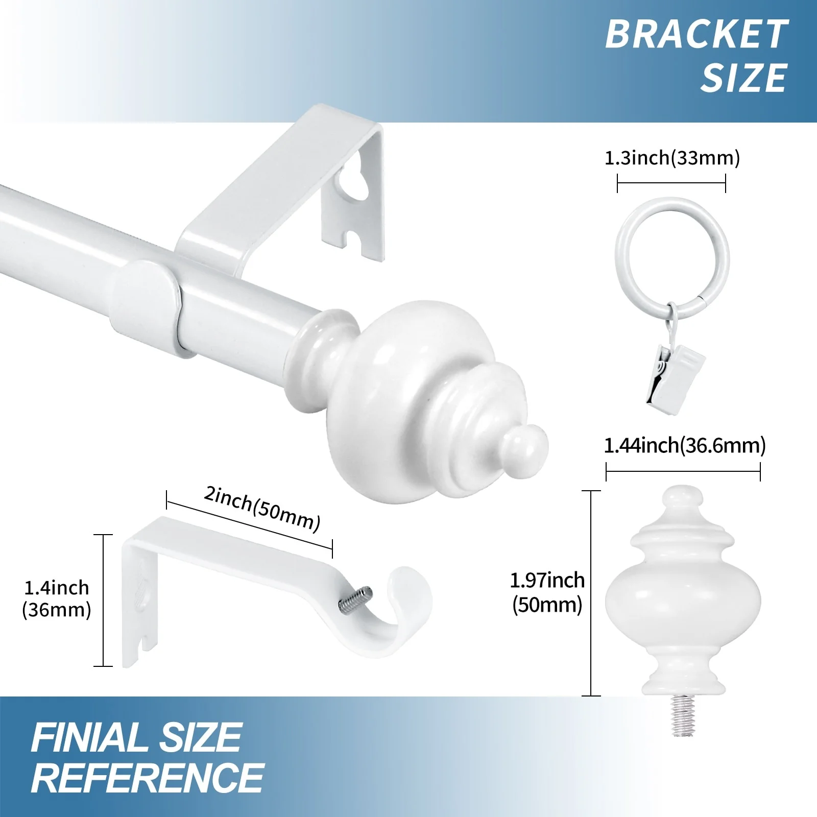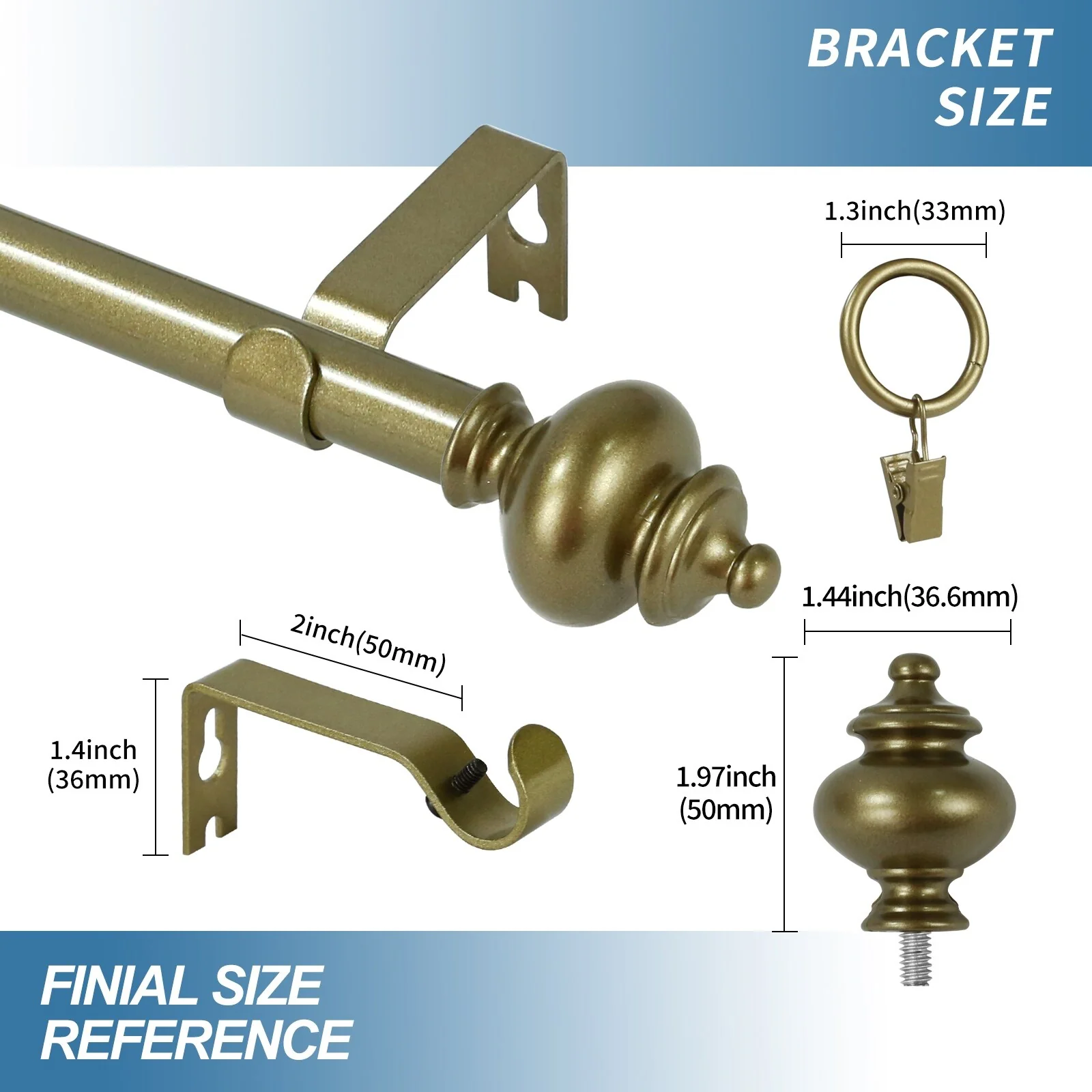 Elevate the look of your windows with this Modern Window Drapery Curtain Rod Set. Crafted with quality materials, this adjustable curtain rod set comes with two finials and multiple rings to fit your window size. The mounting brackets and clips are included for easy installation. Choose from three different length options to fit your needs.