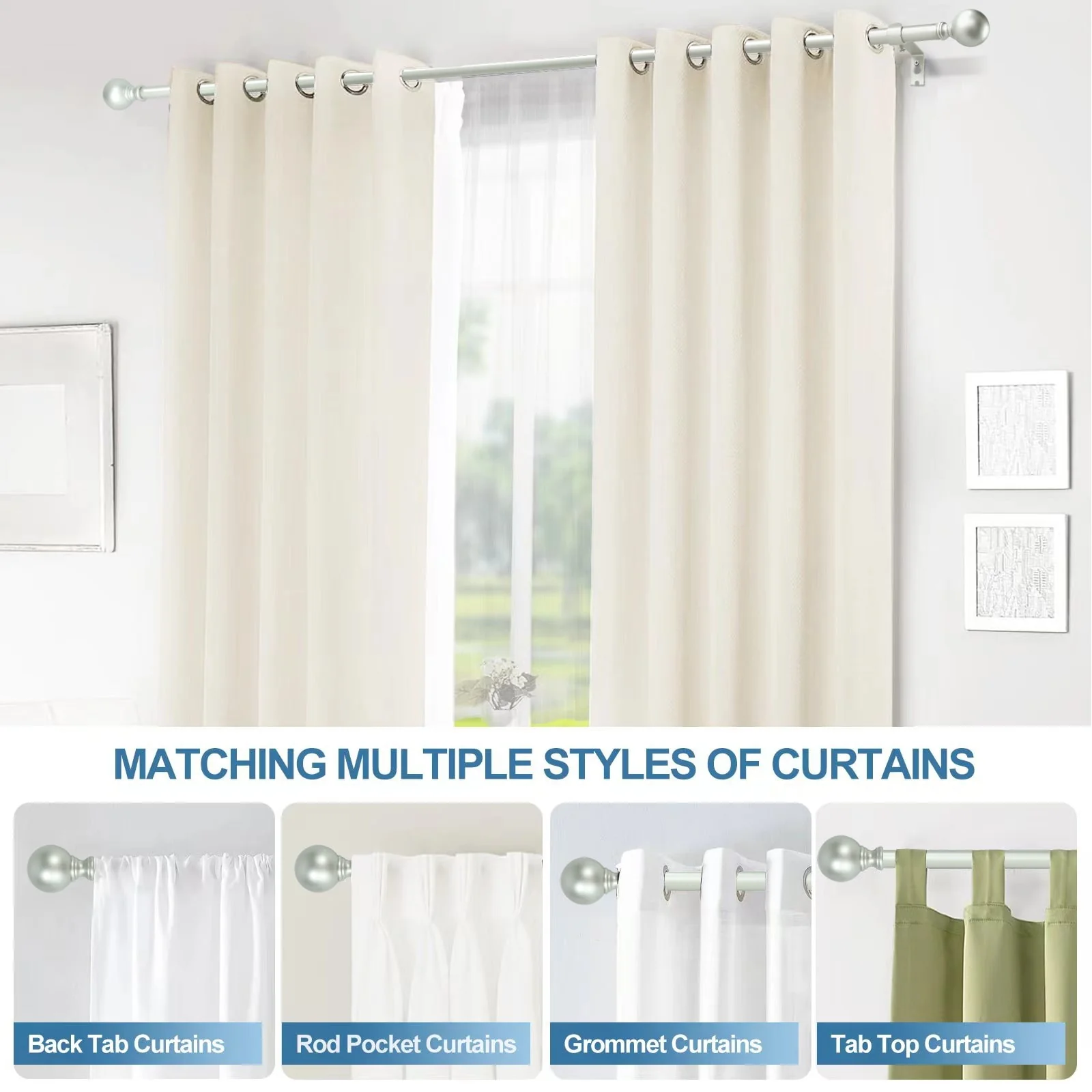 - 1 Adjustable Curtain Rods Included