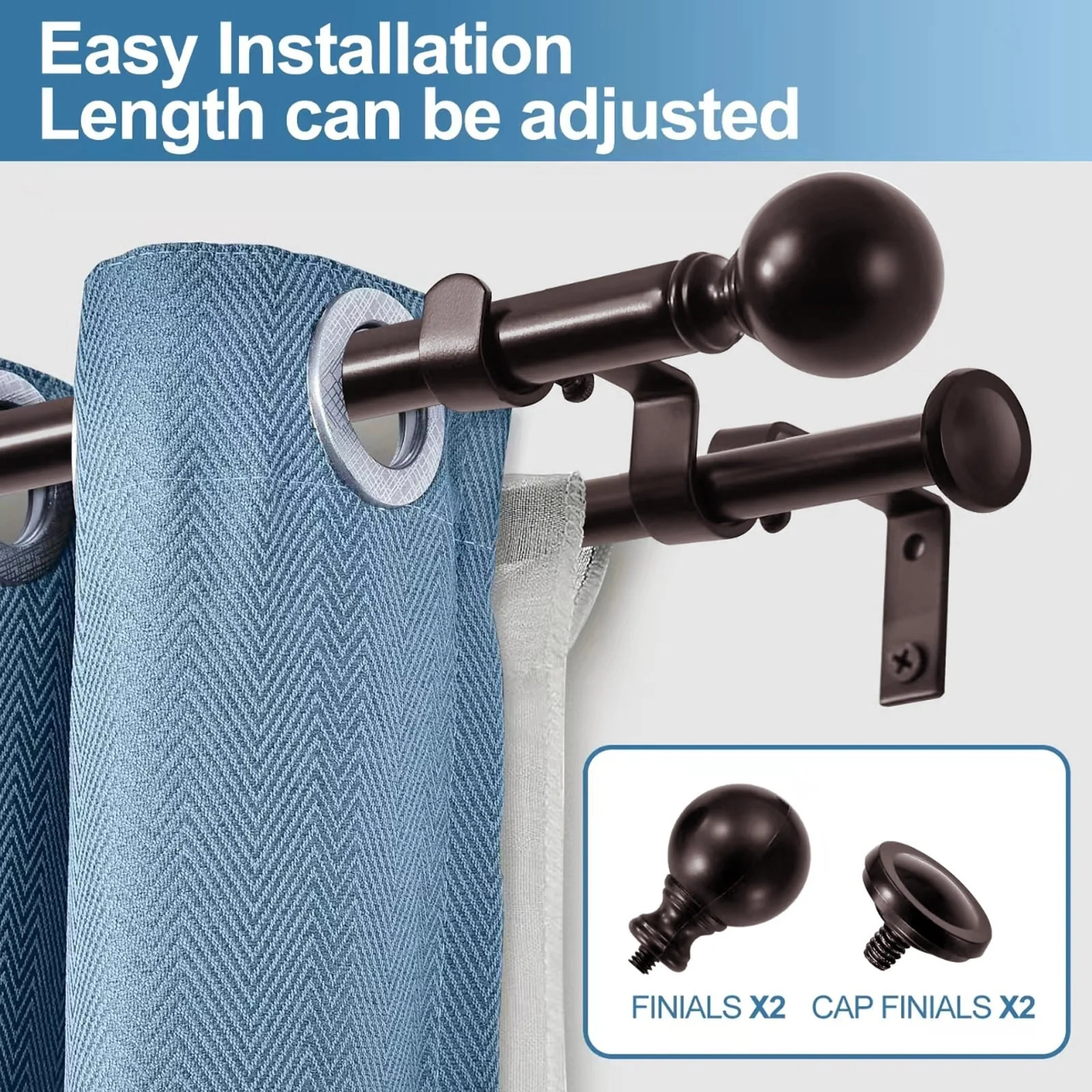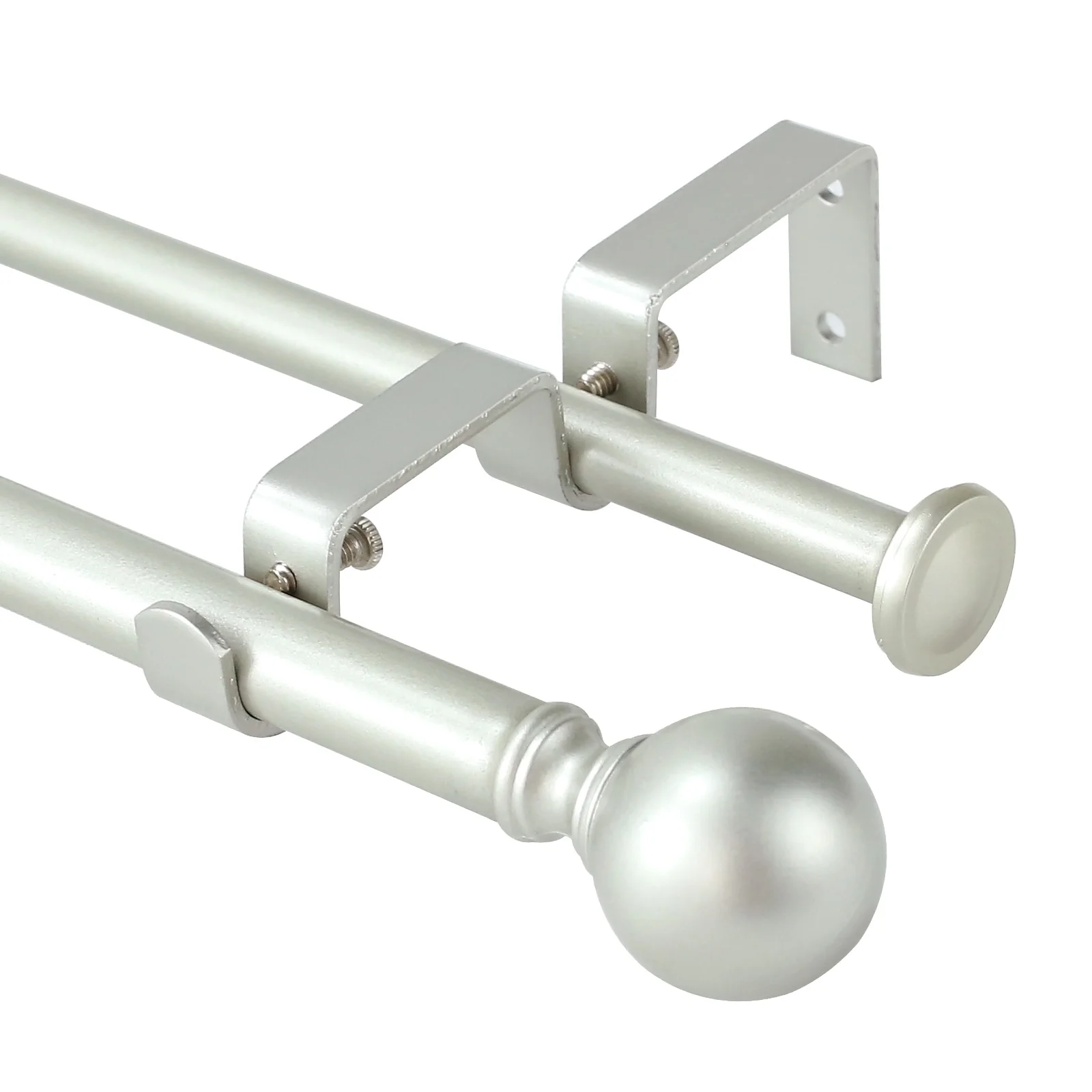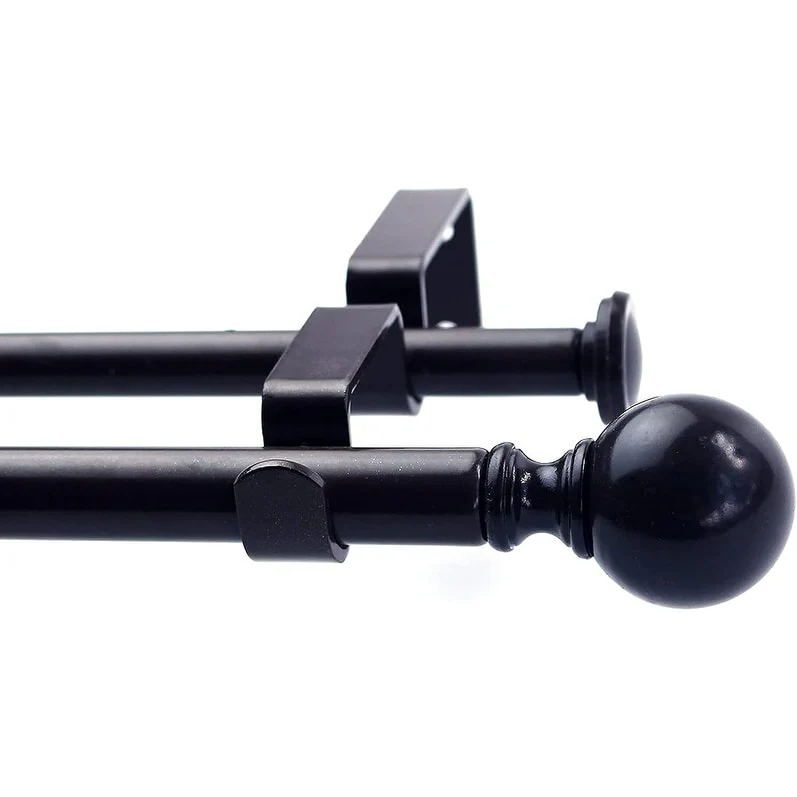 Round Ball Designer Double Drapery Adjustable Curtain Rod & Hardware