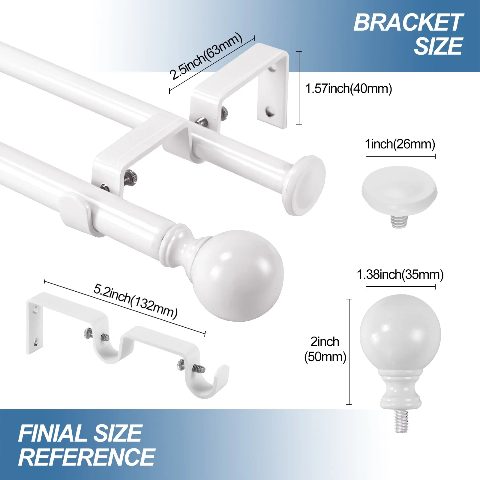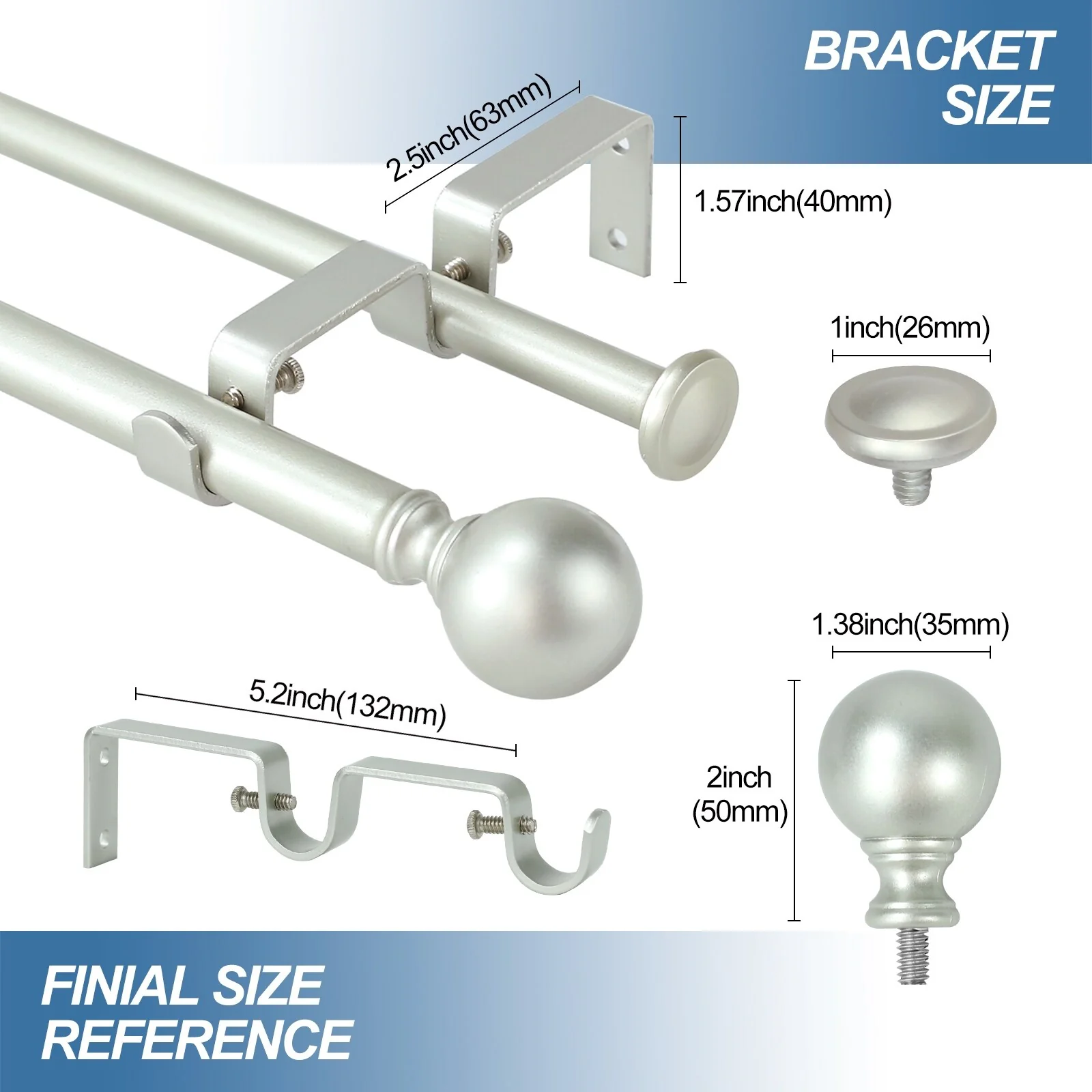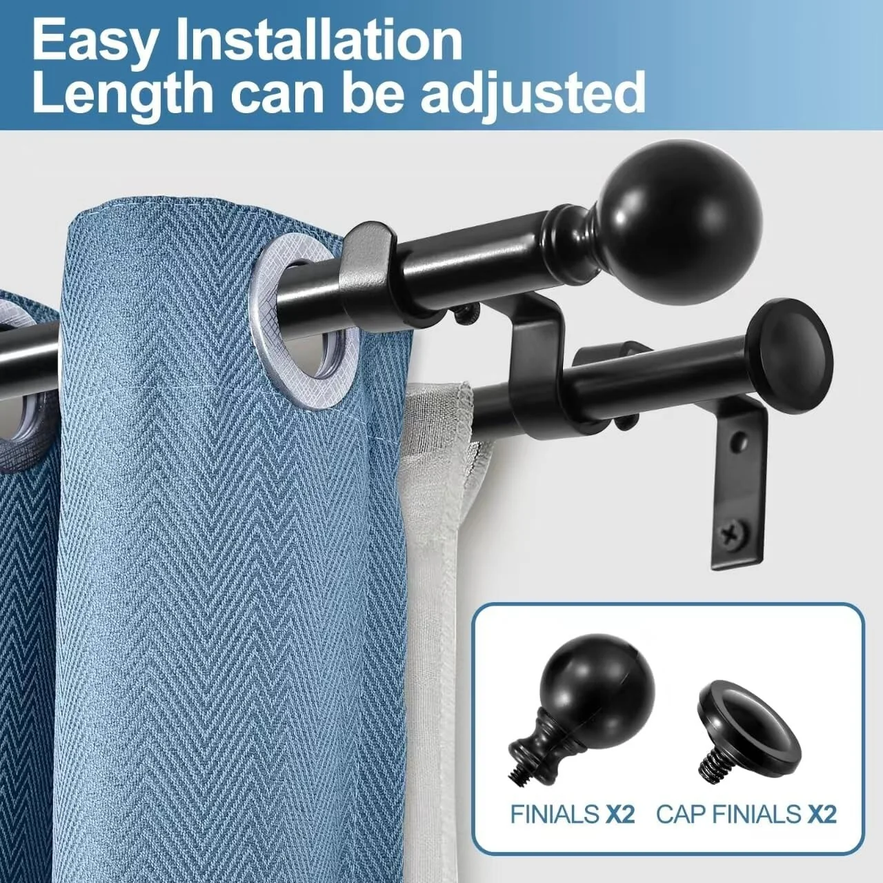 Round Ball Designer Double Drapery Adjustable Curtain Rod & Hardware