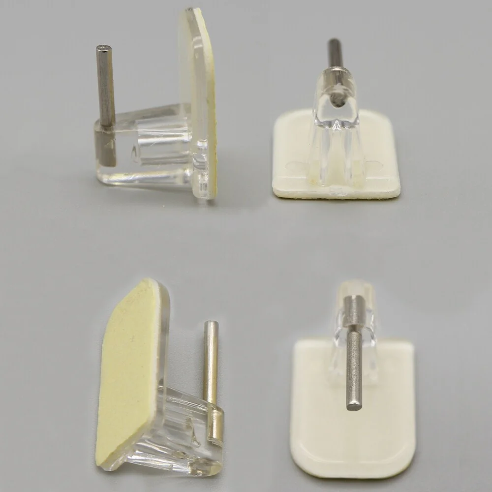 Hang curtains and valances without damaging walls with these Self Adhesive Hooks for Sash Rods. Made of durable plastic with a strong self-stick back, these hooks have an ultra-strong viscosity and can hold up to 3 pounds. With no tools needed for installation, simply peel off the protective backing and stick them to the window frame. This set of four hooks is compatible with all flat sash rods (sold separately) and is available in four colors. Please note that they should not be used on painted walls.
