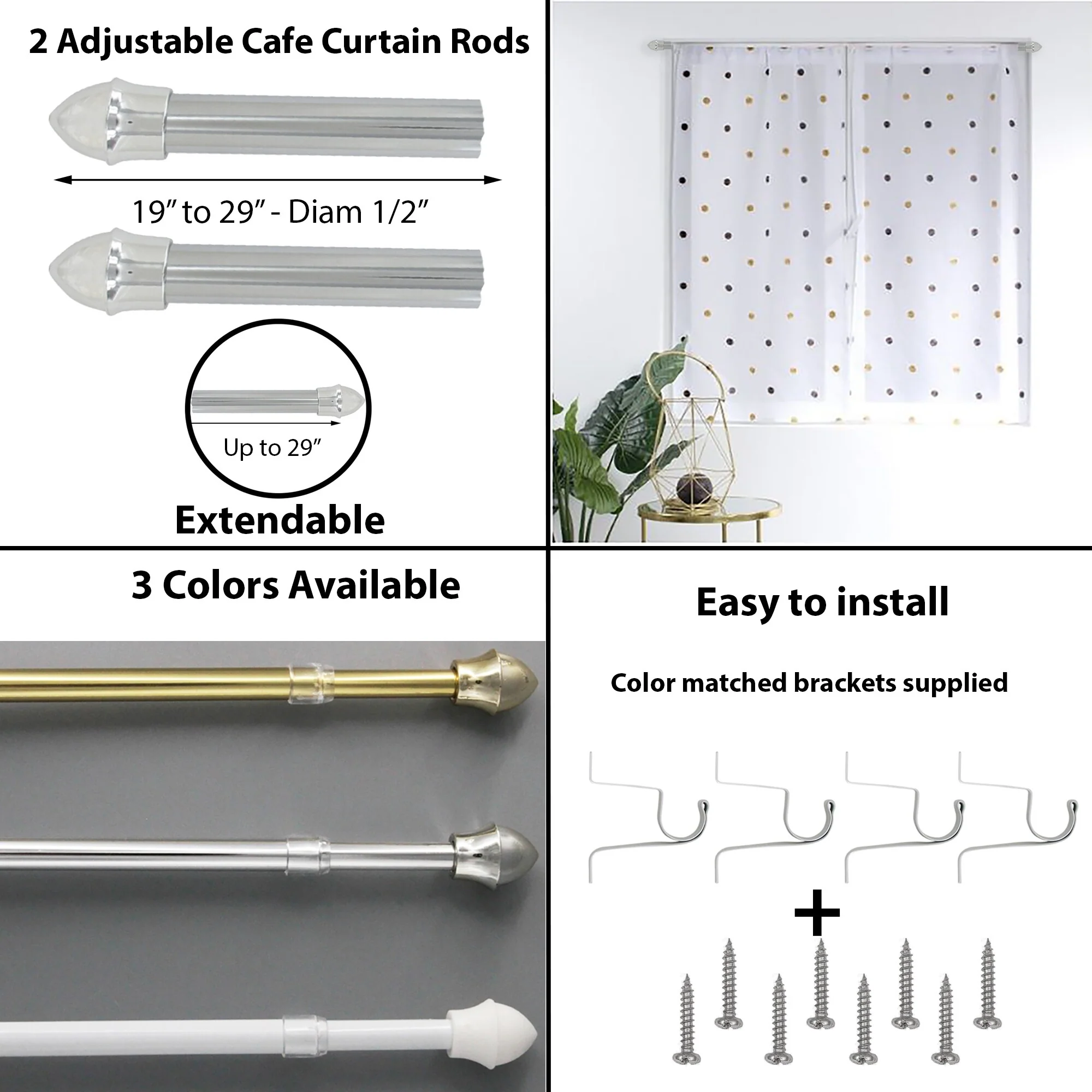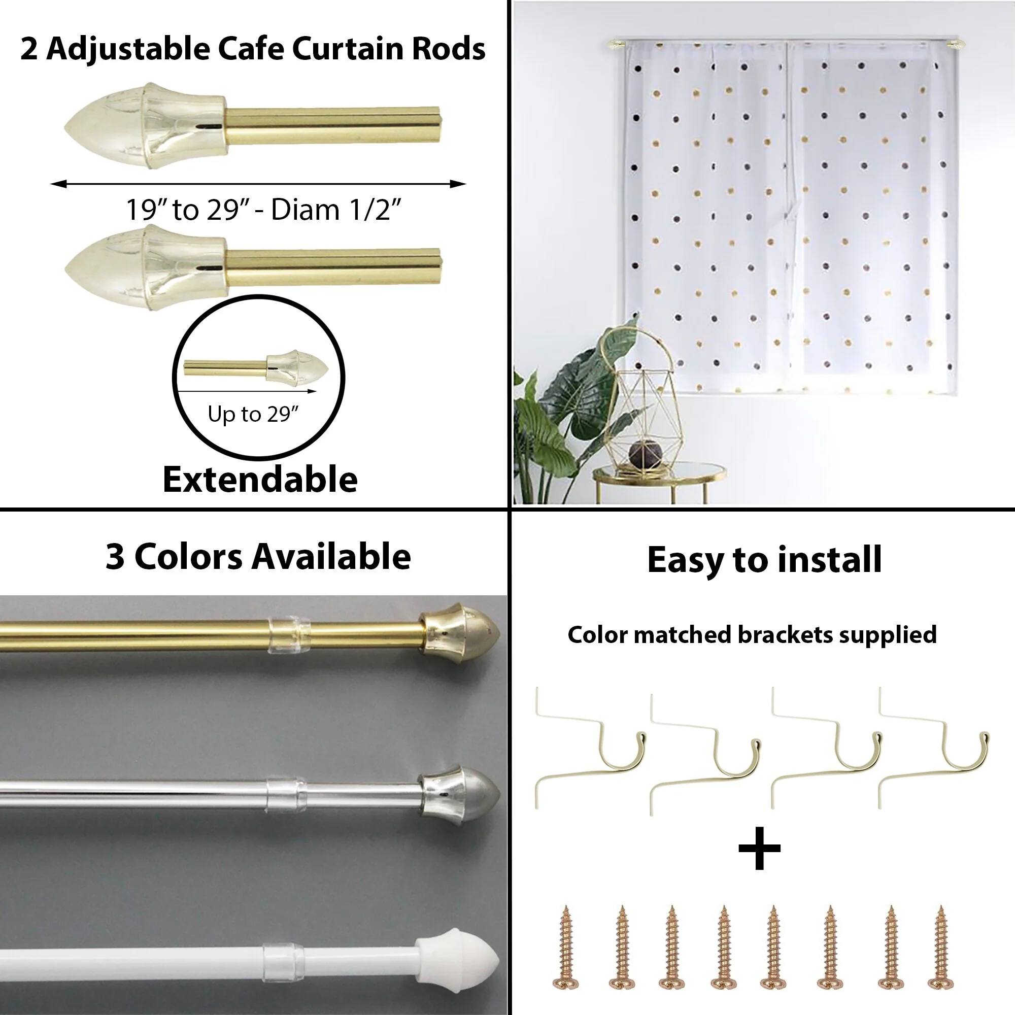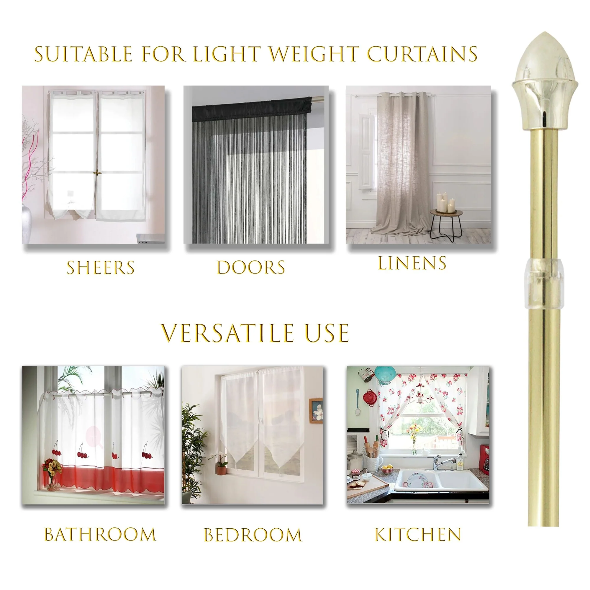 - SOLD BY 2: This set of 2 kitchen curtain rods will be used to fix your sheers or your small curtains in the kitchen and bring style to your home. Available in 2 sizes : 19-29 inches (50-75 cm), 29-49 inches (75-125 cm). Color: white, gold or chrome