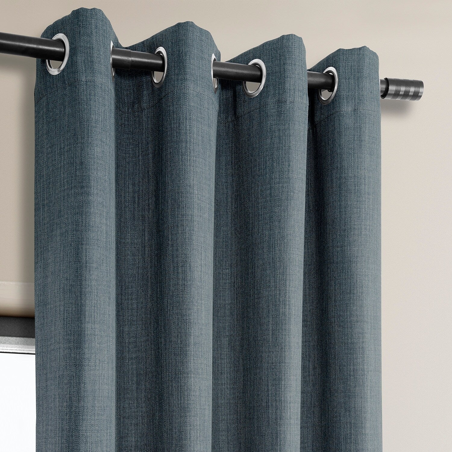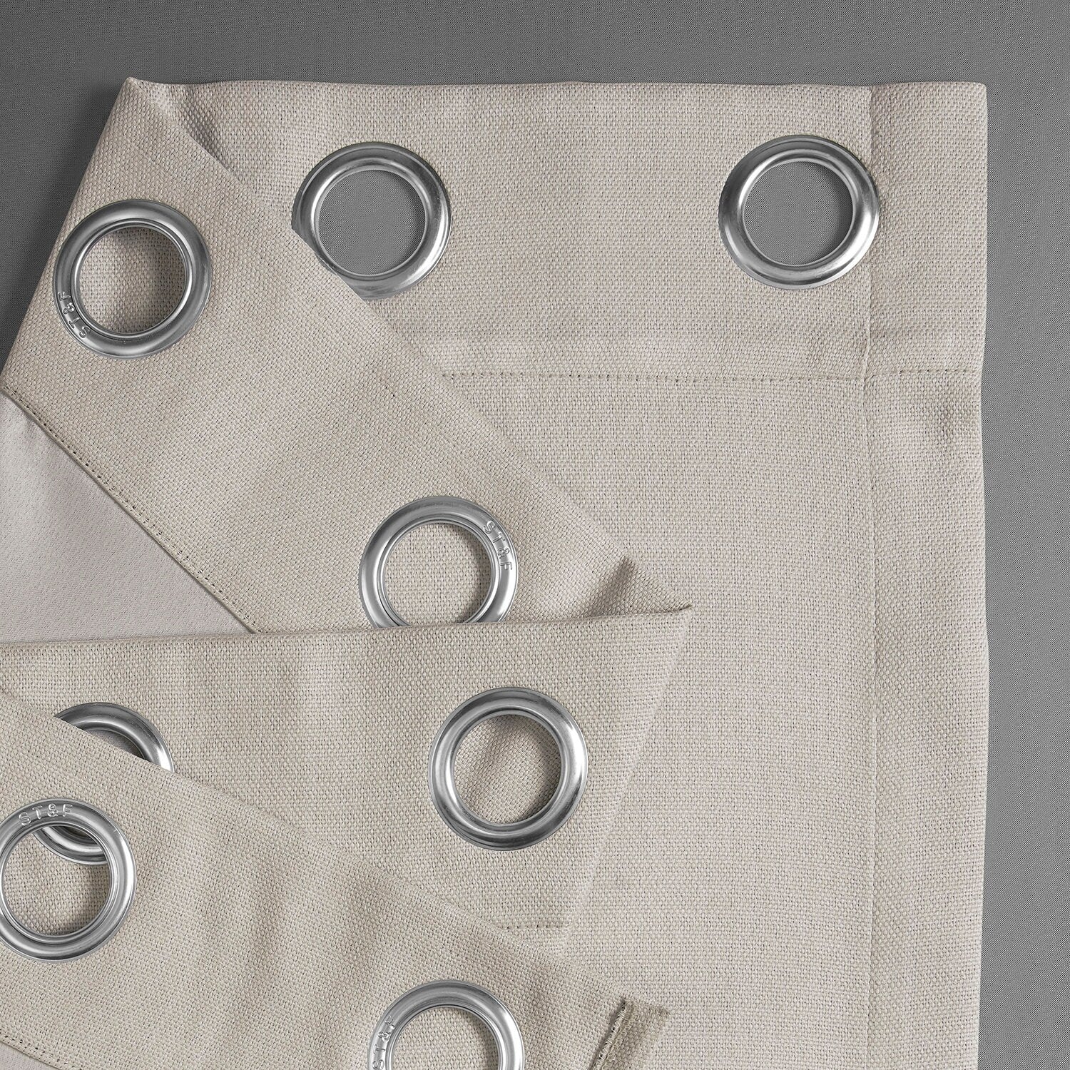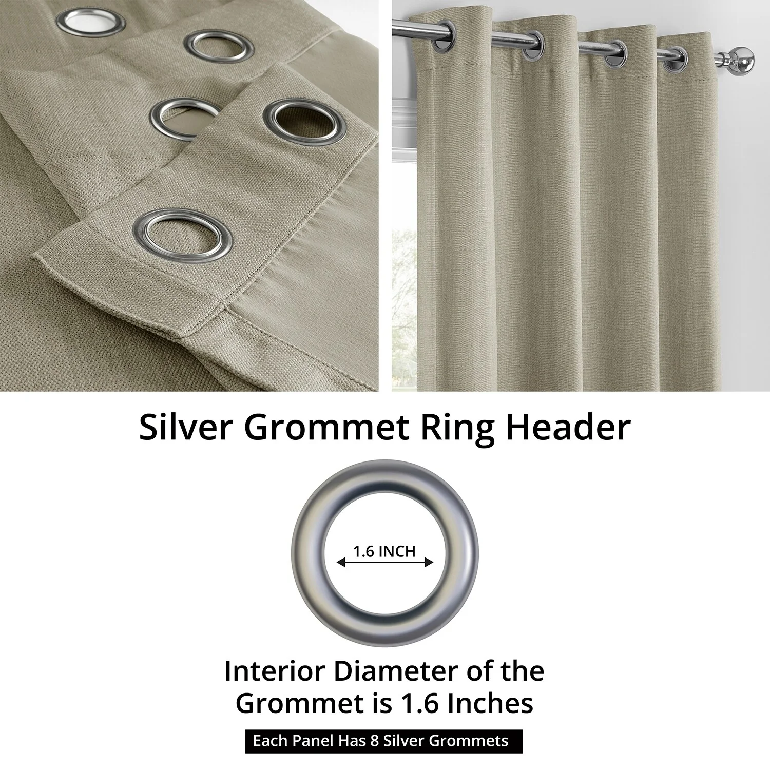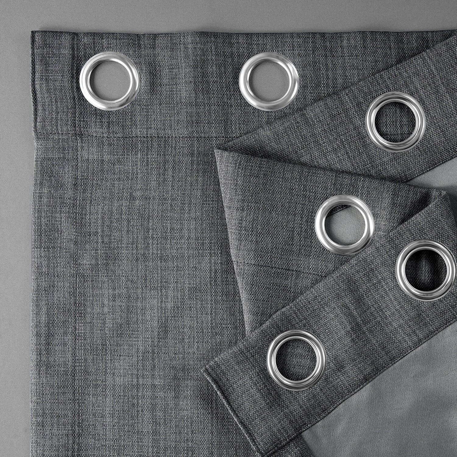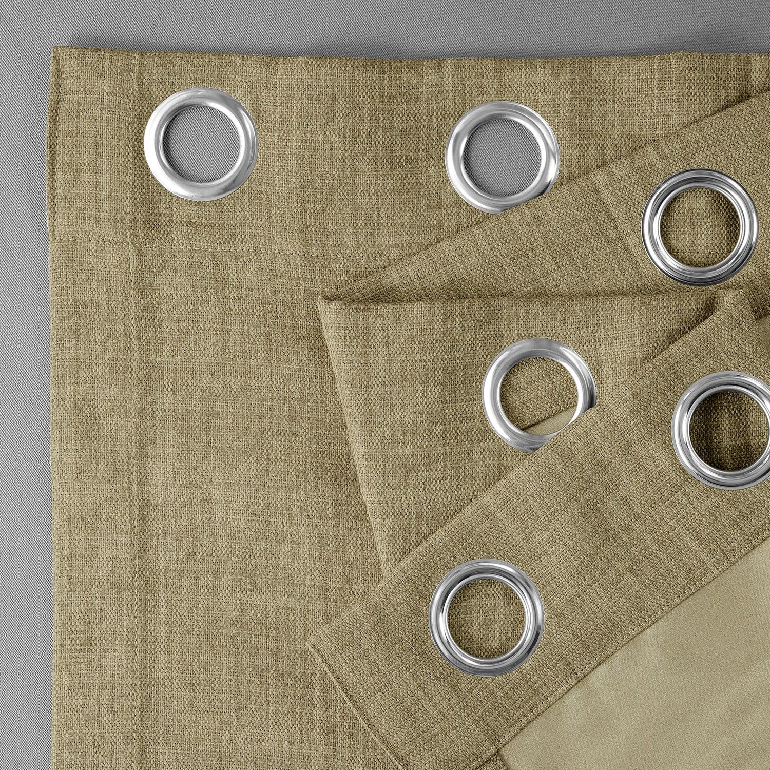 Our Faux Linen Grommet Room Darkening Curtain features rich woven textures in modern designer colors for every style. These heavy faux linen panels have significant room-darkening properties and a weighted hem to hang nicely and keep them in place. This style panel features large metal eyelets that slide onto a curtain rod. They are ideal if you want a clean modern look for a treatment you do not intend to pull back and forth every day. The inside diameter of the eyelets is 1 5/8'. We do not recommend that you use a rod with a diameter larger than 1 1/2' for ease of use. We try to provide the most accurate digital images possible. Color may appear slightly different from one screen to another based on differences in computer monitors, brightness, and other selected settings so there may be variations in color between the actual product and the way it appears online. This curtain offers Room Darkening capabilities with an impressive 85% opacity for Blackout effect.