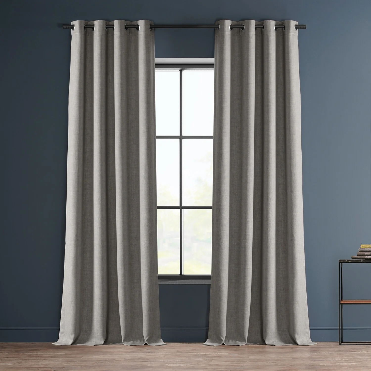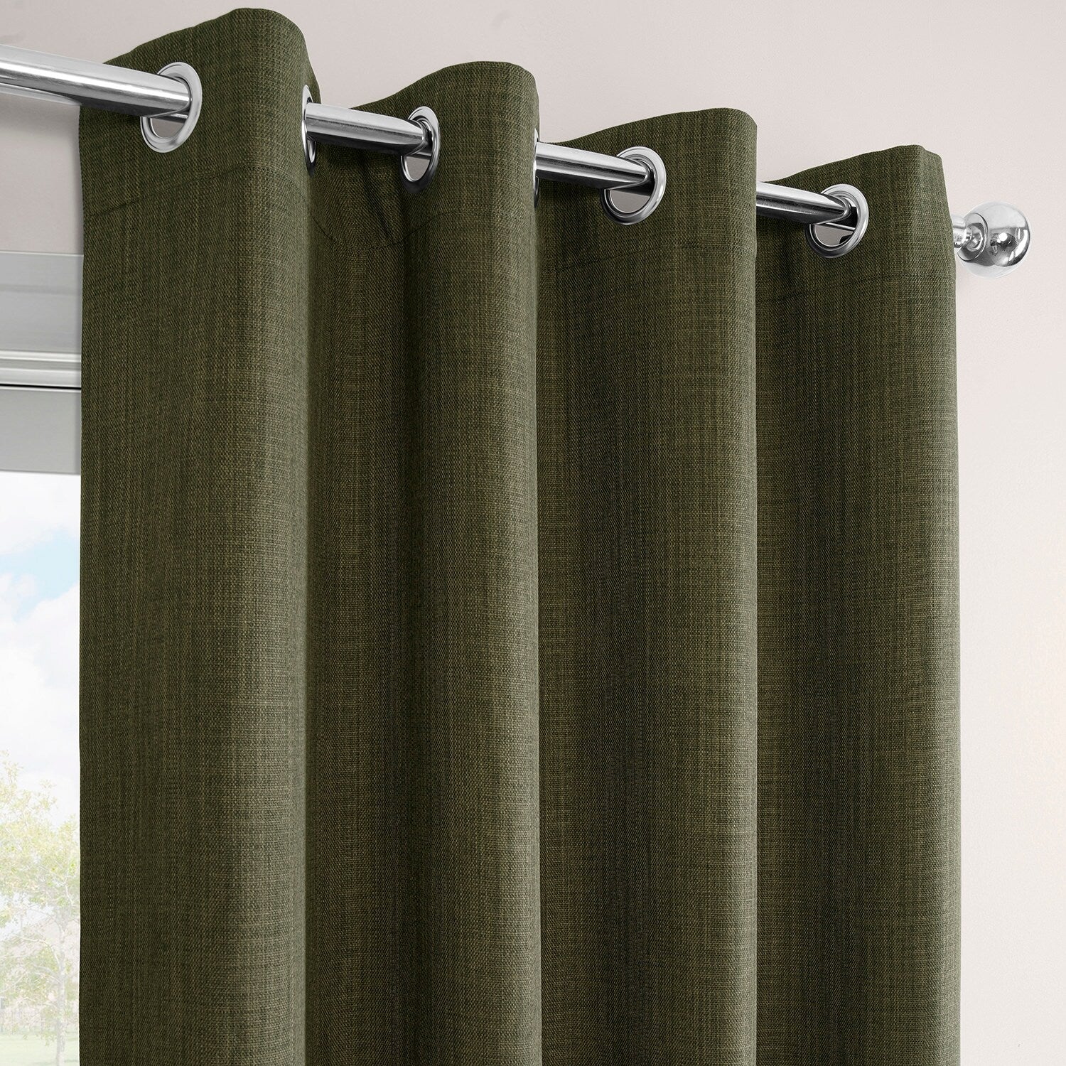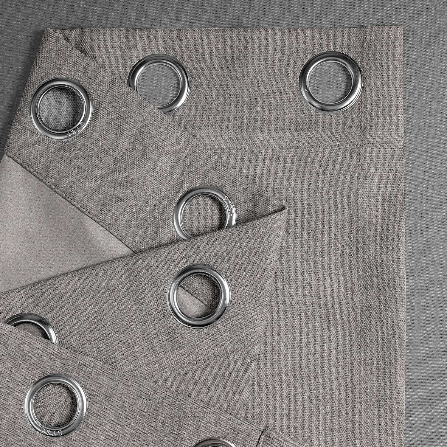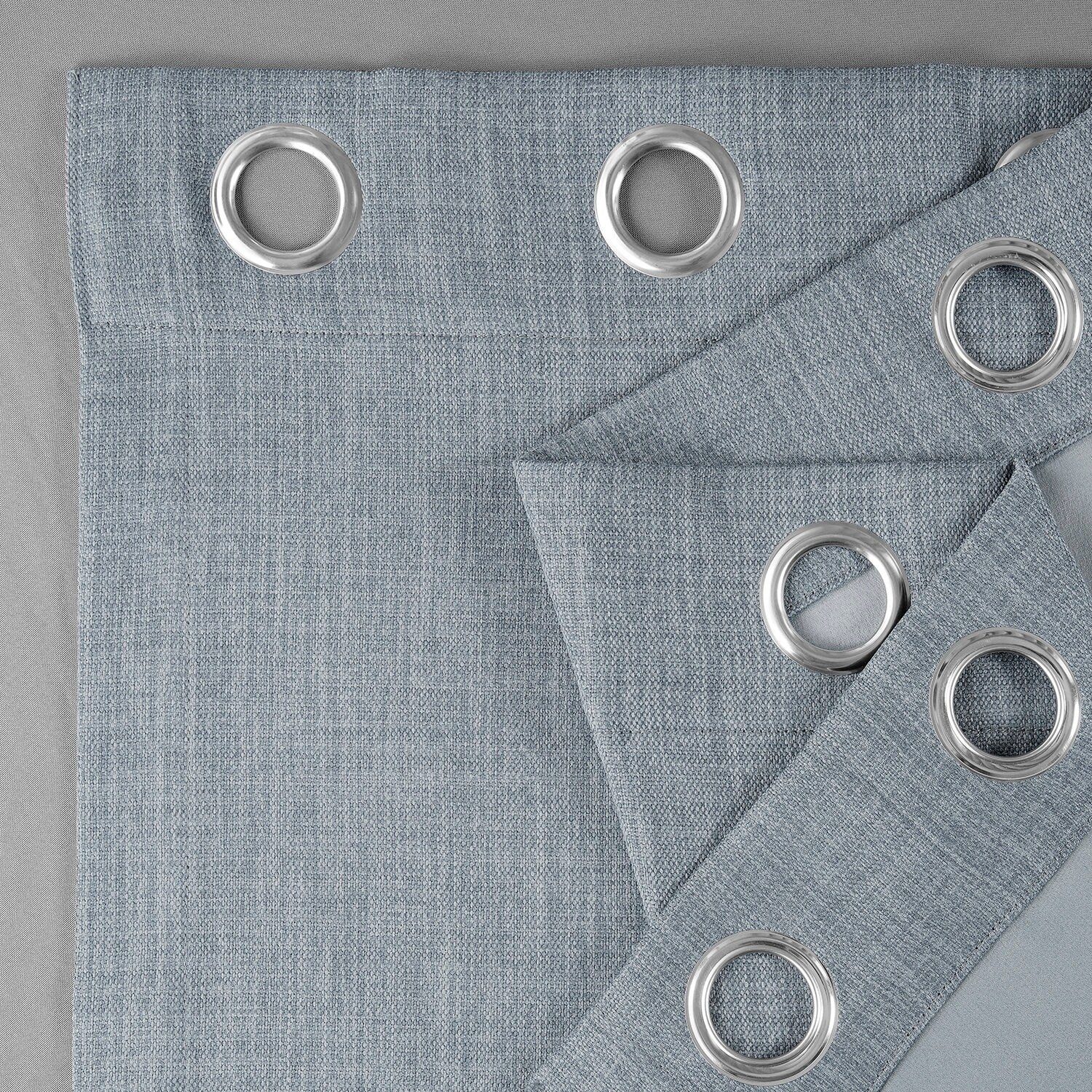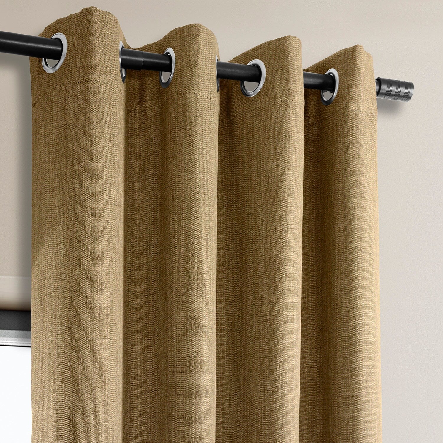 Our Faux Linen Grommet Room Darkening Curtain features rich woven textures in modern designer colors for every style. These heavy faux linen panels have significant room-darkening properties and a weighted hem to hang nicely and keep them in place. This style panel features large metal eyelets that slide onto a curtain rod. They are ideal if you want a clean modern look for a treatment you do not intend to pull back and forth every day. The inside diameter of the eyelets is 1 5/8'. We do not recommend that you use a rod with a diameter larger than 1 1/2' for ease of use. We try to provide the most accurate digital images possible. Color may appear slightly different from one screen to another based on differences in computer monitors, brightness, and other selected settings so there may be variations in color between the actual product and the way it appears online. This curtain offers Room Darkening capabilities with an impressive 85% opacity for Blackout effect.