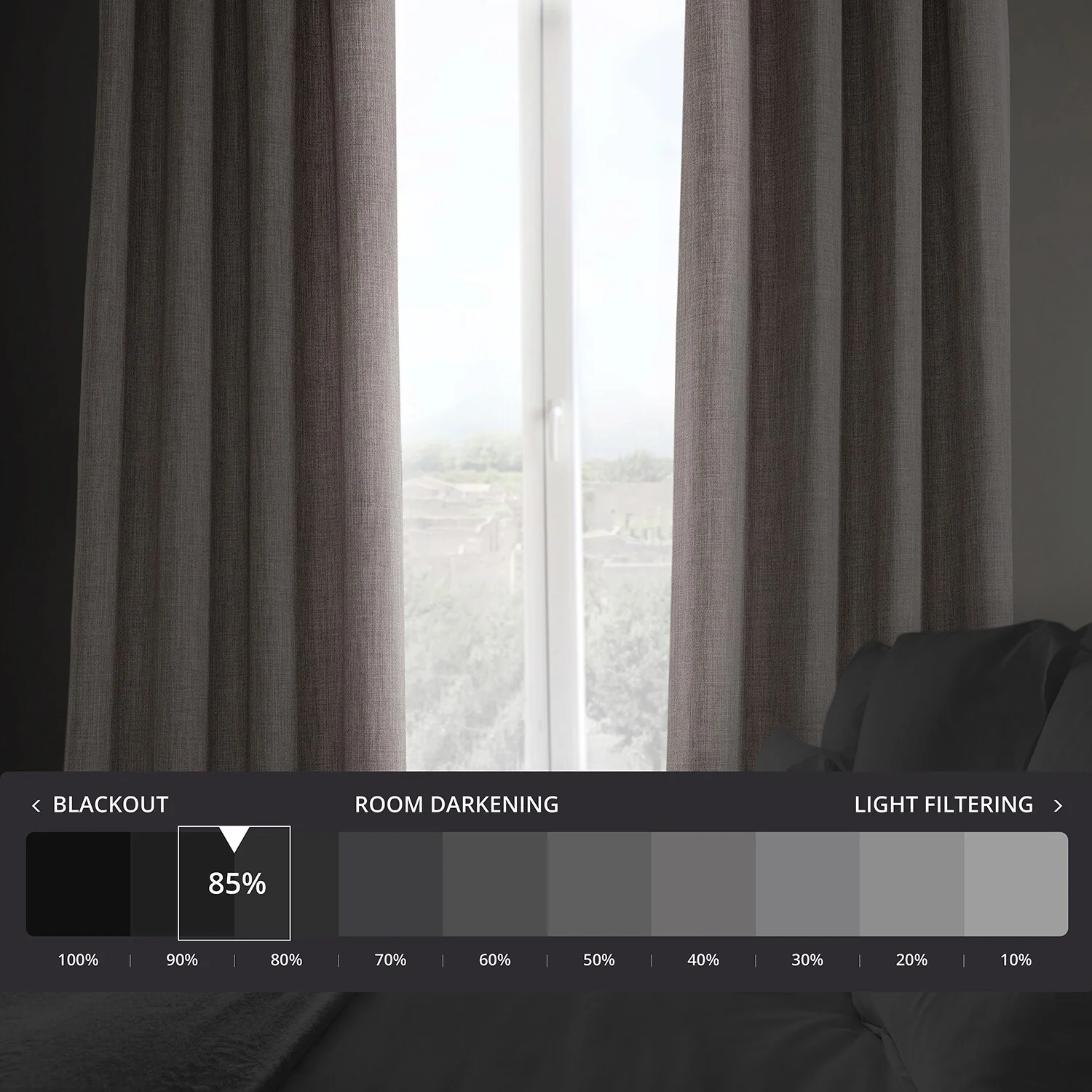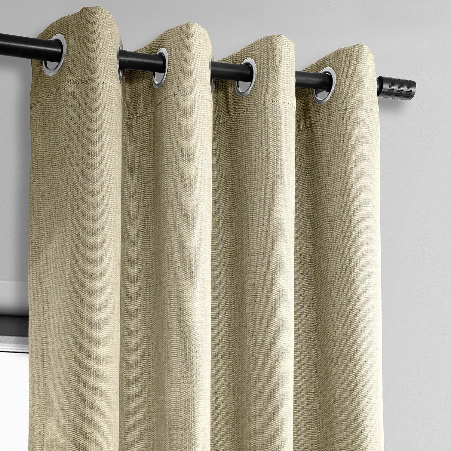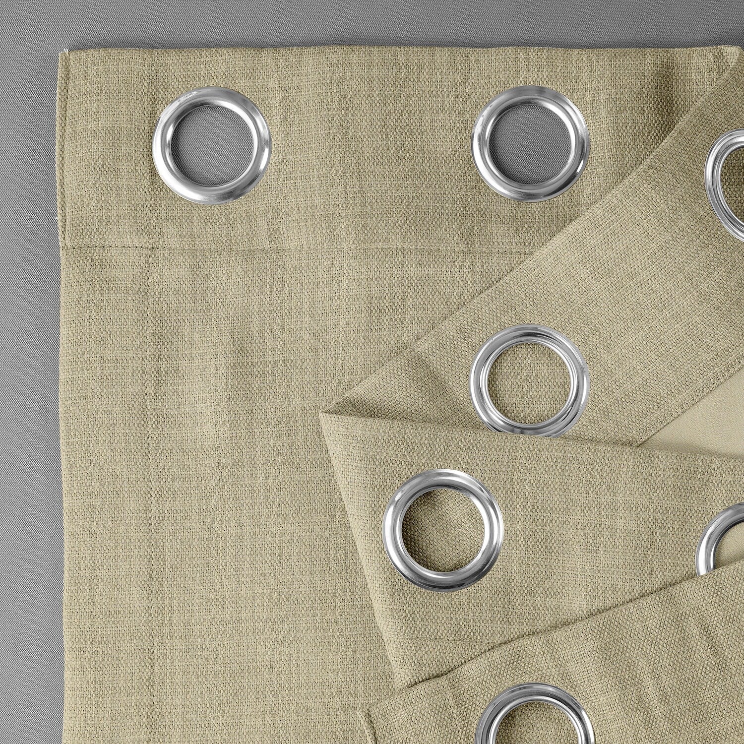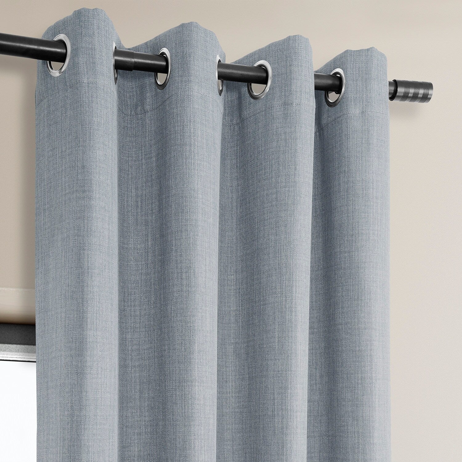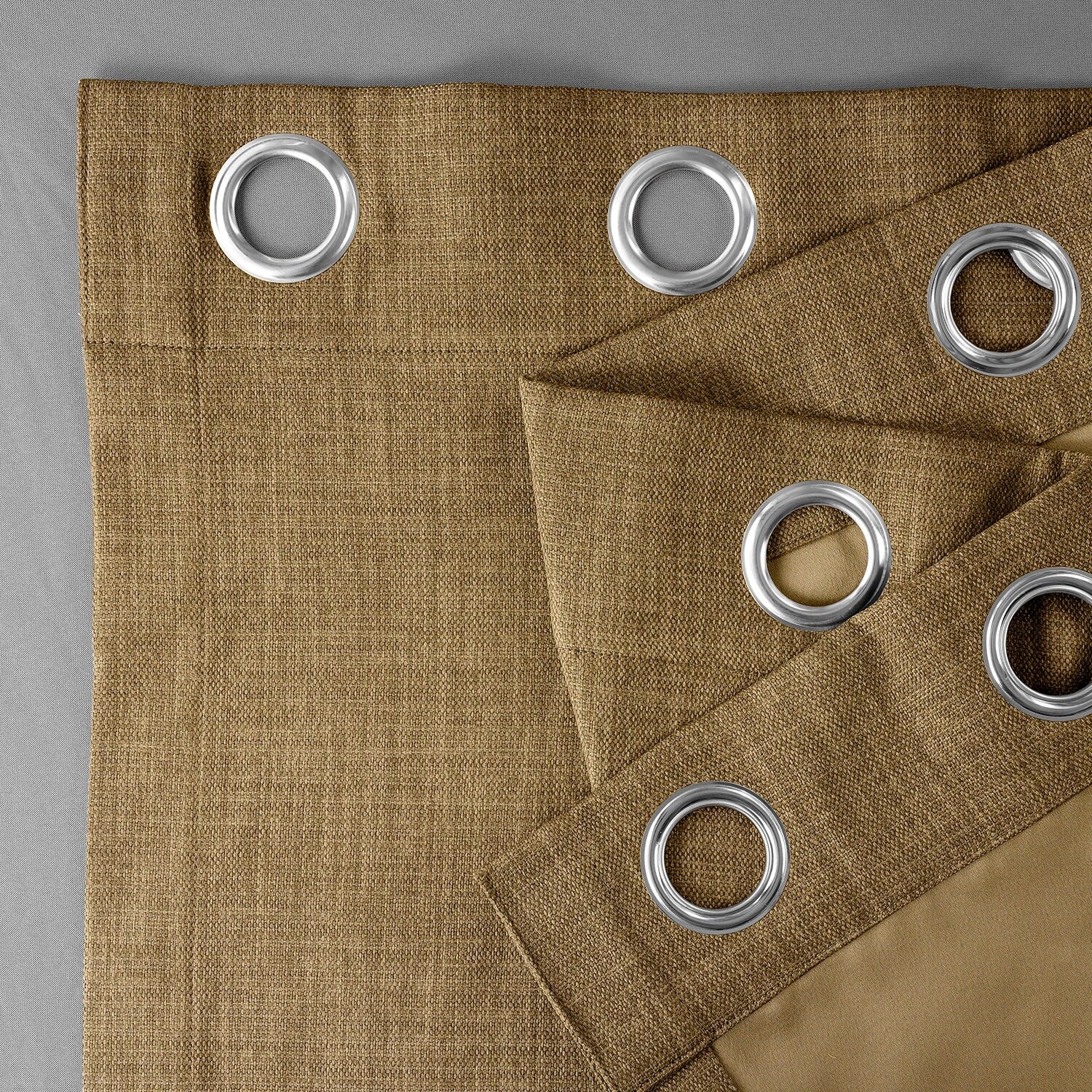Our Faux Linen Grommet Room Darkening Curtain features rich woven textures in modern designer colors for every style. These heavy faux linen panels have significant room-darkening properties and a weighted hem to hang nicely and keep them in place. This style panel features large metal eyelets that slide onto a curtain rod. They are ideal if you want a clean modern look for a treatment you do not intend to pull back and forth every day. The inside diameter of the eyelets is 1 5/8'. We do not recommend that you use a rod with a diameter larger than 1 1/2' for ease of use. We try to provide the most accurate digital images possible. Color may appear slightly different from one screen to another based on differences in computer monitors, brightness, and other selected settings so there may be variations in color between the actual product and the way it appears online. This curtain offers Room Darkening capabilities with an impressive 85% opacity for Blackout effect.