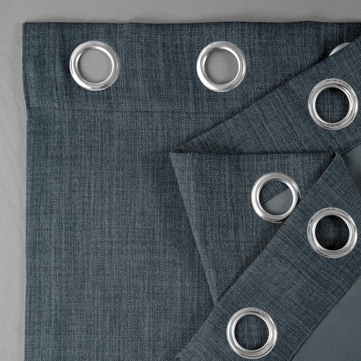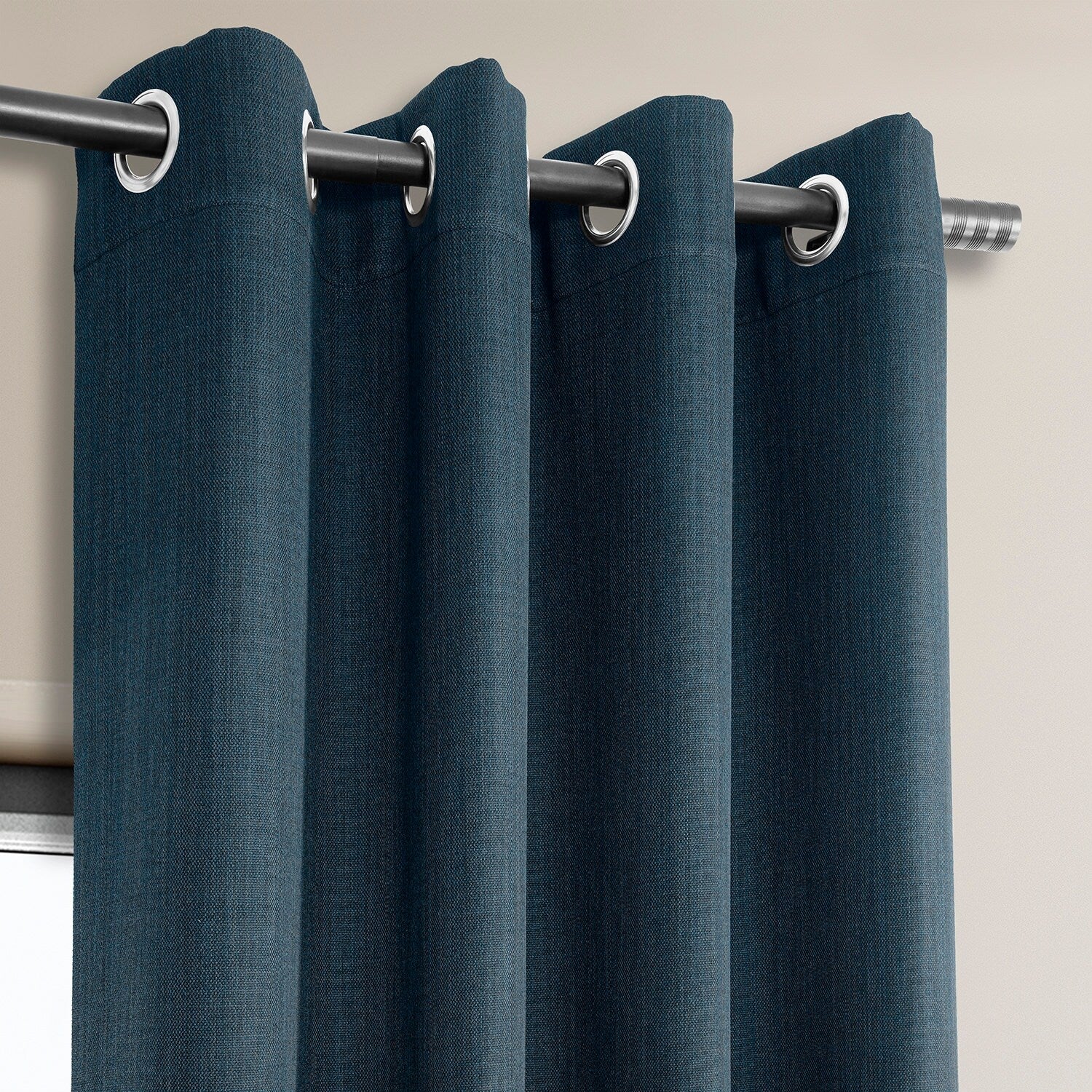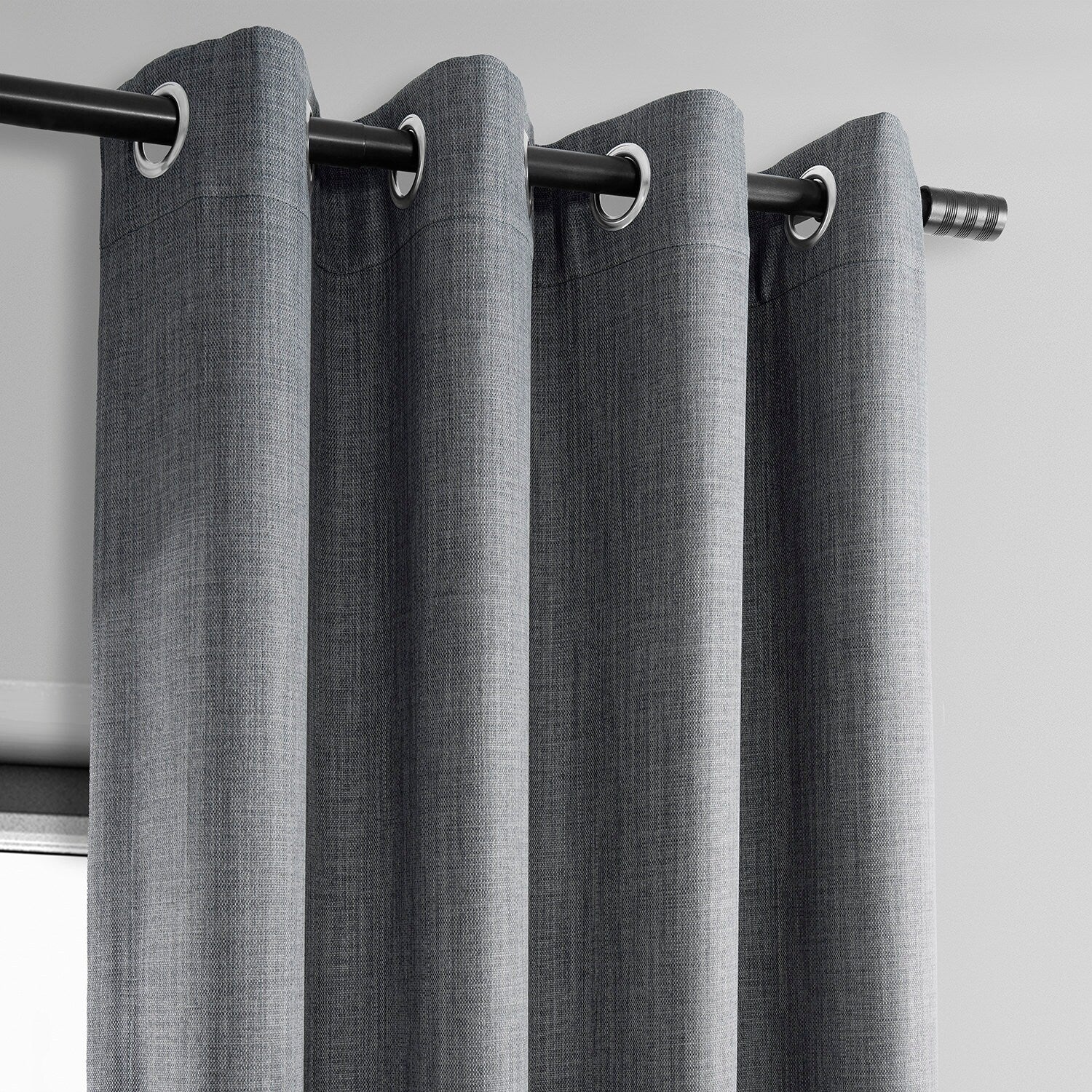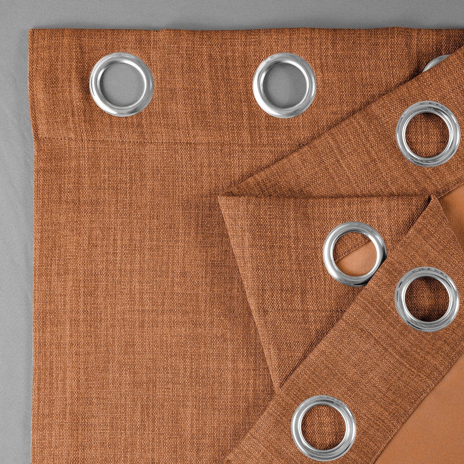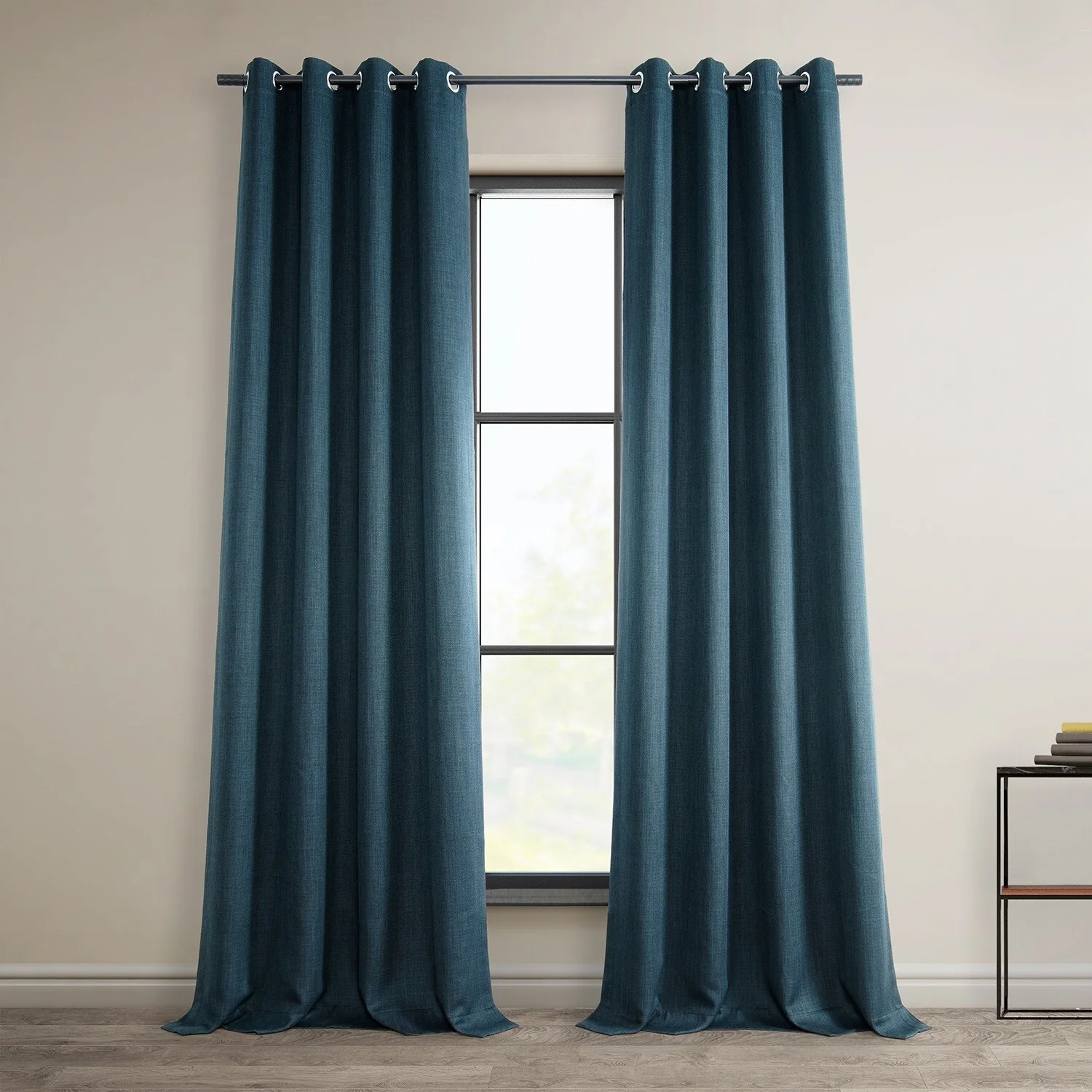 Our Faux Linen Grommet Room Darkening Curtain features rich woven textures in modern designer colors for every style. These heavy faux linen panels have significant room-darkening properties and a weighted hem to hang nicely and keep them in place. This style panel features large metal eyelets that slide onto a curtain rod. They are ideal if you want a clean modern look for a treatment you do not intend to pull back and forth every day. The inside diameter of the eyelets is 1 5/8'. We do not recommend that you use a rod with a diameter larger than 1 1/2' for ease of use. We try to provide the most accurate digital images possible. Color may appear slightly different from one screen to another based on differences in computer monitors, brightness, and other selected settings so there may be variations in color between the actual product and the way it appears online. This curtain offers Room Darkening capabilities with an impressive 85% opacity for Blackout effect.