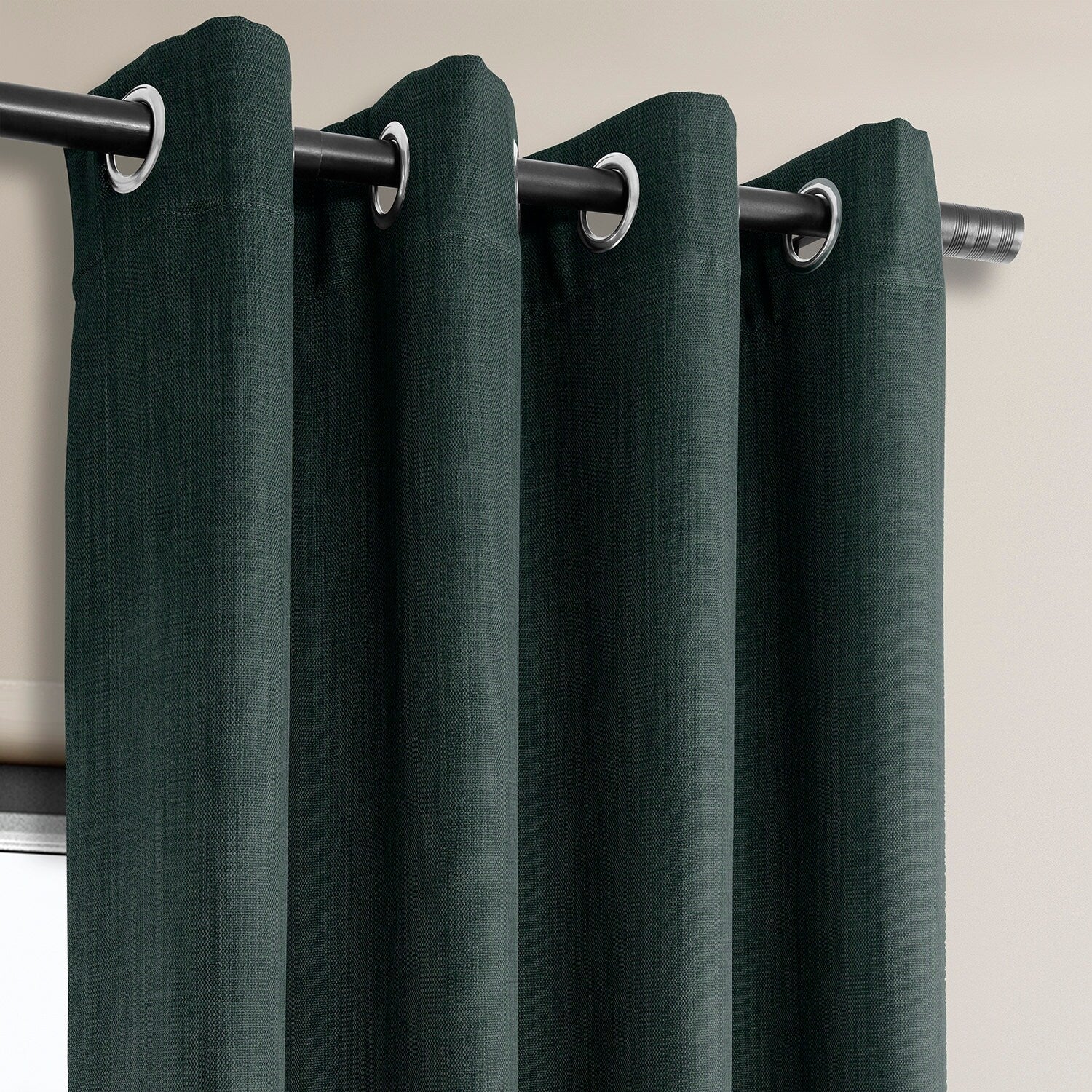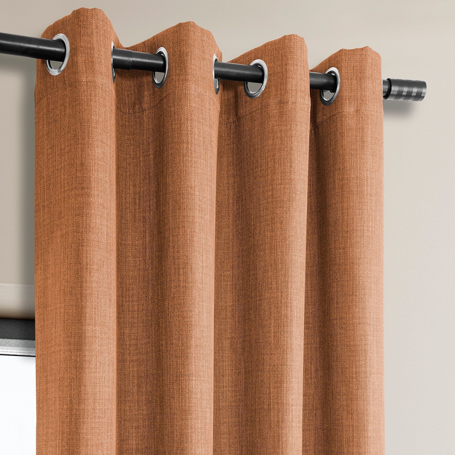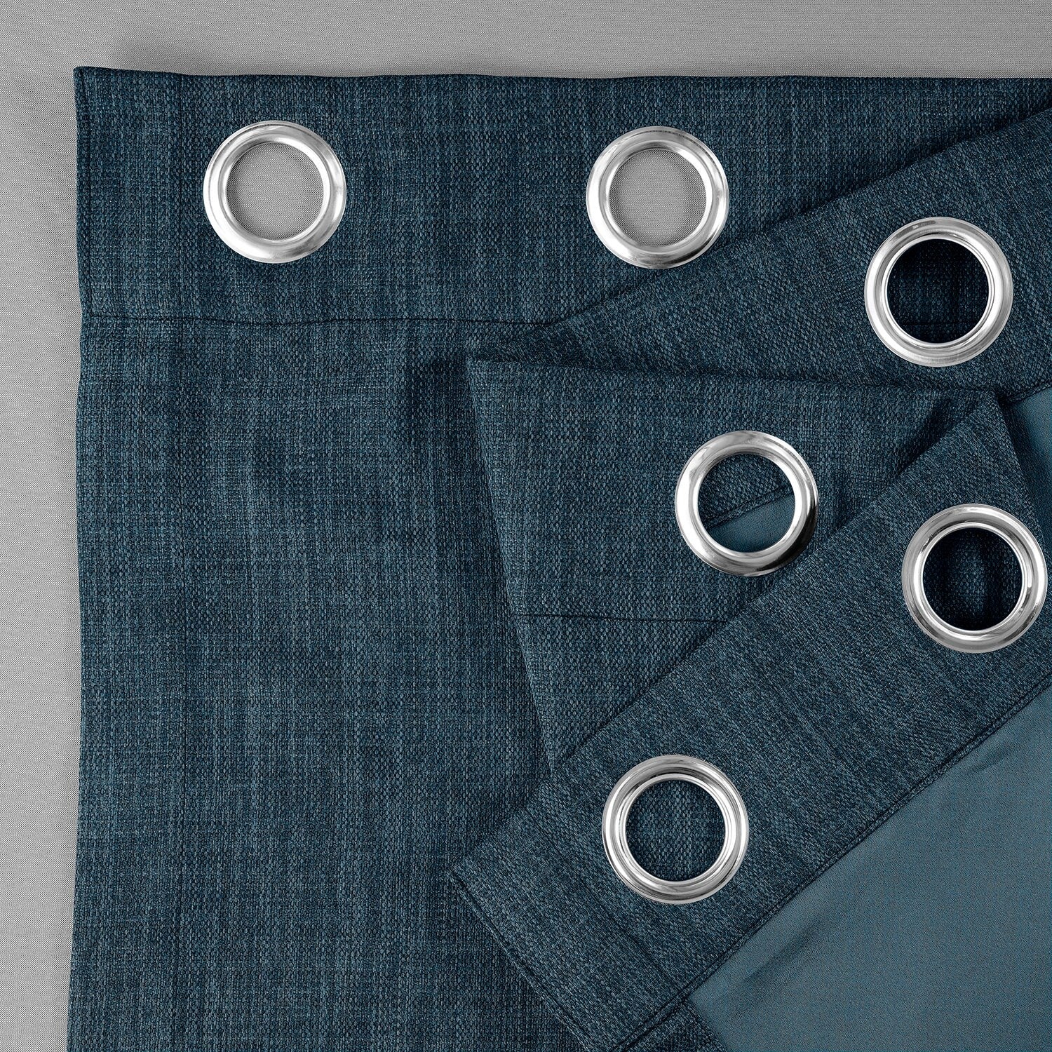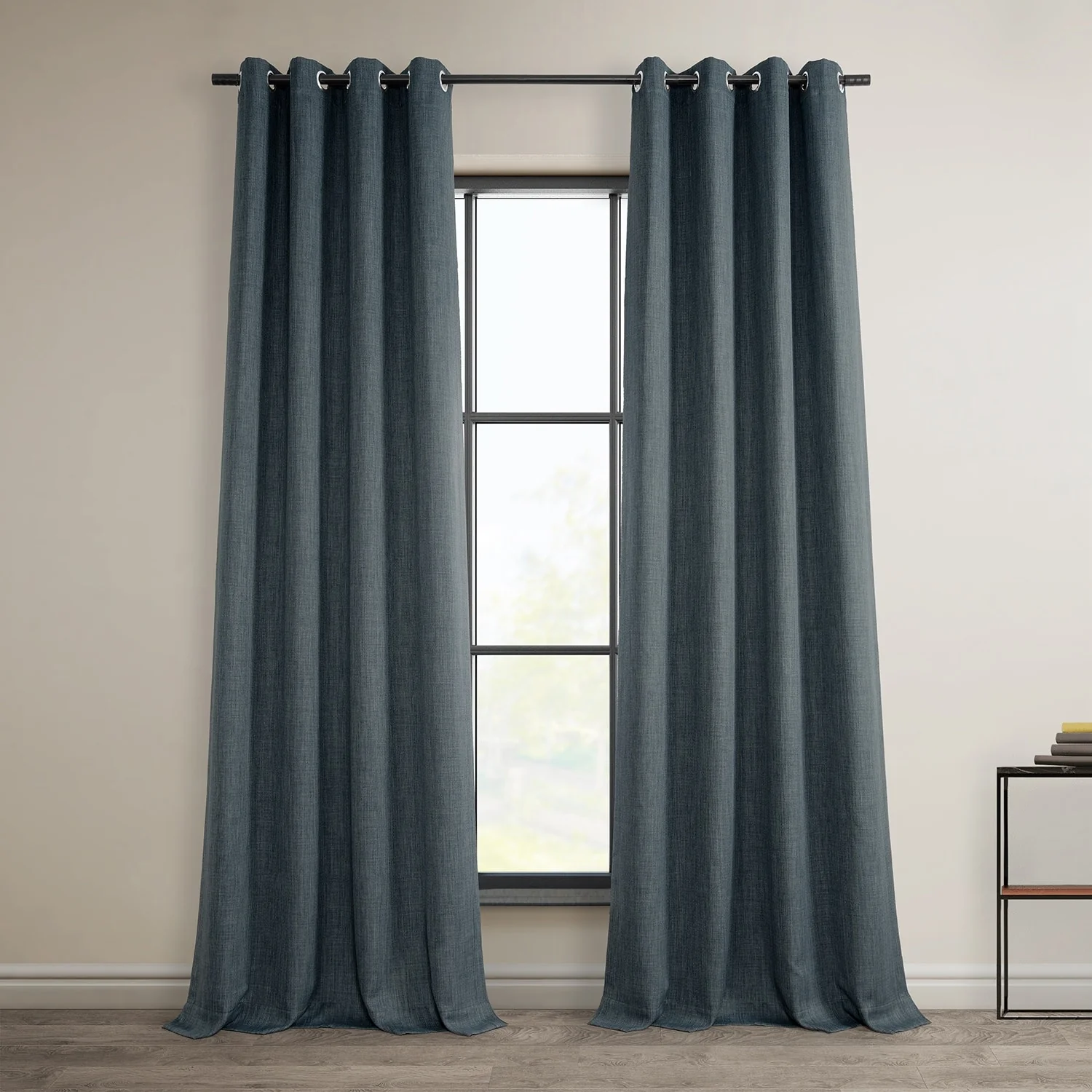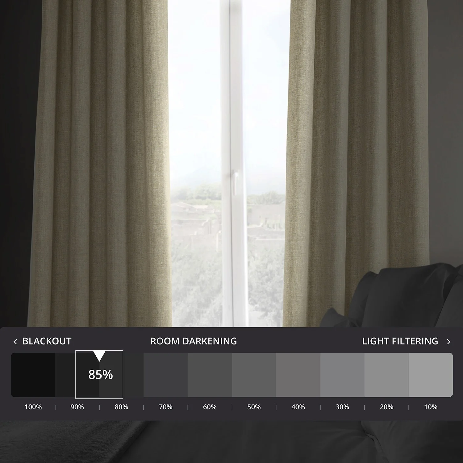 Our Faux Linen Grommet Room Darkening Curtain features rich woven textures in modern designer colors for every style. These heavy faux linen panels have significant room-darkening properties and a weighted hem to hang nicely and keep them in place. This style panel features large metal eyelets that slide onto a curtain rod. They are ideal if you want a clean modern look for a treatment you do not intend to pull back and forth every day. The inside diameter of the eyelets is 1 5/8'. We do not recommend that you use a rod with a diameter larger than 1 1/2' for ease of use. We try to provide the most accurate digital images possible. Color may appear slightly different from one screen to another based on differences in computer monitors, brightness, and other selected settings so there may be variations in color between the actual product and the way it appears online. This curtain offers Room Darkening capabilities with an impressive 85% opacity for Blackout effect.