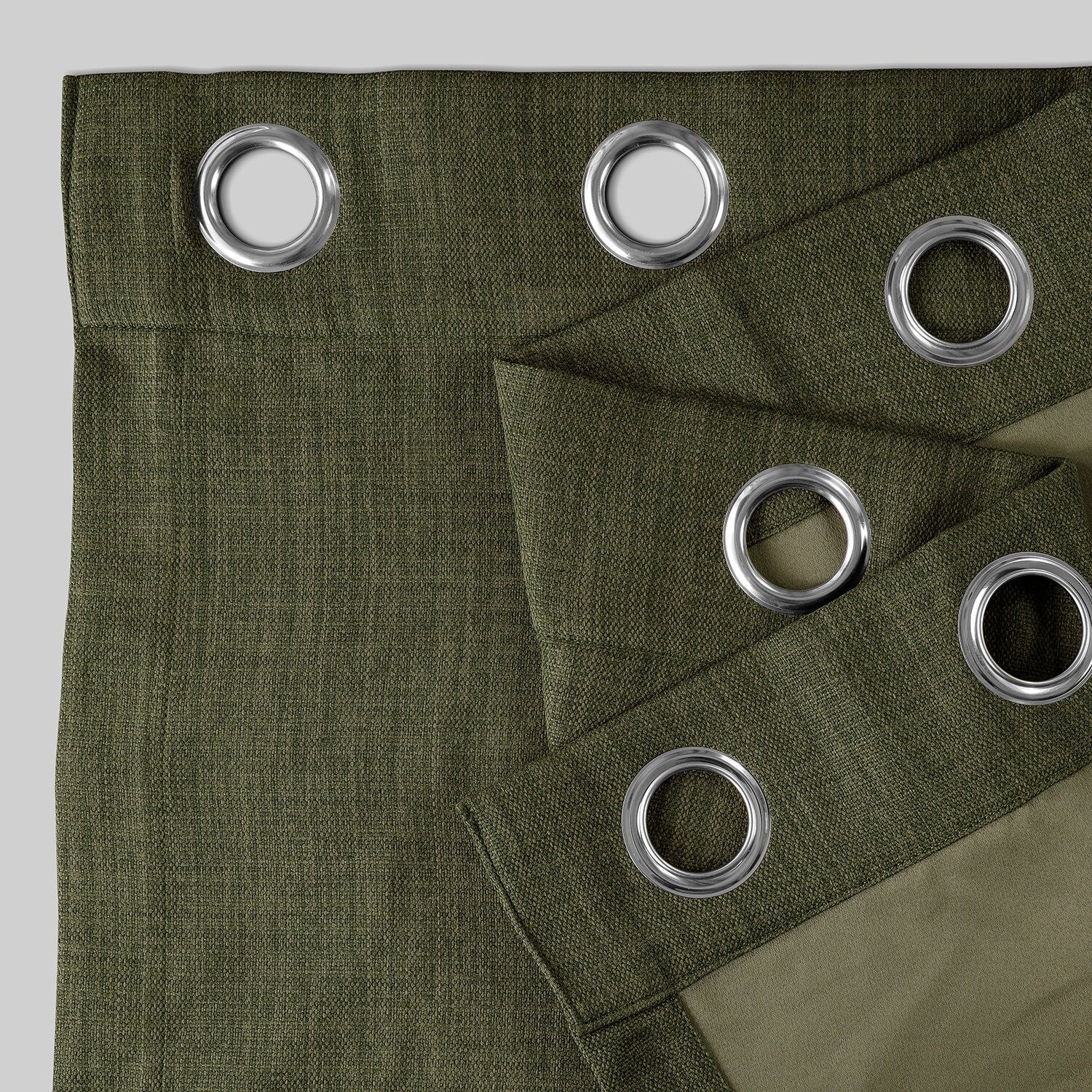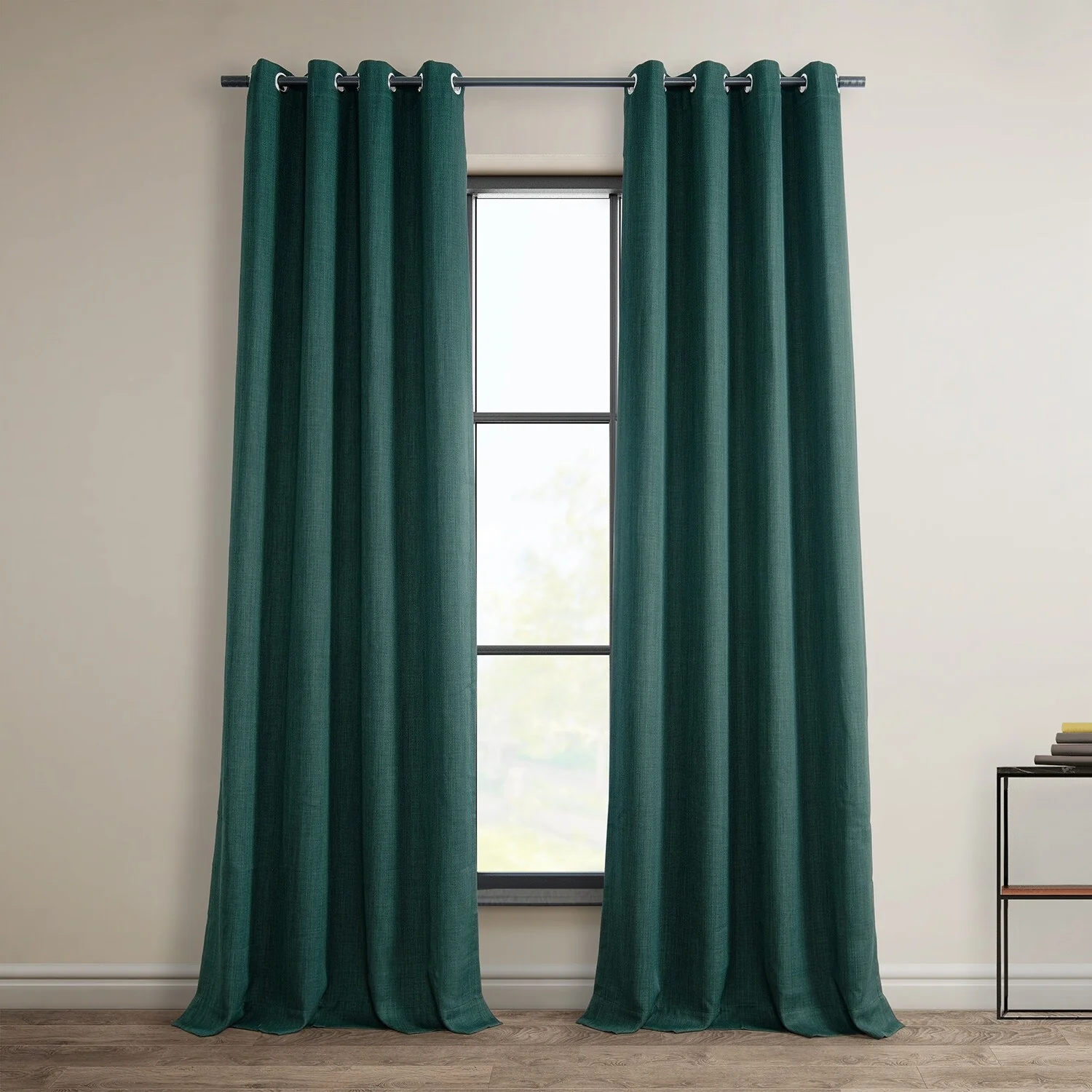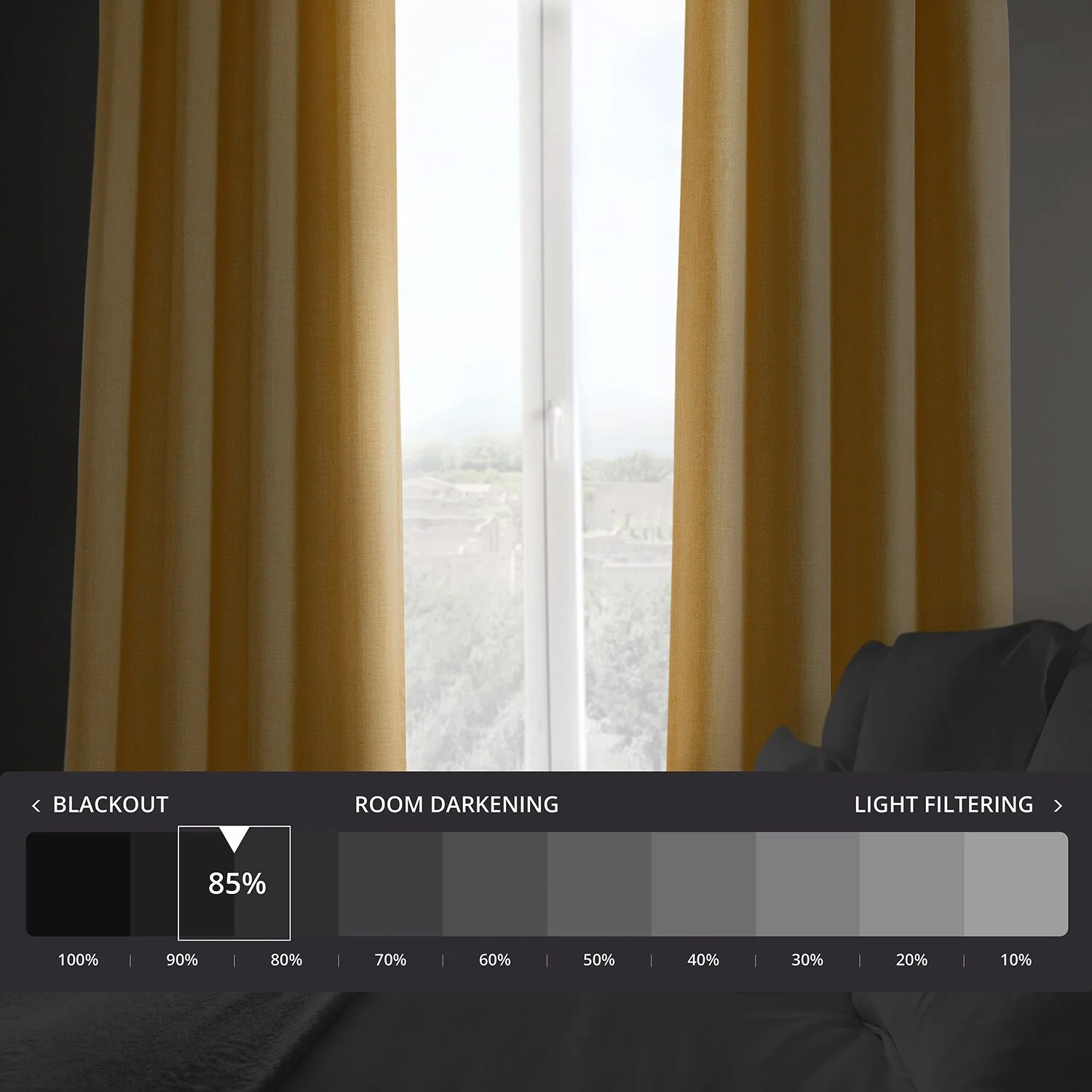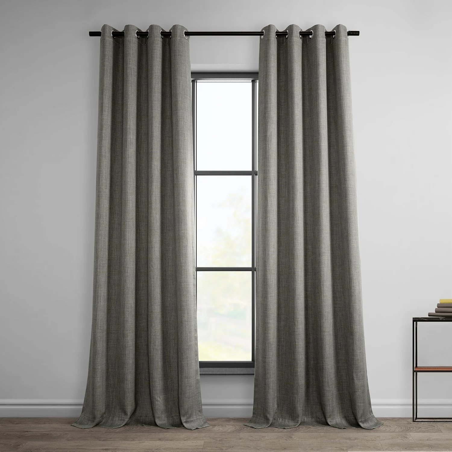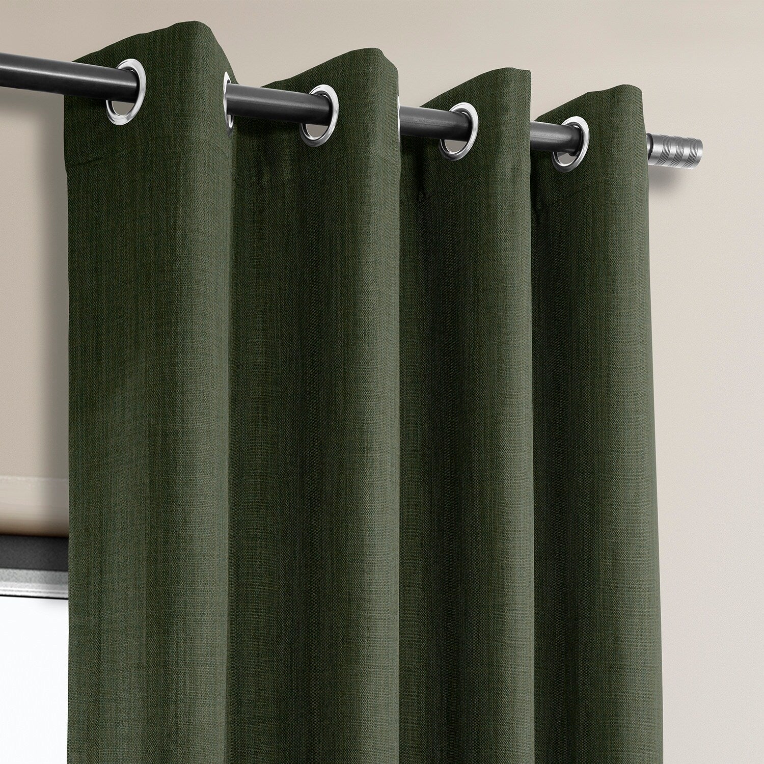 Our Faux Linen Grommet Room Darkening Curtain features rich woven textures in modern designer colors for every style. These heavy faux linen panels have significant room-darkening properties and a weighted hem to hang nicely and keep them in place. This style panel features large metal eyelets that slide onto a curtain rod. They are ideal if you want a clean modern look for a treatment you do not intend to pull back and forth every day. The inside diameter of the eyelets is 1 5/8'. We do not recommend that you use a rod with a diameter larger than 1 1/2' for ease of use. We try to provide the most accurate digital images possible. Color may appear slightly different from one screen to another based on differences in computer monitors, brightness, and other selected settings so there may be variations in color between the actual product and the way it appears online. This curtain offers Room Darkening capabilities with an impressive 85% opacity for Blackout effect.
