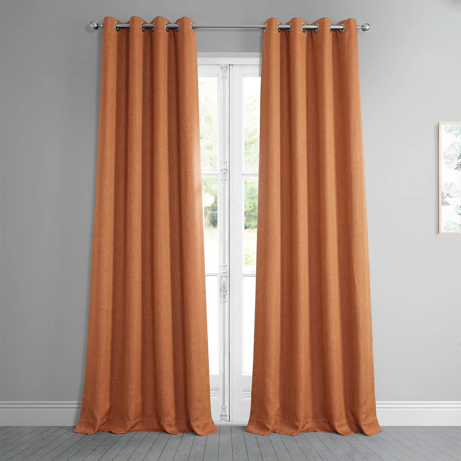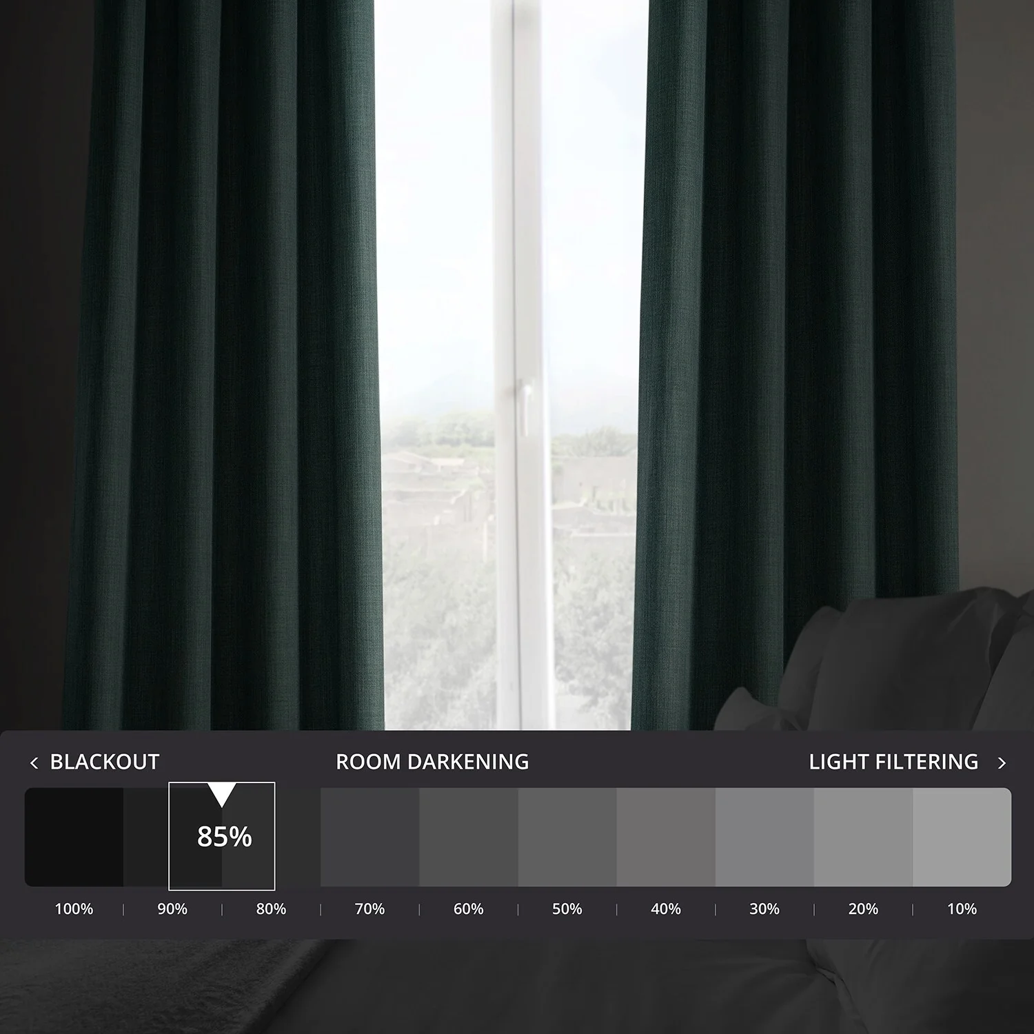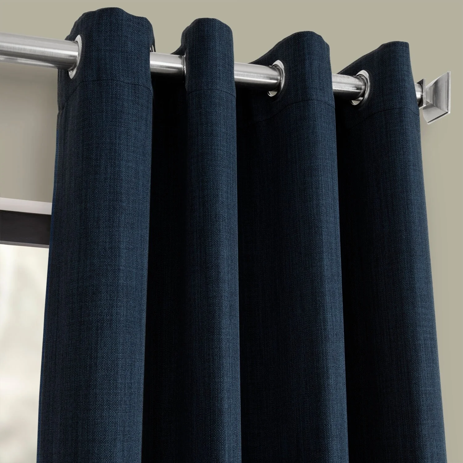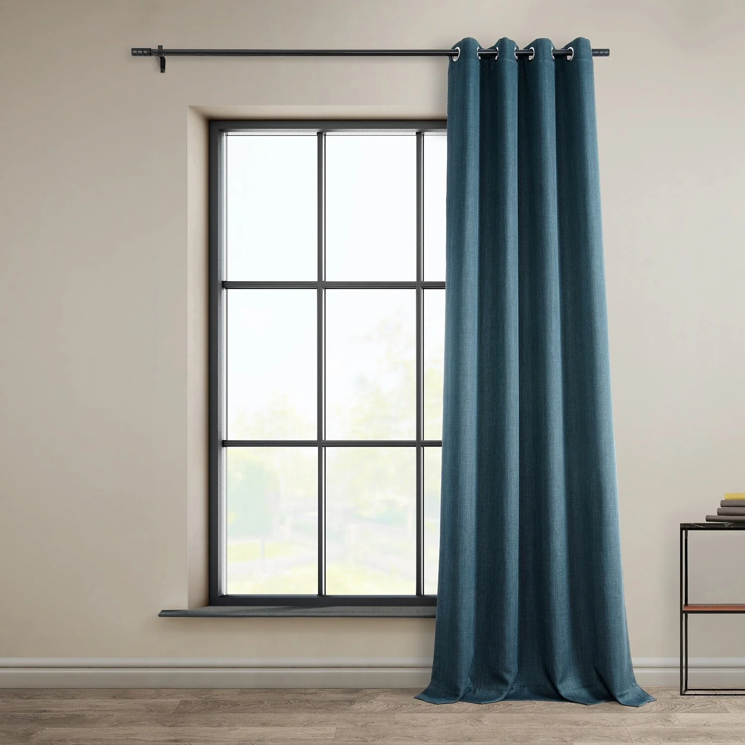 Our Faux Linen Grommet Room Darkening Curtain features rich woven textures in modern designer colors for every style. These heavy faux linen panels have significant room-darkening properties and a weighted hem to hang nicely and keep them in place. This style panel features large metal eyelets that slide onto a curtain rod. They are ideal if you want a clean modern look for a treatment you do not intend to pull back and forth every day. The inside diameter of the eyelets is 1 5/8'. We do not recommend that you use a rod with a diameter larger than 1 1/2' for ease of use. We try to provide the most accurate digital images possible. Color may appear slightly different from one screen to another based on differences in computer monitors, brightness, and other selected settings so there may be variations in color between the actual product and the way it appears online. This curtain offers Room Darkening capabilities with an impressive 85% opacity for Blackout effect.