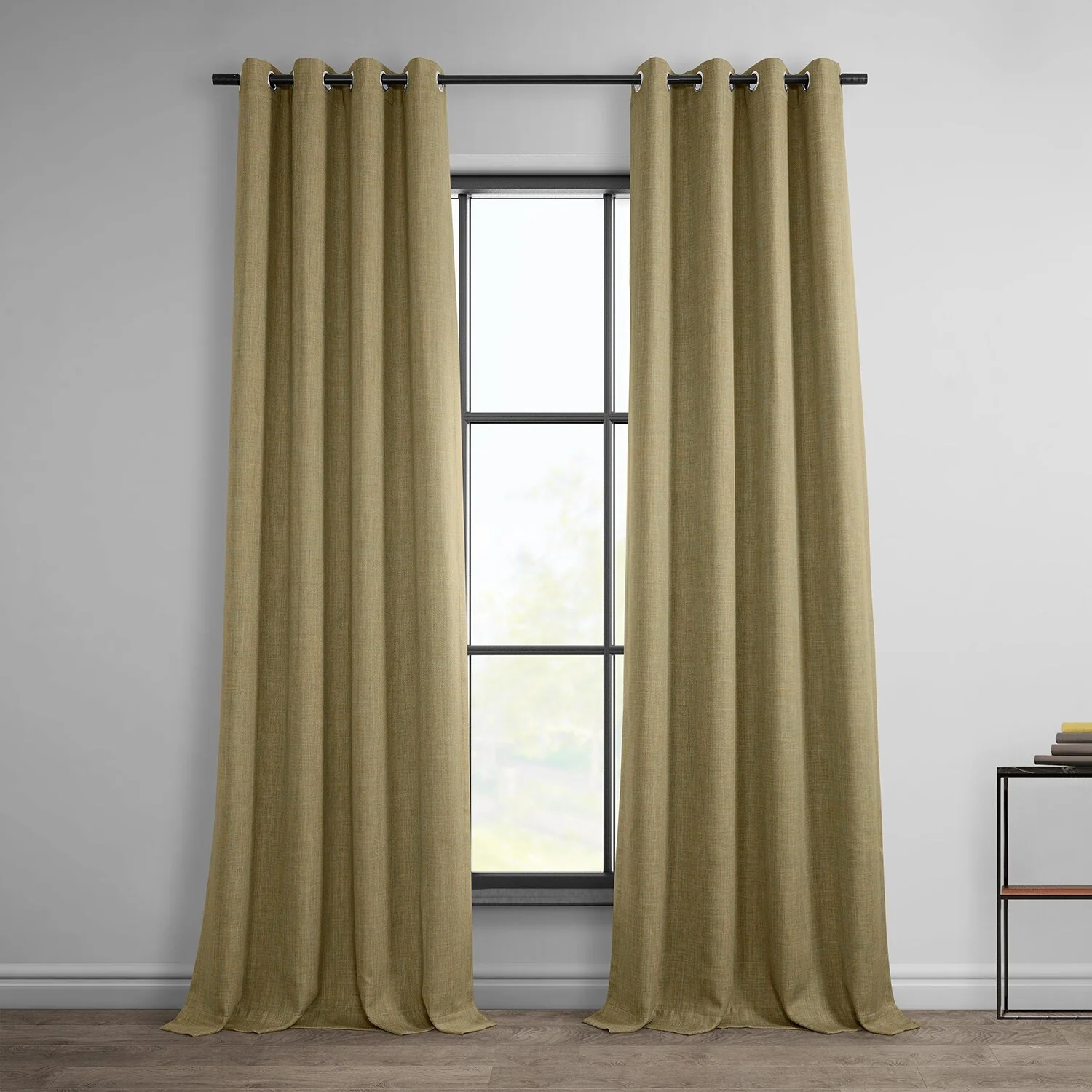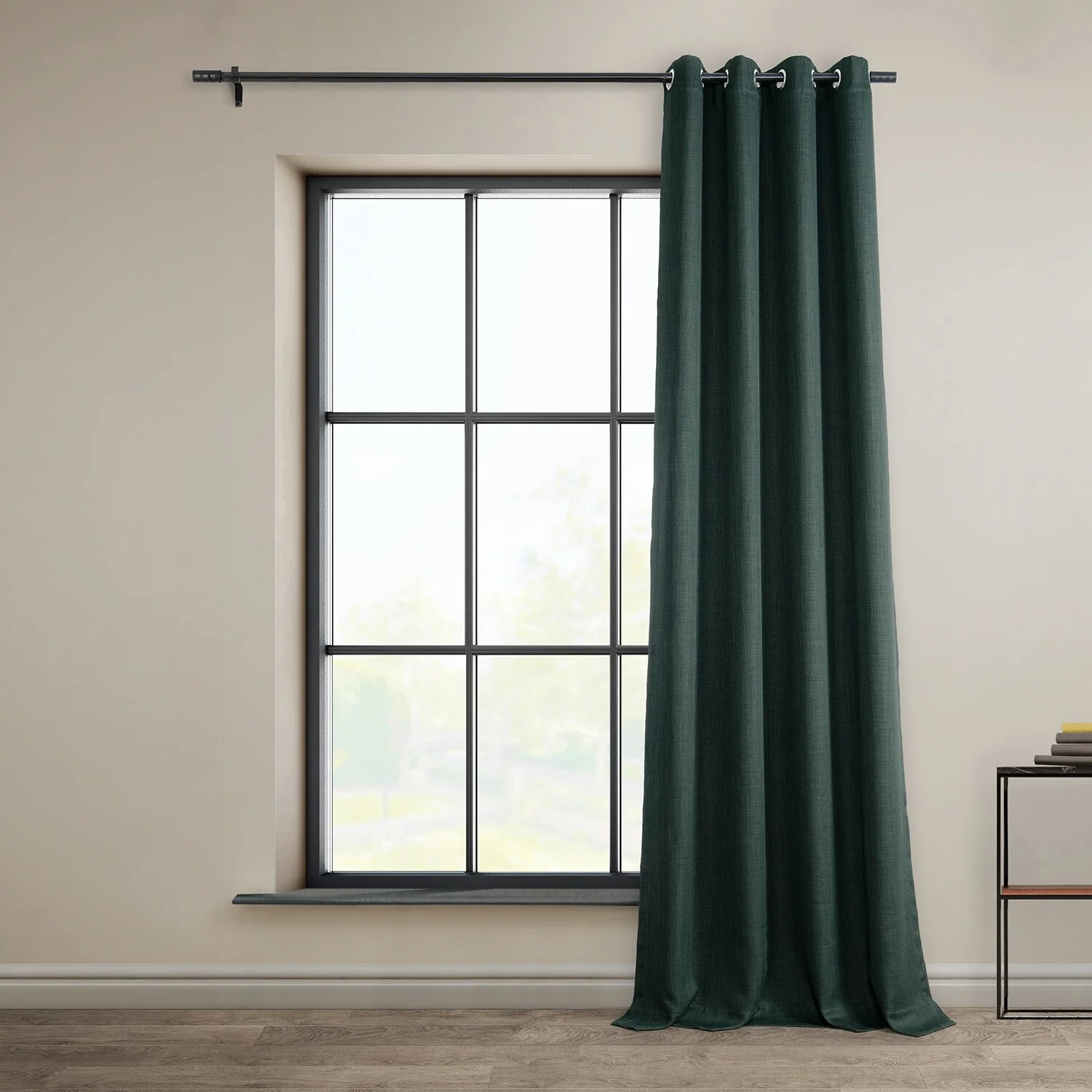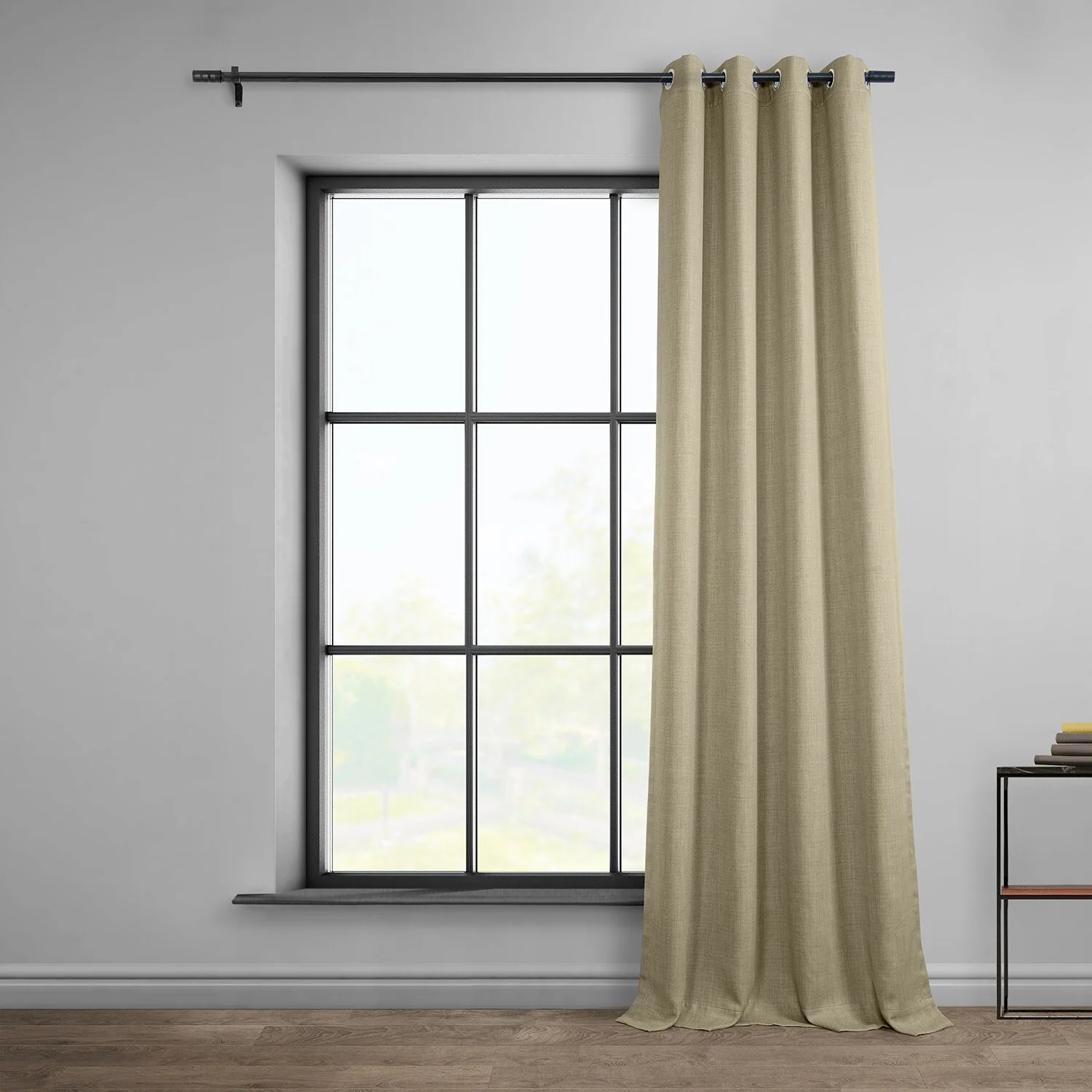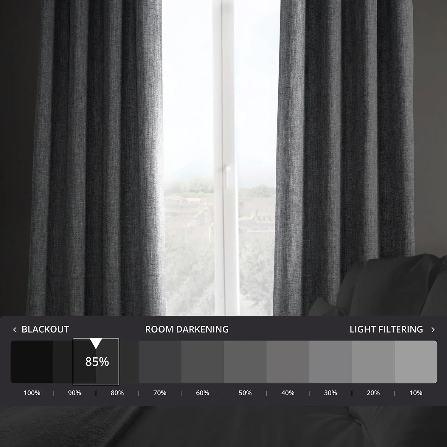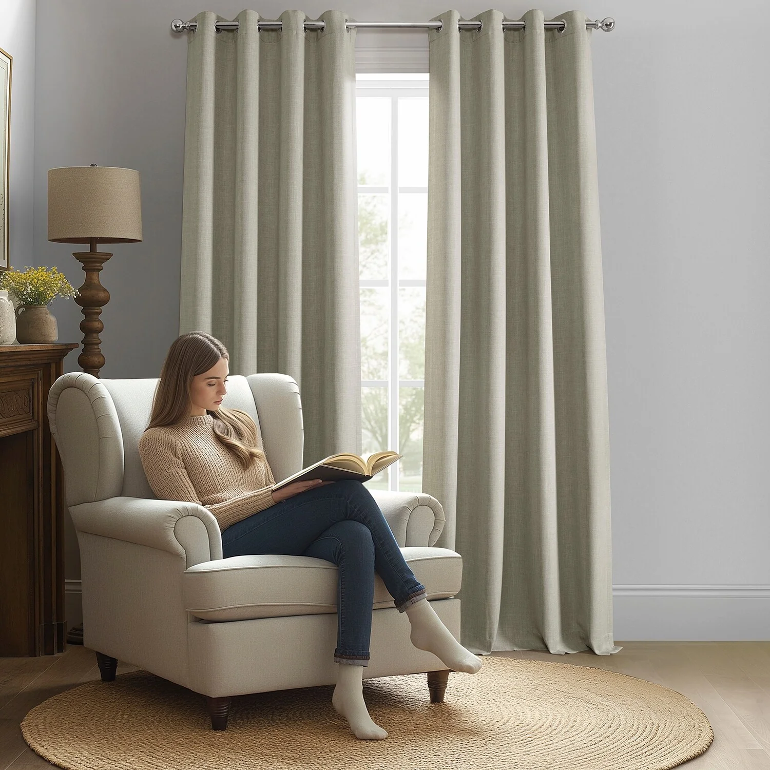 Our Faux Linen Grommet Room Darkening Curtain features rich woven textures in modern designer colors for every style. These heavy faux linen panels have significant room-darkening properties and a weighted hem to hang nicely and keep them in place. This style panel features large metal eyelets that slide onto a curtain rod. They are ideal if you want a clean modern look for a treatment you do not intend to pull back and forth every day. The inside diameter of the eyelets is 1 5/8'. We do not recommend that you use a rod with a diameter larger than 1 1/2' for ease of use. We try to provide the most accurate digital images possible. Color may appear slightly different from one screen to another based on differences in computer monitors, brightness, and other selected settings so there may be variations in color between the actual product and the way it appears online. This curtain offers Room Darkening capabilities with an impressive 85% opacity for Blackout effect.