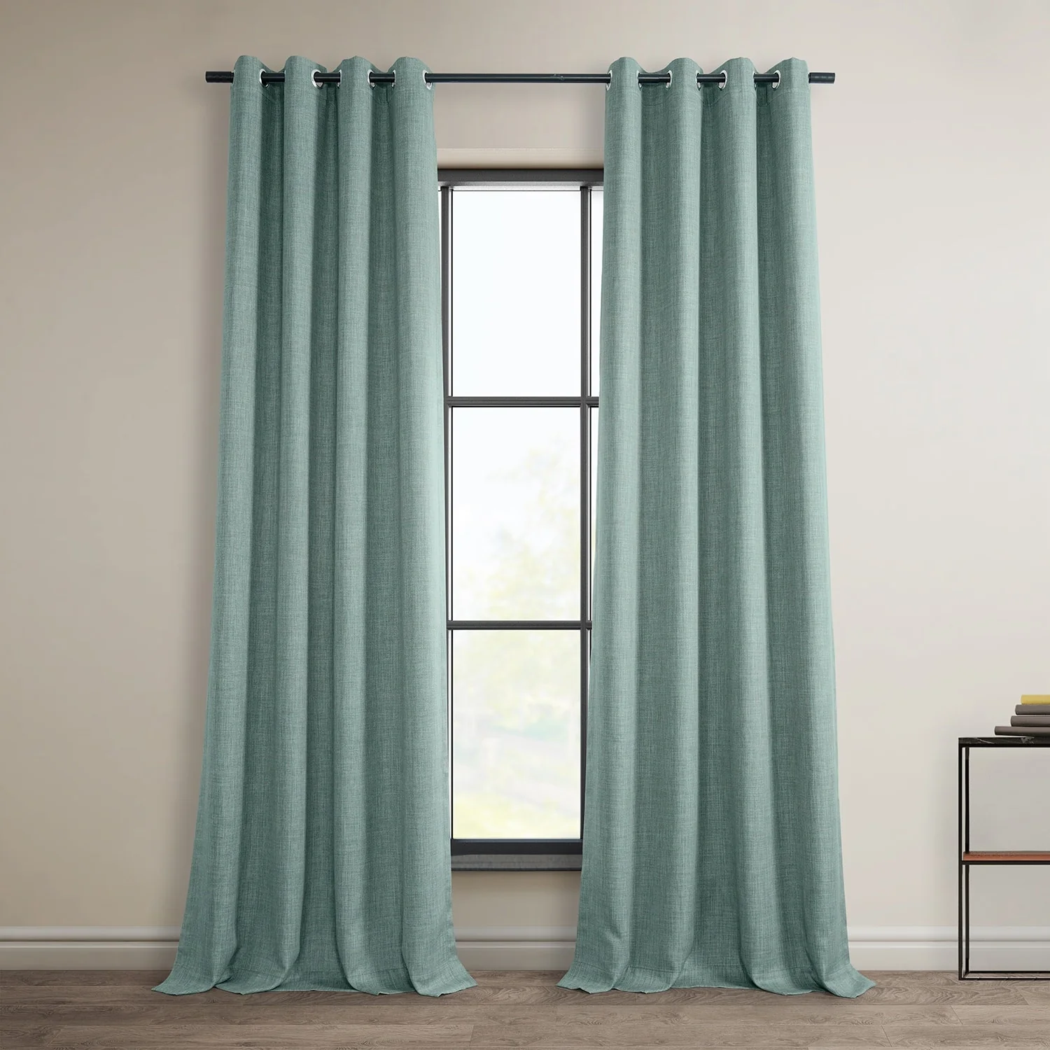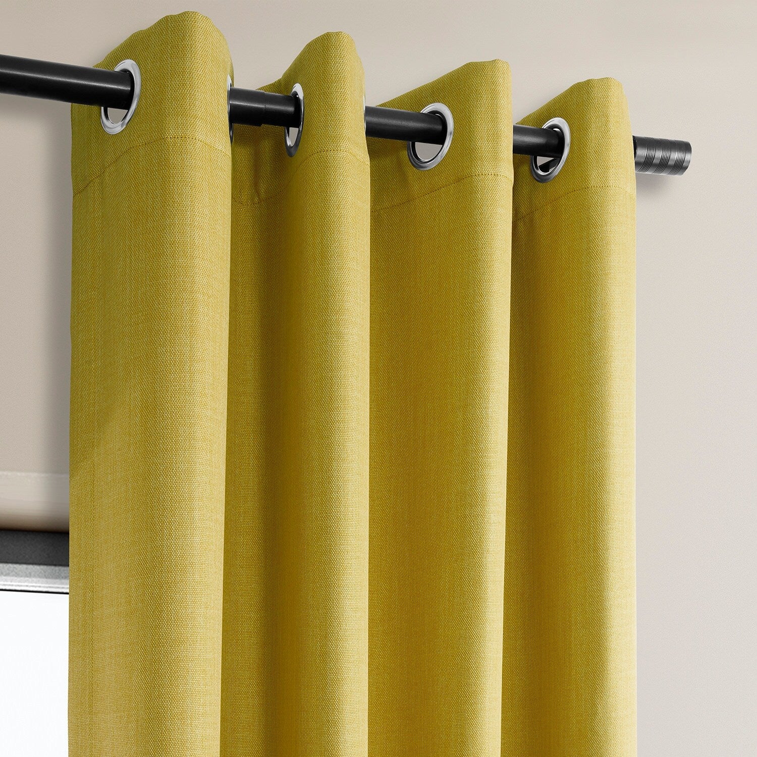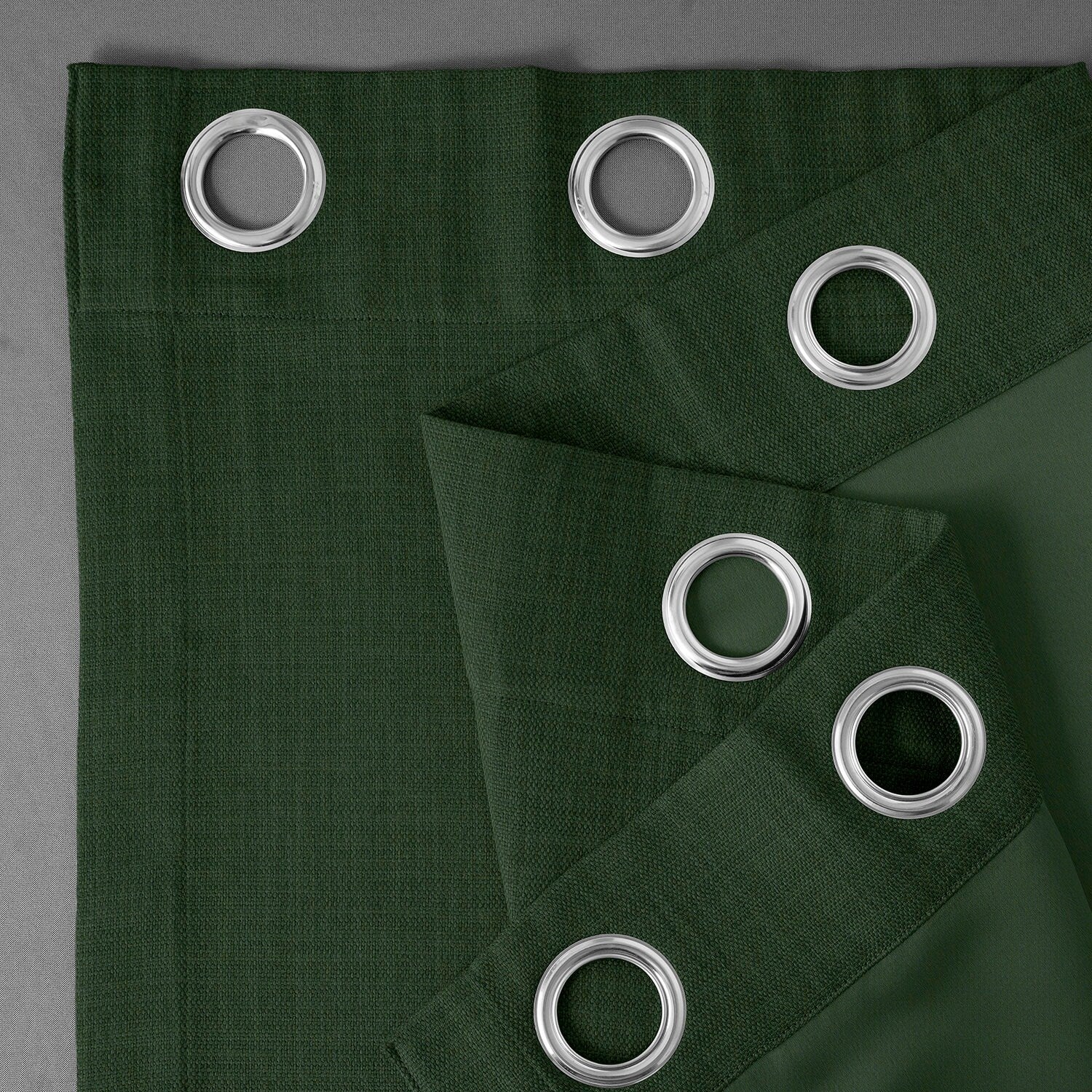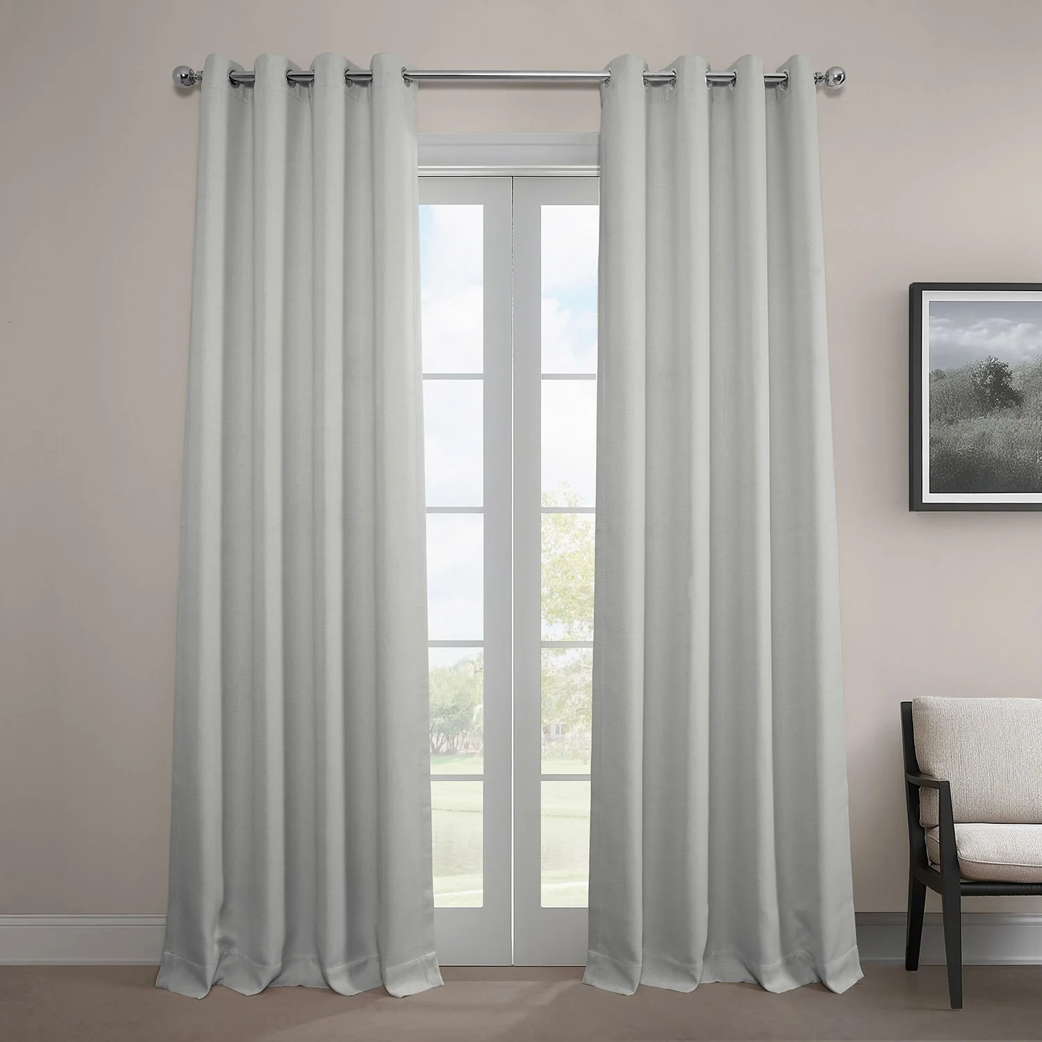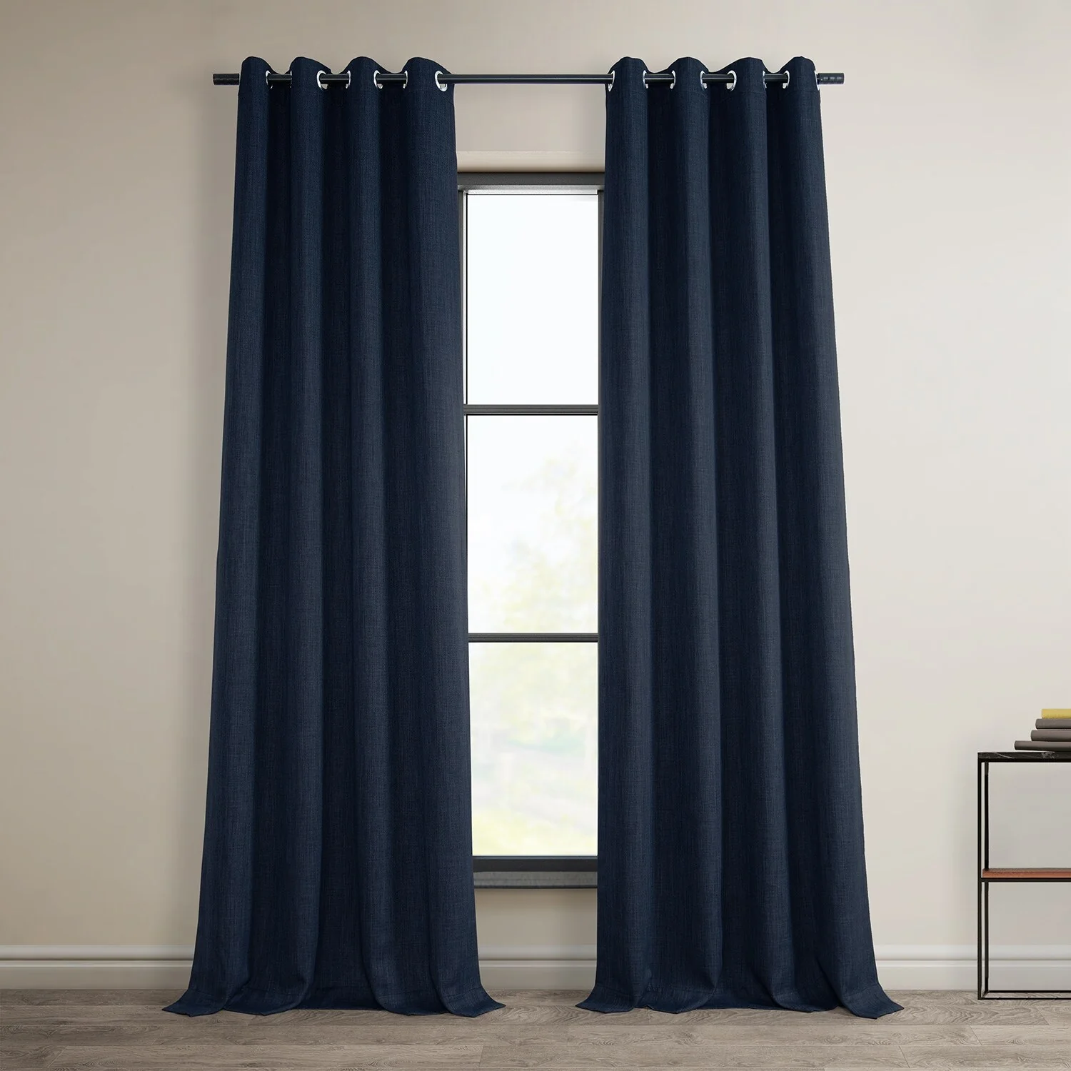 Our Faux Linen Grommet Room Darkening Curtain features rich woven textures in modern designer colors for every style. These heavy faux linen panels have significant room-darkening properties and a weighted hem to hang nicely and keep them in place. This style panel features large metal eyelets that slide onto a curtain rod. They are ideal if you want a clean modern look for a treatment you do not intend to pull back and forth every day. The inside diameter of the eyelets is 1 5/8'. We do not recommend that you use a rod with a diameter larger than 1 1/2' for ease of use. We try to provide the most accurate digital images possible. Color may appear slightly different from one screen to another based on differences in computer monitors, brightness, and other selected settings so there may be variations in color between the actual product and the way it appears online. This curtain offers Room Darkening capabilities with an impressive 85% opacity for Blackout effect.