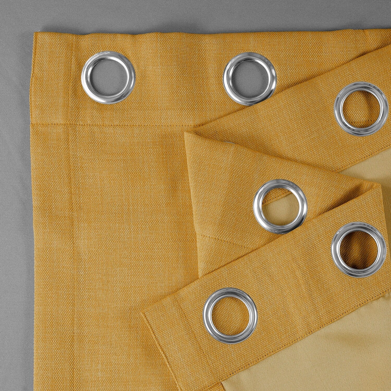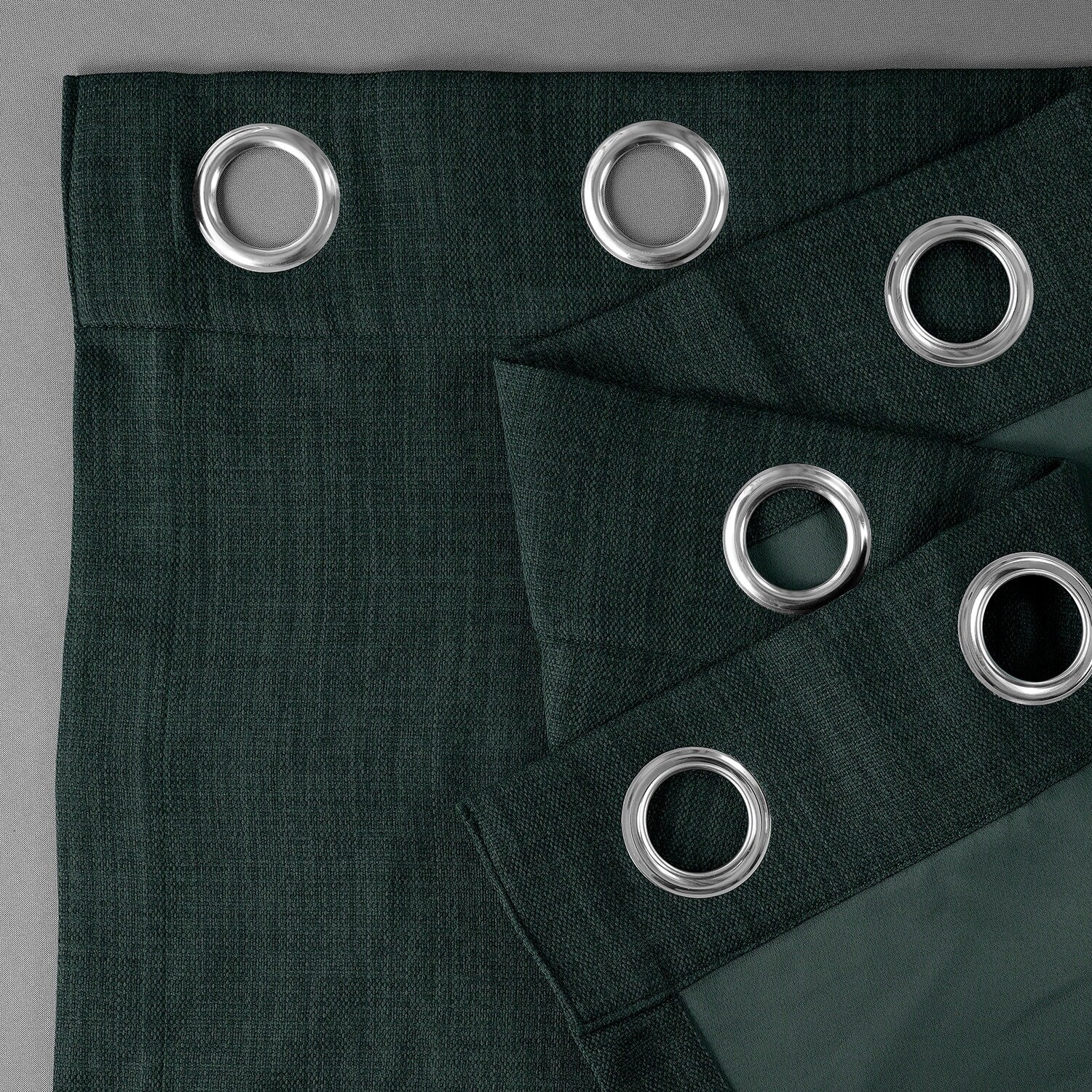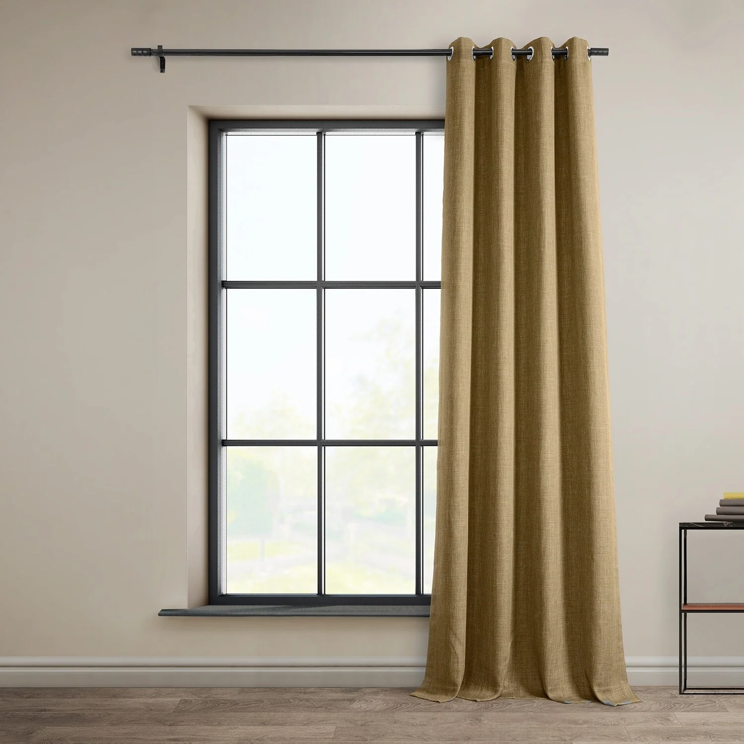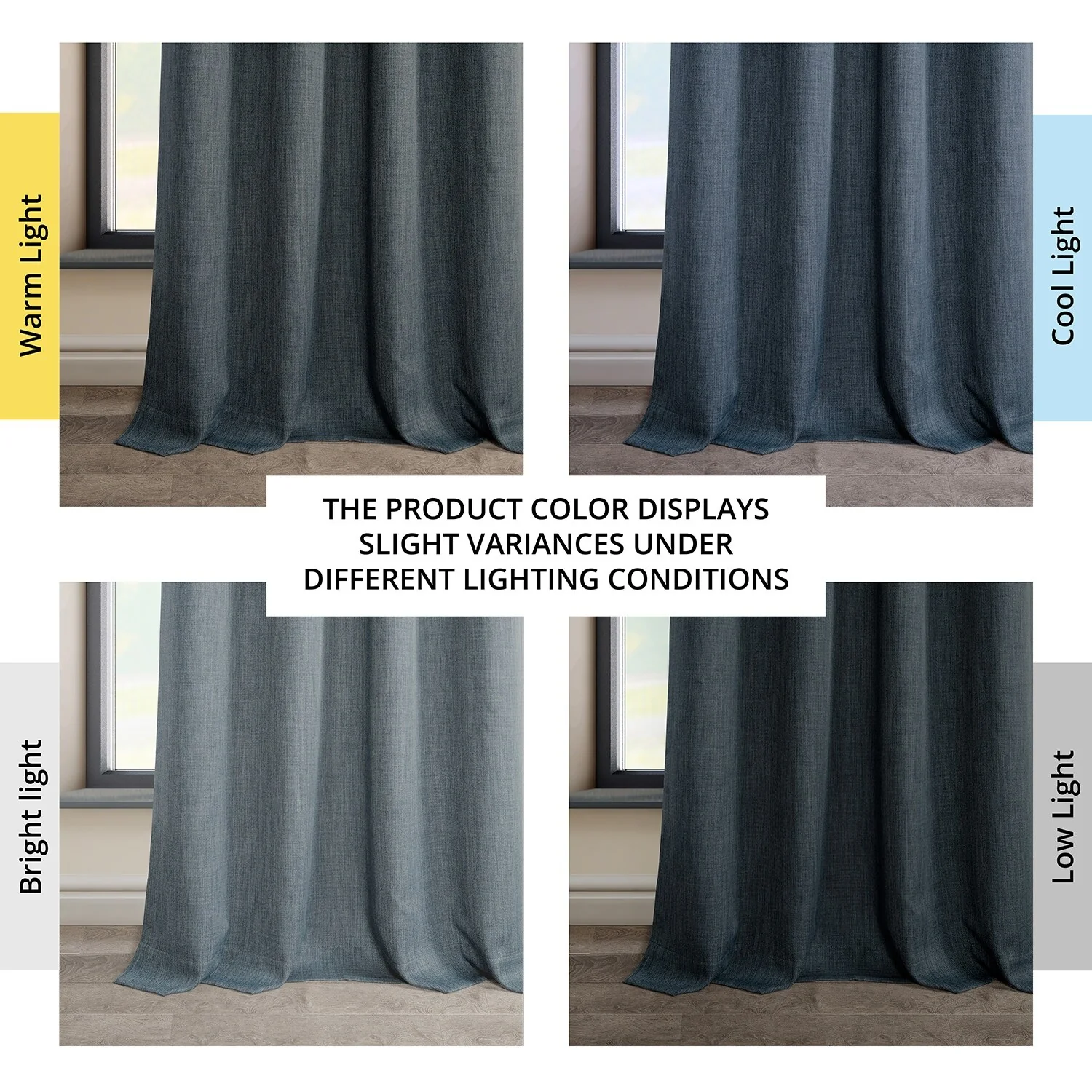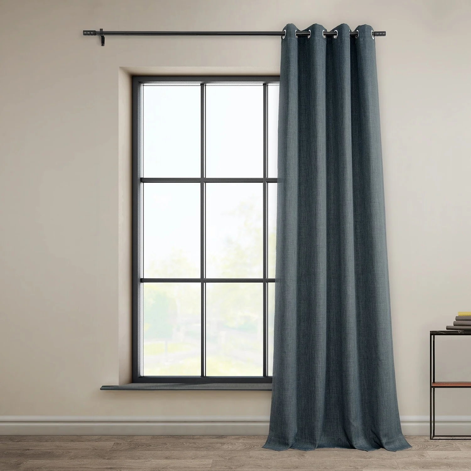 Our Faux Linen Grommet Room Darkening Curtain features rich woven textures in modern designer colors for every style. These heavy faux linen panels have significant room-darkening properties and a weighted hem to hang nicely and keep them in place. This style panel features large metal eyelets that slide onto a curtain rod. They are ideal if you want a clean modern look for a treatment you do not intend to pull back and forth every day. The inside diameter of the eyelets is 1 5/8'. We do not recommend that you use a rod with a diameter larger than 1 1/2' for ease of use. We try to provide the most accurate digital images possible. Color may appear slightly different from one screen to another based on differences in computer monitors, brightness, and other selected settings so there may be variations in color between the actual product and the way it appears online. This curtain offers Room Darkening capabilities with an impressive 85% opacity for Blackout effect.