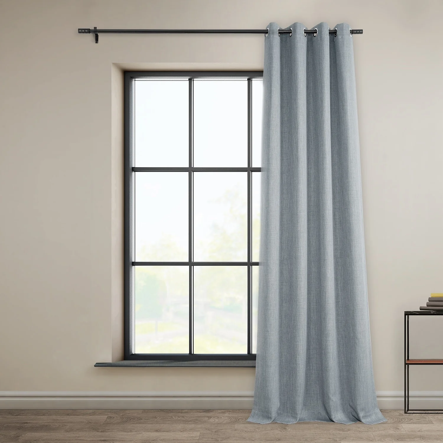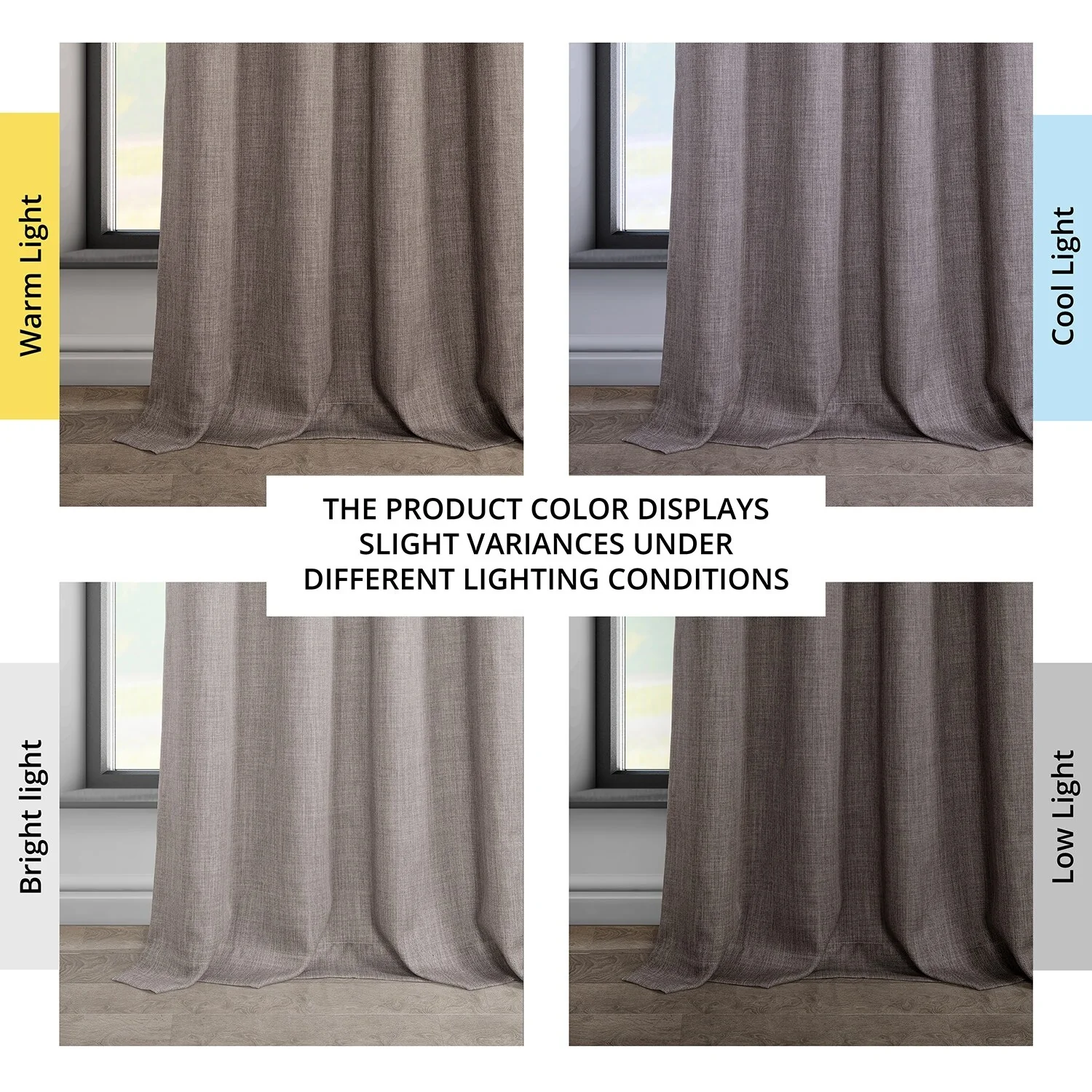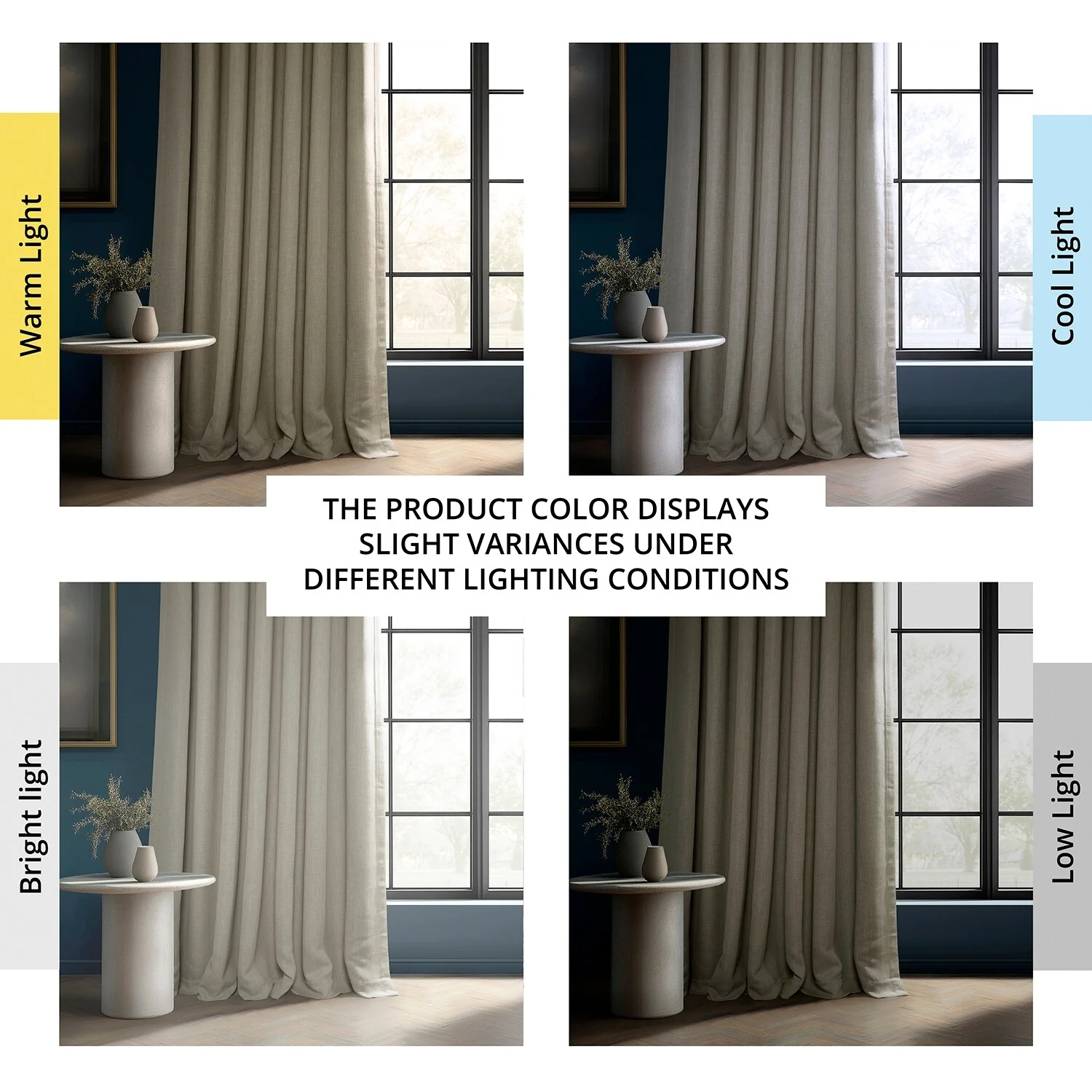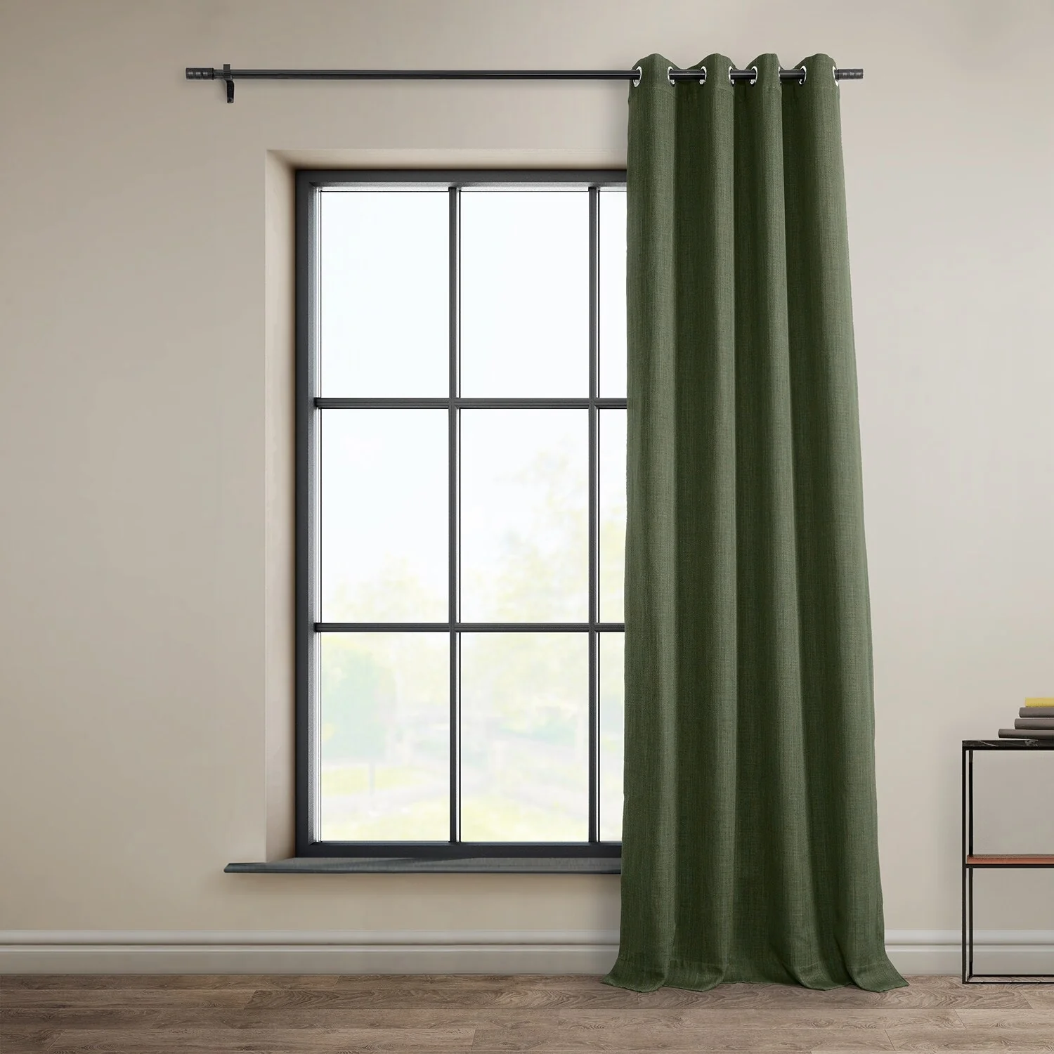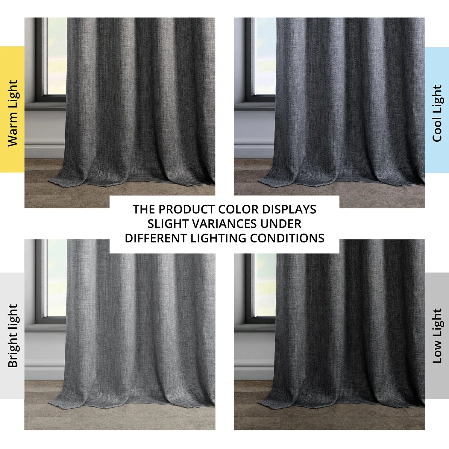 Our Faux Linen Grommet Room Darkening Curtain features rich woven textures in modern designer colors for every style. These heavy faux linen panels have significant room-darkening properties and a weighted hem to hang nicely and keep them in place. This style panel features large metal eyelets that slide onto a curtain rod. They are ideal if you want a clean modern look for a treatment you do not intend to pull back and forth every day. The inside diameter of the eyelets is 1 5/8'. We do not recommend that you use a rod with a diameter larger than 1 1/2' for ease of use. We try to provide the most accurate digital images possible. Color may appear slightly different from one screen to another based on differences in computer monitors, brightness, and other selected settings so there may be variations in color between the actual product and the way it appears online. This curtain offers Room Darkening capabilities with an impressive 85% opacity for Blackout effect.